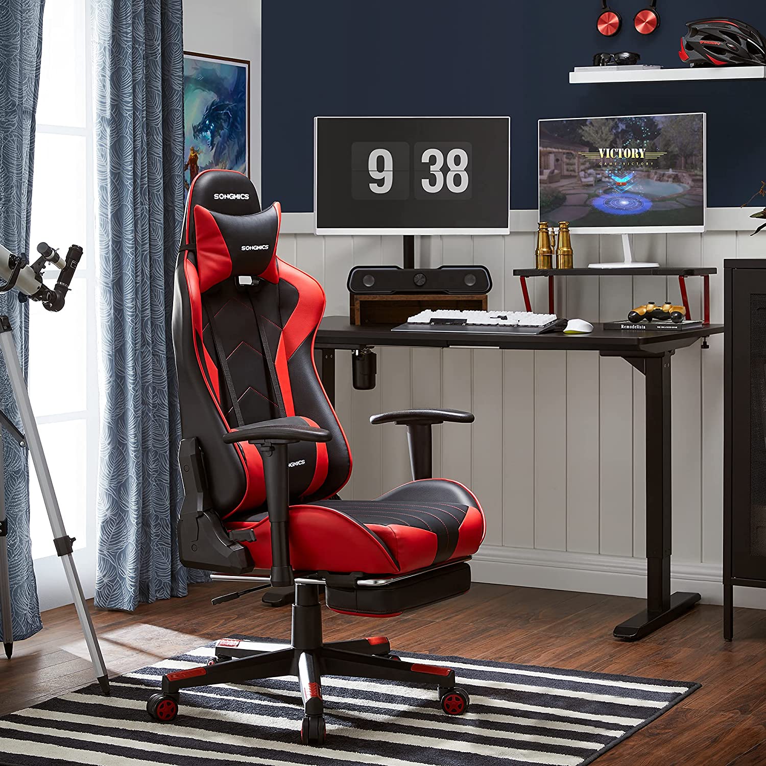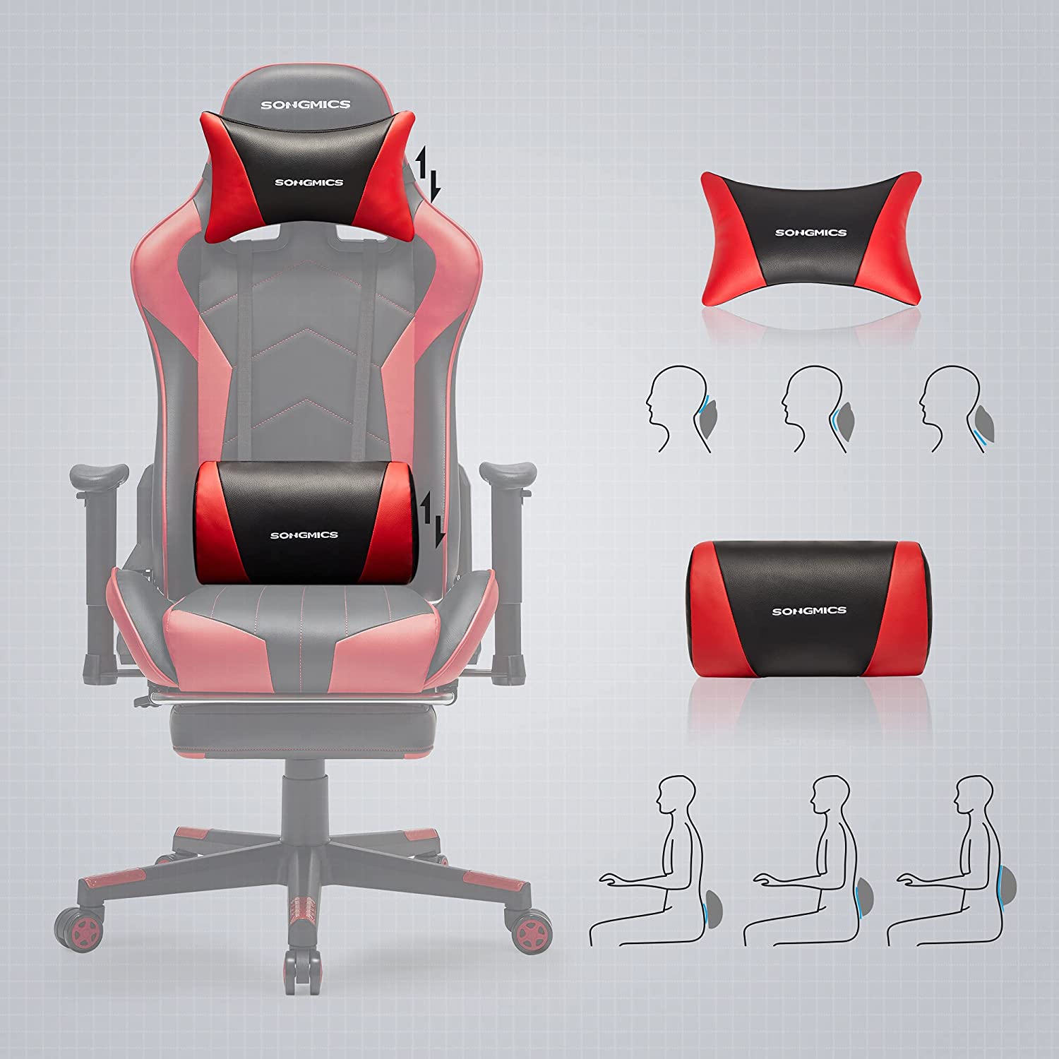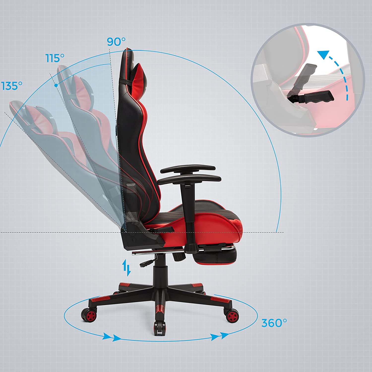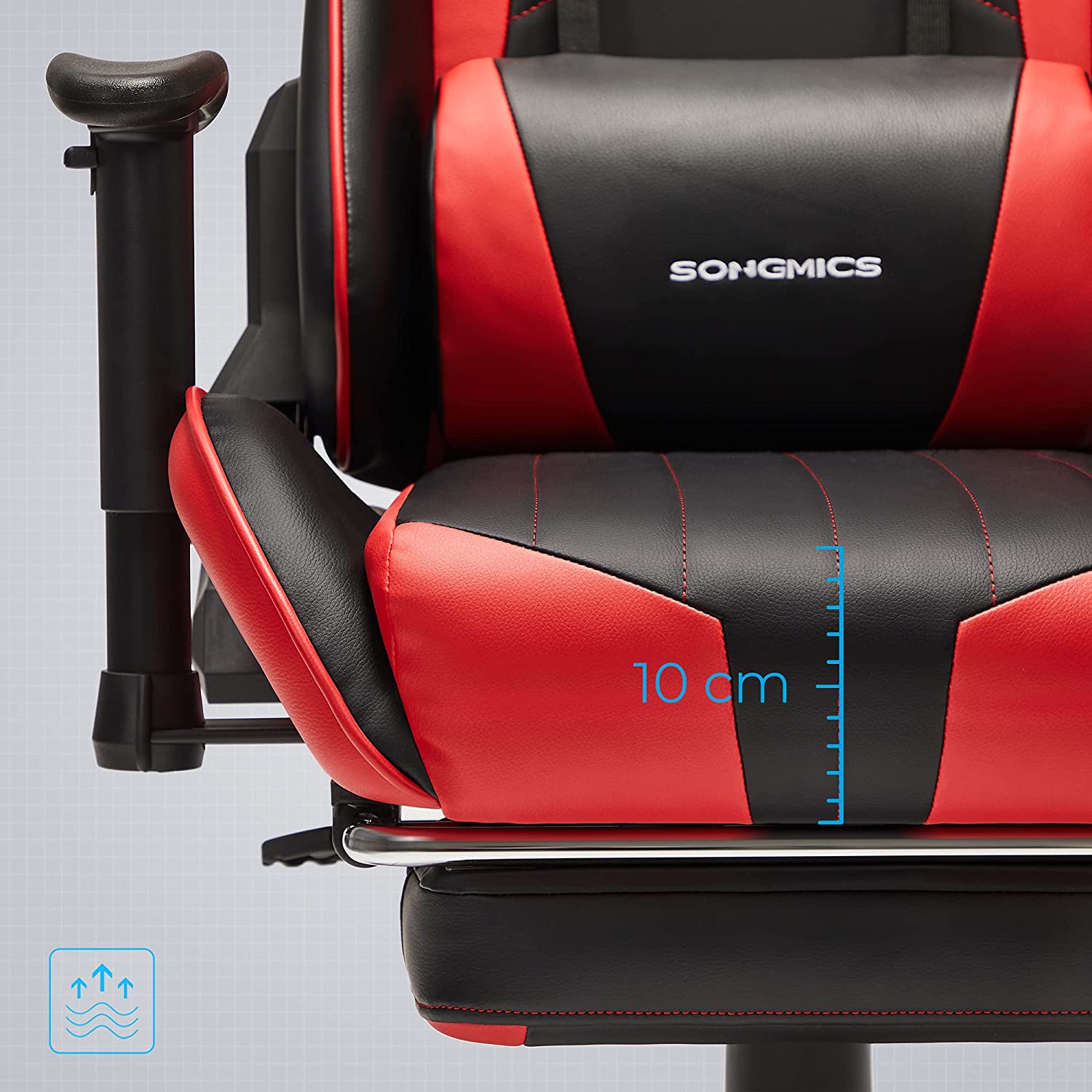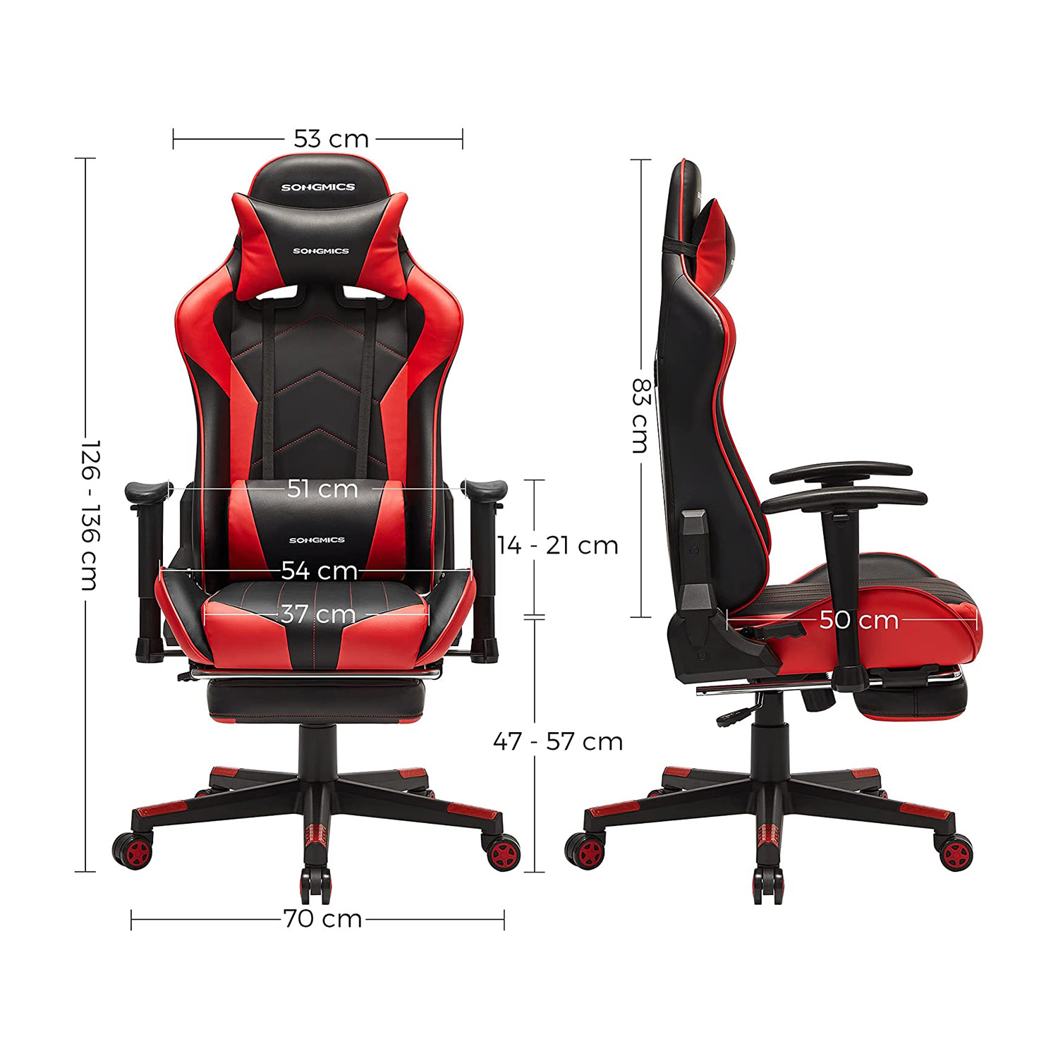 Forbedret komfort, ?get produktivitet: Rygsmerter for?rsaget af en ubehagelig stol forstyrrer ikke kun arbejdet, men p?virker ogs? alle andre omr?der. Denne ergonomiske stol fra SONGMICS giver dig h?j komfort, s? du kan koncentrere dig om det v?sentlige. Hvordan kan du ?ge din produktivitet med denne drejestol? Kombinationen af sort og r?d giver dig et nyt energiboost. S?det er h?jdejusterbart, og rygl?net kan justeres mellem 90? og 135?, s? du kan finde den ideelle siddestilling i forhold til h?jden p? din sk?rm.Det bl?de s?de, den ergonomiske rygl?n, de godt polstrede hovedpuder og l?ndest?tte ? alt dette giver mere komfort, n?r du arbejder og spiller. H?jdejusterbare arml?n, der kan drejes til venstre og h?jre, giver altid st?tte til dine underarme. Er din hjerne allerede r?get af at t?nke s? meget? Du kan tage en lur! Tr?k fodst?tten ud under s?det, og l?n stolen tilbage. Hvil dig lidt! Derefter kan du forts?tte med at arbejde. Produktdetaljer: Farve: Sort-r?d Materiale: St?lstel, skumpolstring, PU- og PVC-overflade, nylonhjul Stolens samlede st?rrelse: 68 x 66 x (126-136) cm (L x B x H) S?dets h?jde: 47-57 cm M?l p? s?defladen: 50 x 37 cm (L x B) M?l p? rygl?n: 53 x 83 cm (L x H) H?jde p? arml?n (fra s?defladen): 14-21 cm H?jde p? arml?n (fra gulvet): 61-78 cmV?gt: 20,3 kgMaks. statisk belastning: 150 kgLeveringsomfang:1 x kontorstol1 x tilbeh?rspakke1 x vejledningSONGMICS Bem?rkninger:Brug en underlag, hvis du vil bruge stolen p? et tr?gulv.