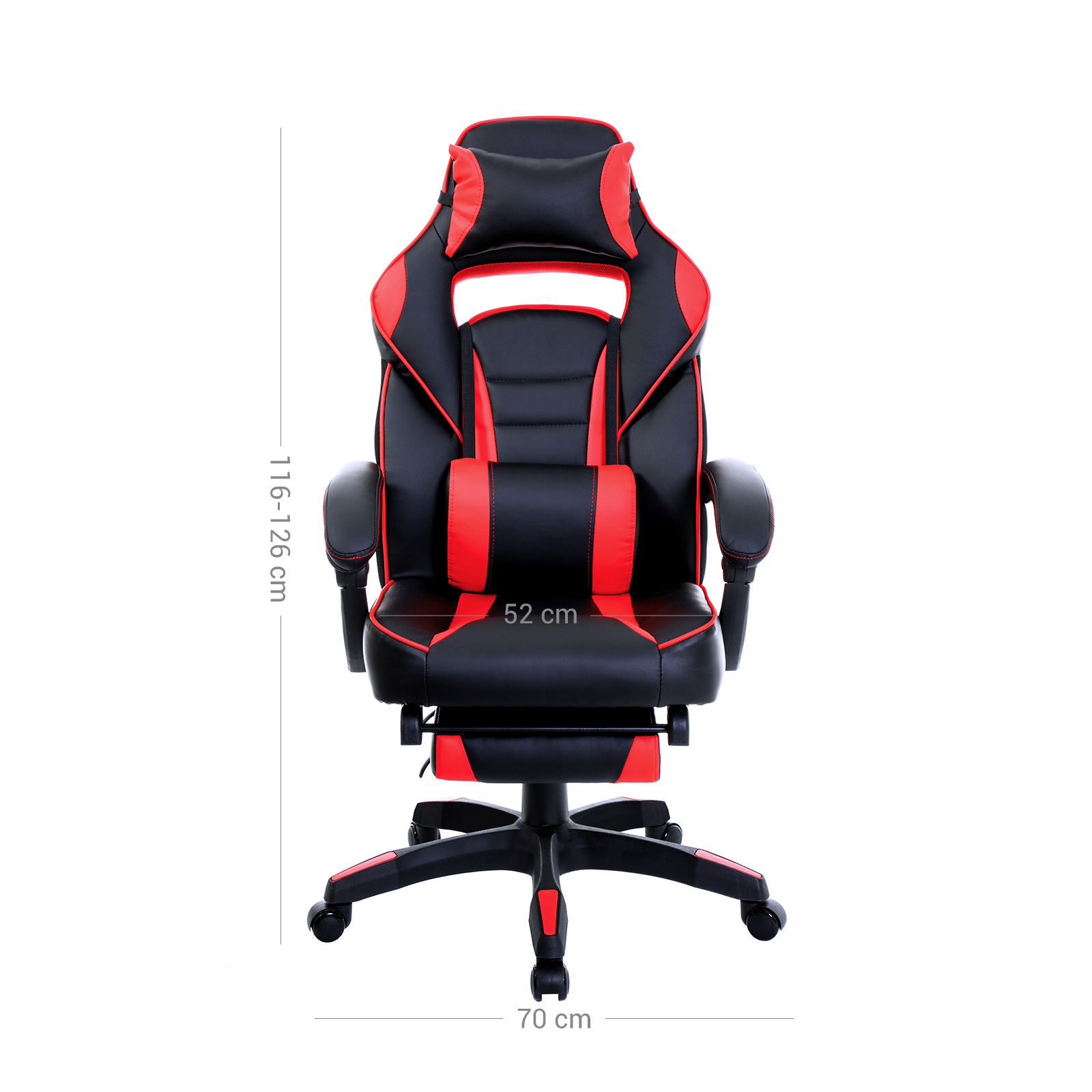 Cool look: Det hvid-sorte farvem?nster og det udsk?rne design p? toppen af rygl?net minder om sports?derne i en racerbil. S?ledes starter hvert videospil p? professionel vis, og uanset hvordan det ender, er du allerede en vinder med denne stol! H?jeste komfort: Tr?k fodst?tten ud, l?g f?dderne op, l?n stolen 90-135? tilbage og hvil dig i ren lykke. Det komfortable s?dehynde og fodst?tten g?r denne justerbare kontorstol til et sted, hvor du kan slappe af i al evighed. Alt er klar: Computeren er t?ndt, tastatur og mus er klar ? g? i gang med arbejdet, se en film eller start dit videospil. Denne gamingstol fra SONGMICS er det perfekte valg til ethvert form?l. Produktdetaljer: Farve: Sort-hvid Materiale: PU-plast, h?jdensitets skum, st?l, nylon St?rrelse: 67 x 66 x 116-126 cm (L x B x H) Afstand fra s?de til gulv: 47-57 cm S?de st?rrelse: 50 x 52 cm (L x B) H?jde p? rygl?n: 71 cm Diameter p? hjul: 50 mm V?gt: 20,6 kg Maks. statisk belastning: 150 kg Leveringsomfang: 1 x gamingstol 1 x tilbeh?rspakke 1 x vejledning (DE, EN, FR, ES, IT) SONGMICS Bem?rkninger:Uds?t ikke produktet for direkte sollys i l?ngere tid. Hold produktet v?k fra spidse og skarpe genstande for at undg? beskadigelse af overfladen.