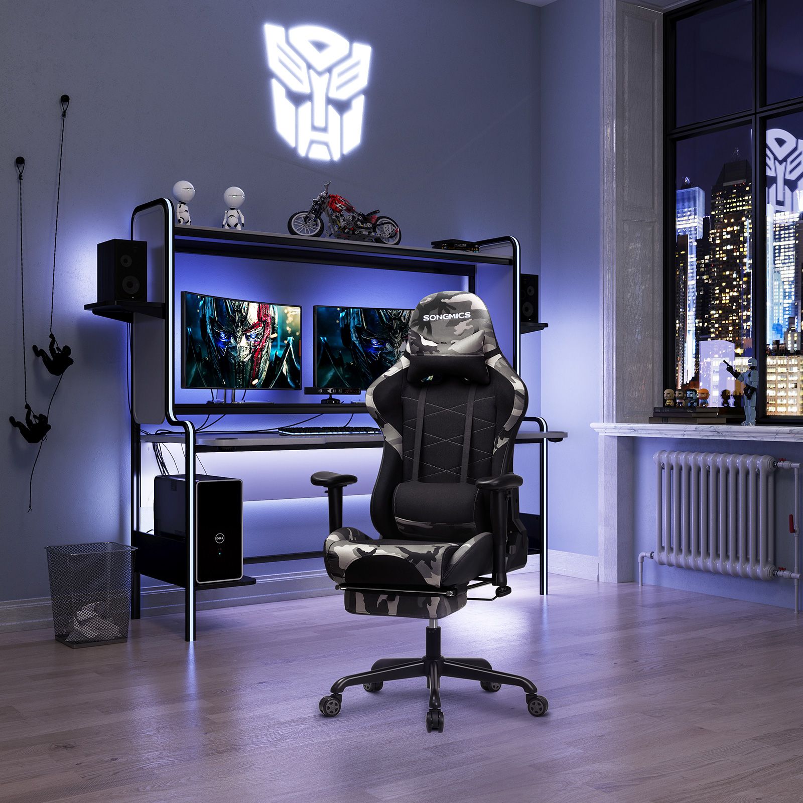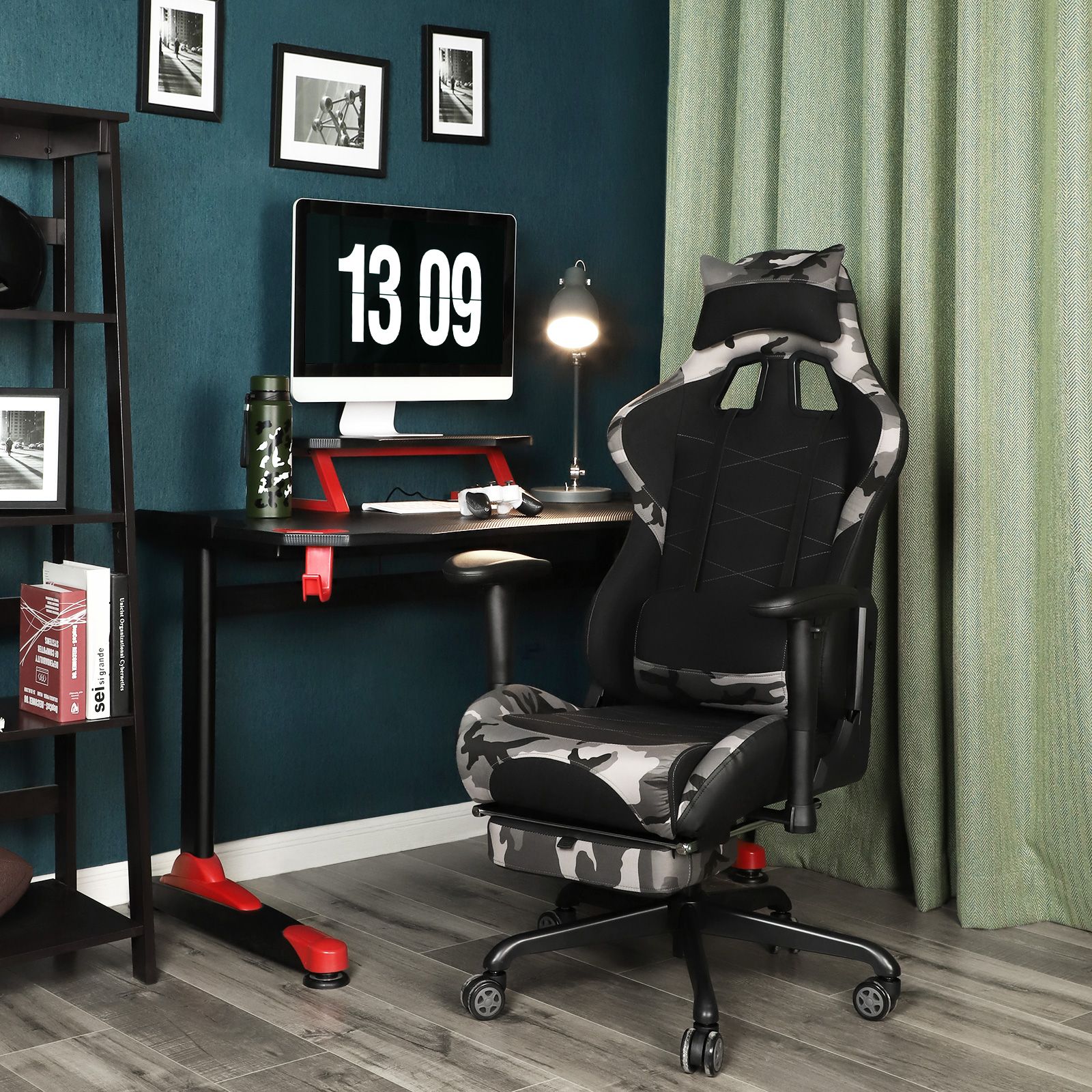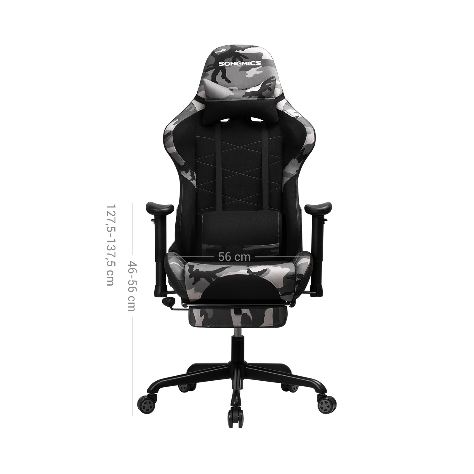 Rollespil, first-person shooters, tower defense eller online poker ? hvilket computerspilgenre foretr?kker du? Uanset om du som magiker forhekser dine modstandere eller ivrigt venter p? en royal flush, hj?lper vores gamingstol dig p? vej mod sejren. H?j kvalitet, komfortabel, multifunktionel: Takket v?re det ergonomiske design og s?det med formstabil skum kan du nyde den h?jeste komfort, selv n?r din medspiller igen er AFK i l?ngere tid. Hvis du vil tage en lur eller streame en video, kan du nemt klappe den praktiske fodst?tte ud. Derudover har computerstolen mange funktioner. Arml?nene kan bev?ges fleksibelt op, ned, til venstre og til h?jre. Desuden kan stolen vippes op til 135 grader bagud. Der er ogs? en vippemekanisme. Med denne gamer-stol f?r du desuden et slidst?rkt produkt med st?lstel. Vores fodkryds har best?et SGS’s st?dtest og statiske tryktest (certifikat nr. AJHL1811002706FT; indehaver: producent af fodkrydset). Testet kvalitet!Produktdetaljer:Farve: Sort-camouflagefarvetMateriale: H?jdensitetsrefleksskum, stel p? s?de og fodkryds af st?l, betr?k af milj?venligt PU og mesh-stof, hjul af nylonSt?rrelse: 69 x 70,5 x 128-138 cm (L x B x H)V?gt: 22 kgMaksimal belastning: 150 kgLeveringsomfang:1 x gamingstol1 x unbrakon?gle1 x tilbeh?rspose1 x vejledning (DE, EN, ES, FR, IT)SONGMICS Bem?rkninger:V?r opm?rksom p? pilen p? undersiden af s?det, og saml stolen i overensstemmelse hermed. S?t dig ikke p? stolens forkant. S? undg?r du at komme til skade, hvis stolen v?lter.