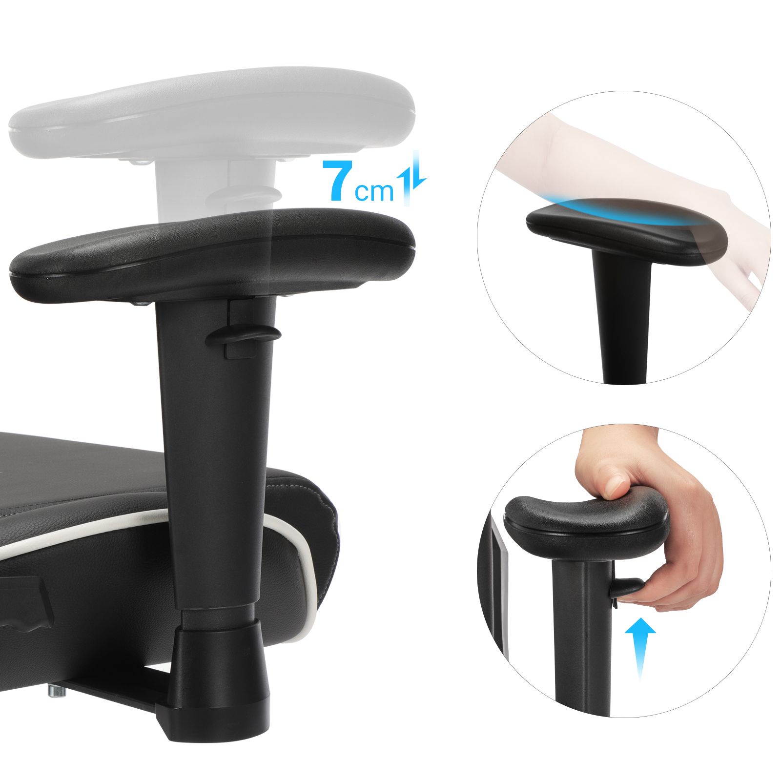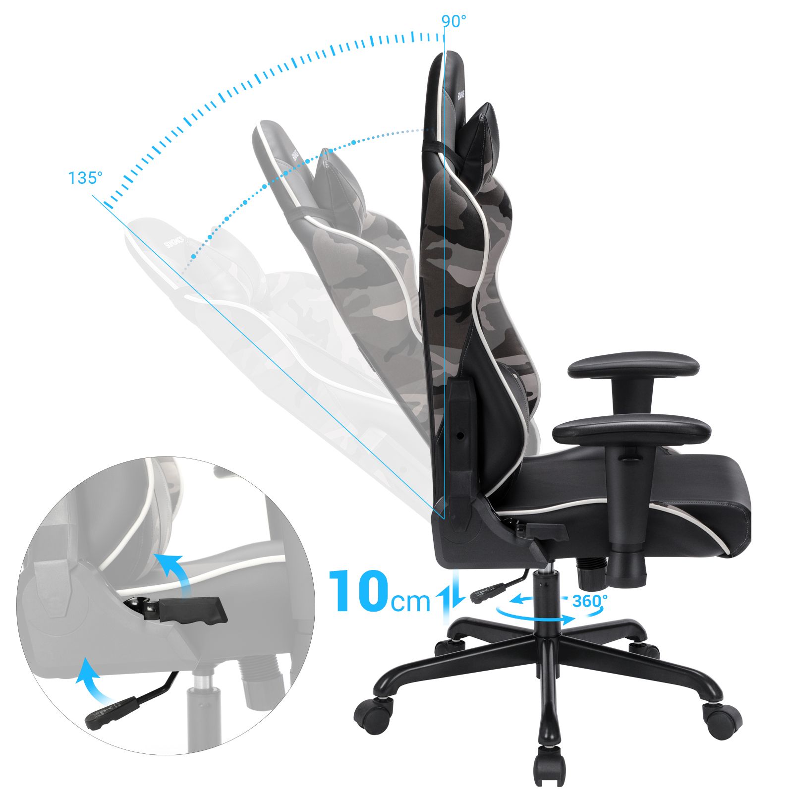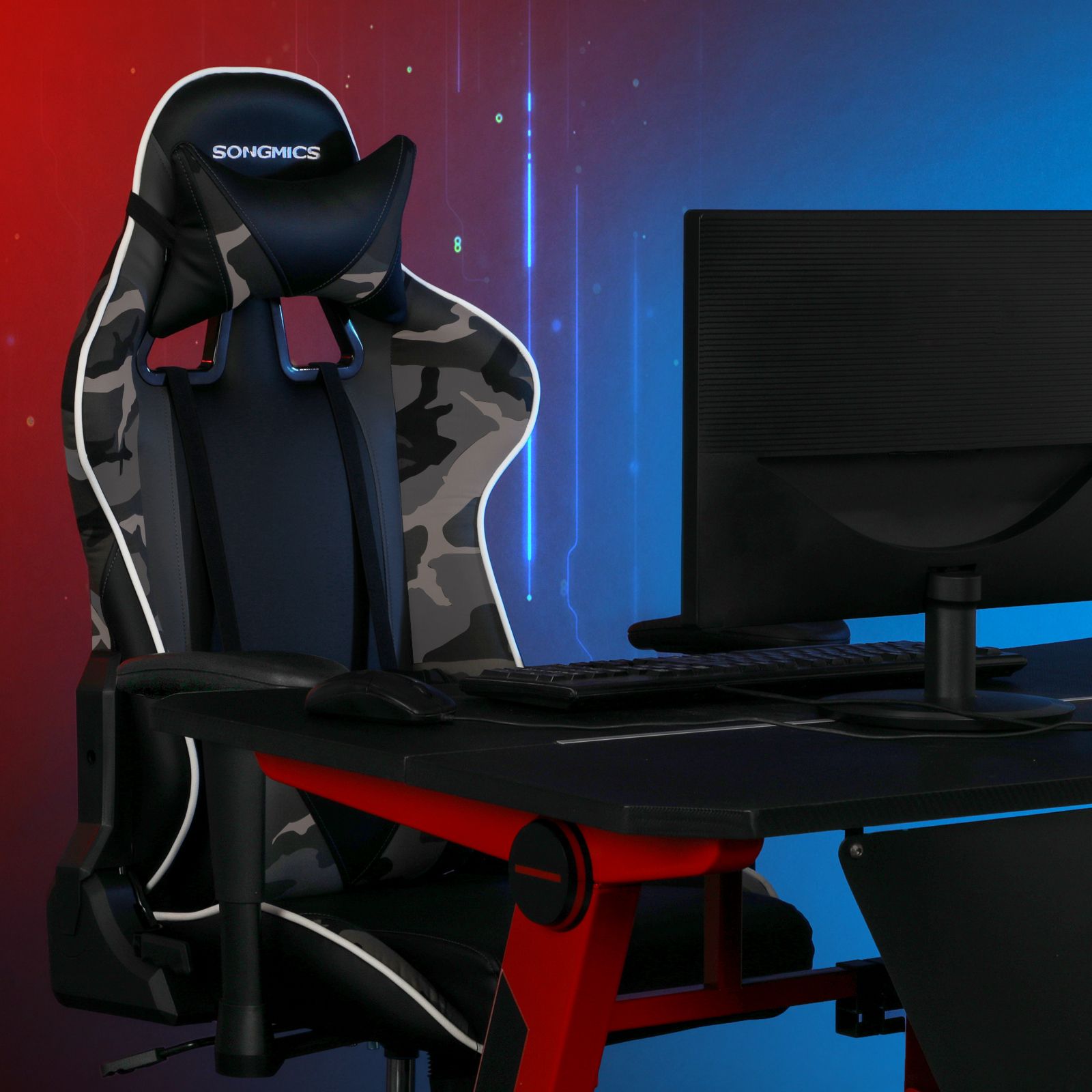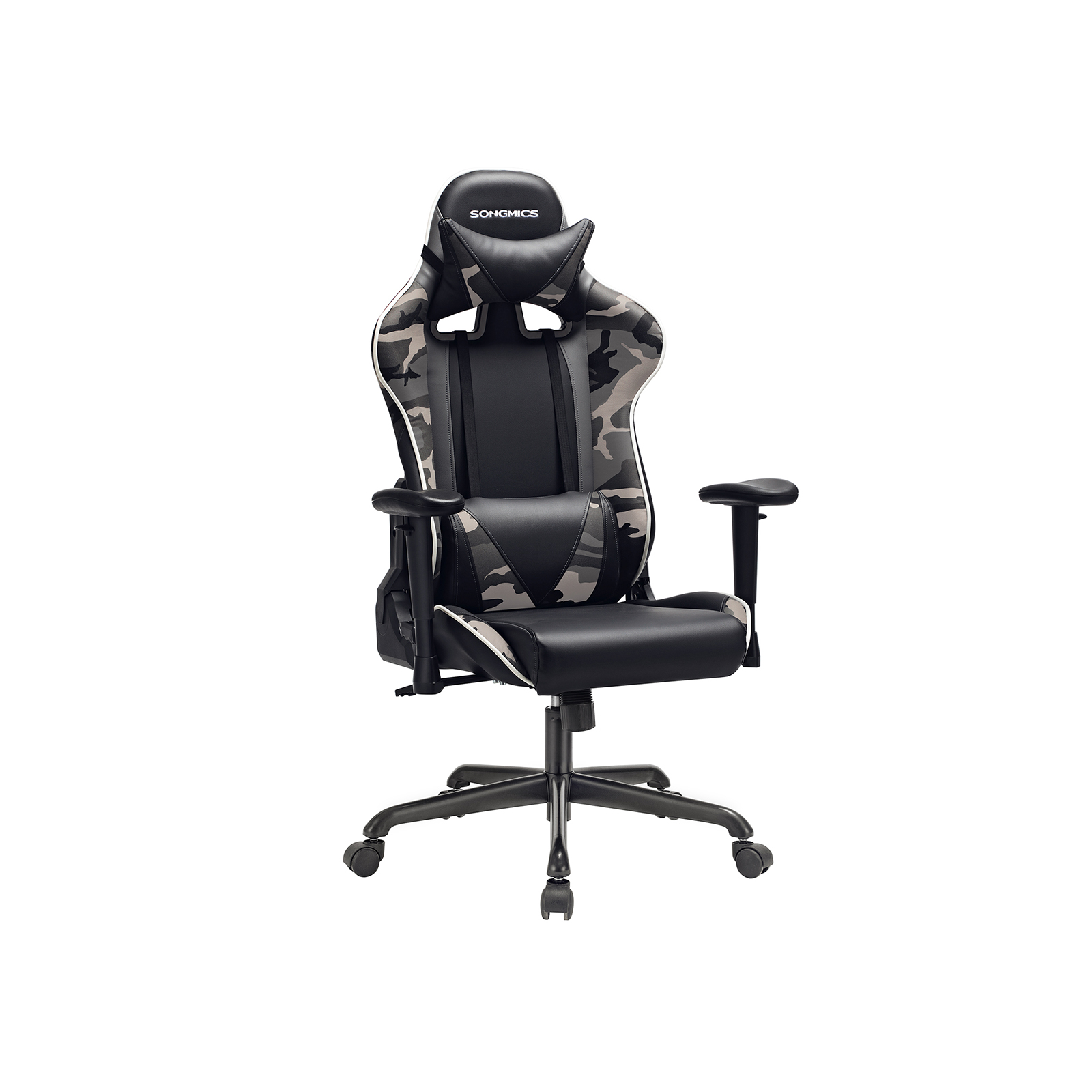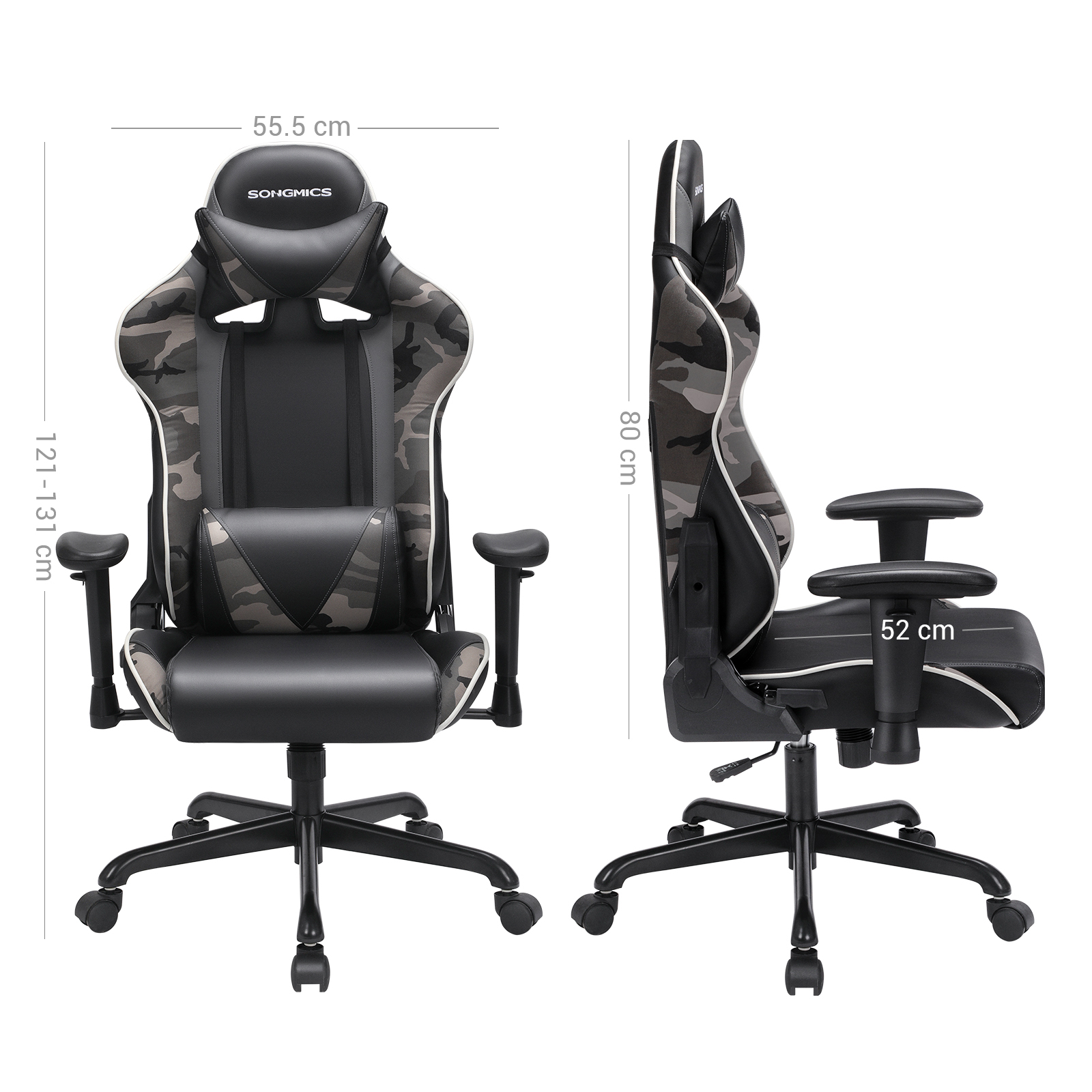 Som om du var en del af dit videospil: Denne racingstol er skabt til ?gte gamere! Hvis du elsker fart, stil og computerspil, vil du opleve vidunderlige ?jeblikke p? denne stol. Dens ergonomiske design sikrer h?j siddekomfort, selv efter lange gaming-sessioner. Vippefunktionen g?r det muligt at vippe let frem og tilbage, hvilket reducerer tr?thed. S?deh?jden og rygl?nets h?ldningsvinkel kan ogs? justeres fleksibelt, s? du kan tilpasse denne stol perfekt til dine behov. Auto-return-cylinderen har desuden best?et T?V Rheinland’s sikkerhedstest i henhold til DIN 4550, klasse 4 (certifikat udstedt til: leverand?r).N?r du sidder p? denne kontorstol, vil du f?le dig som om du sidder bag rattet i en kraftfuld sportsvogn ? s? meget power! Produktdetaljer: Farve: sort-camouflagefarvet Materiale: St?l, PVC, skumplast Dimensioner: Total h?jde: 121-131 cm Total dybde: 69 cm Total bredde: 70,5 cmDiameter p? hjul: 50 mmDiameter p? hjulaksel: 11 mmDiameter p? stjernefod: 70 cmH?jde p? s?de: 46-56 cmBredde p? s?de: 41 cmH?jde p? arml?n: 17 cm-24 cmBredde p? rygl?n: 55,5 cmH?jde p? rygl?n: 80 cmV?gt: 19,5 kg Maks. statisk belastning: 120 kg SONGMICS Bem?rkninger: Langvarig siddende stilling kan have en negativ indvirkning p? dit helbred. Tag derfor regelm?ssige pauser og str?k dig hver halve time. S?t dig ikke udelukkende p? stolens forkant, da den ellers kan v?lte fremad.