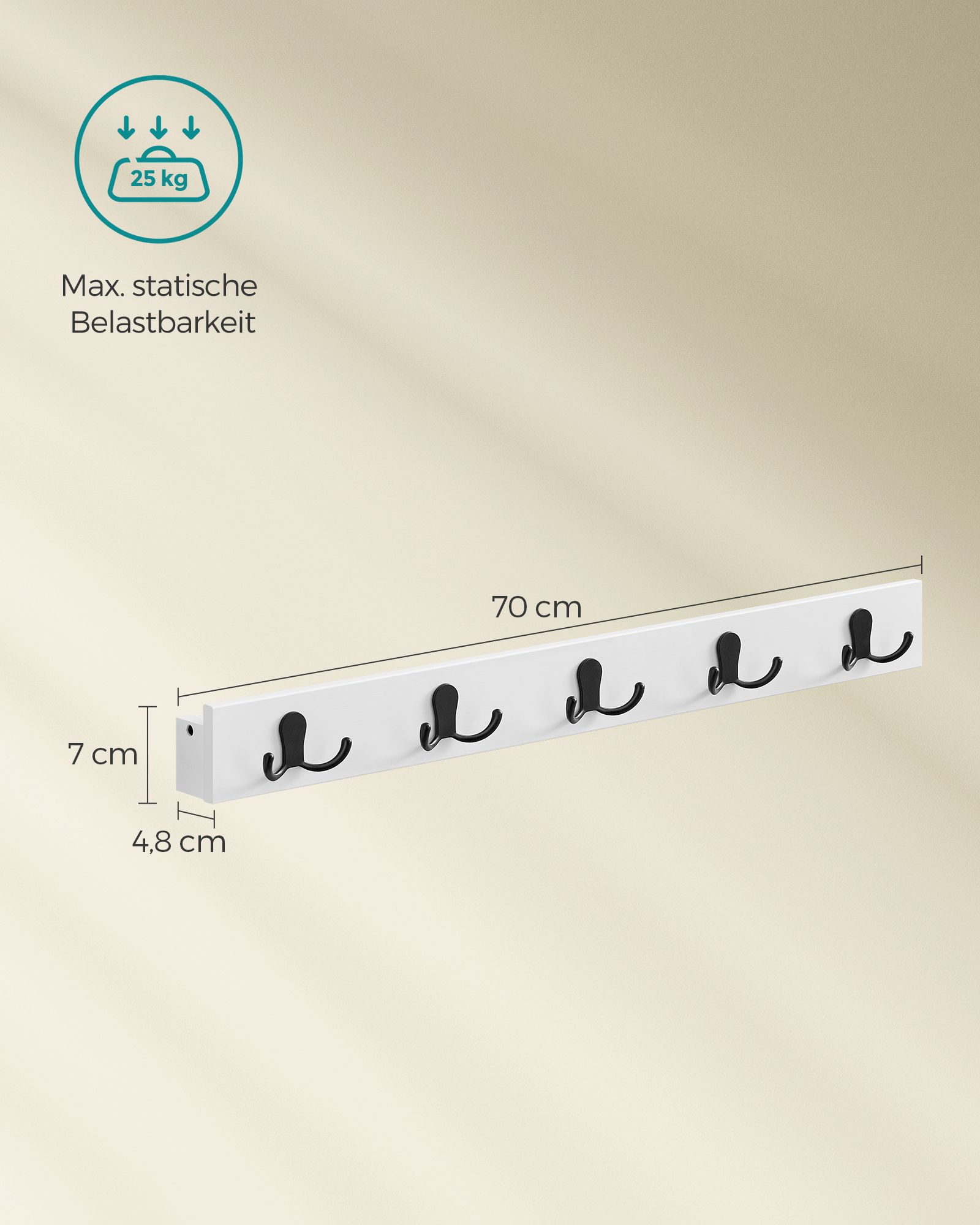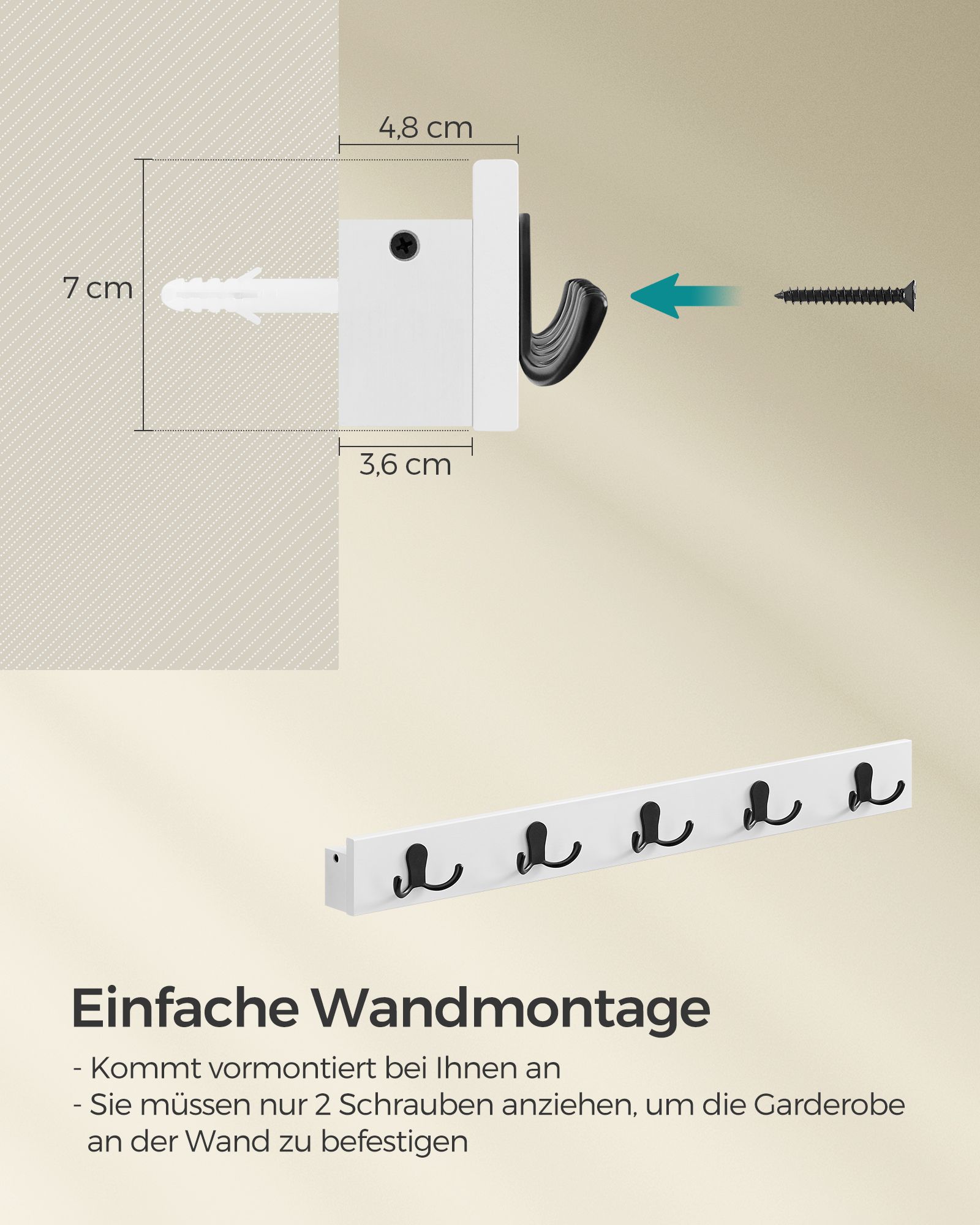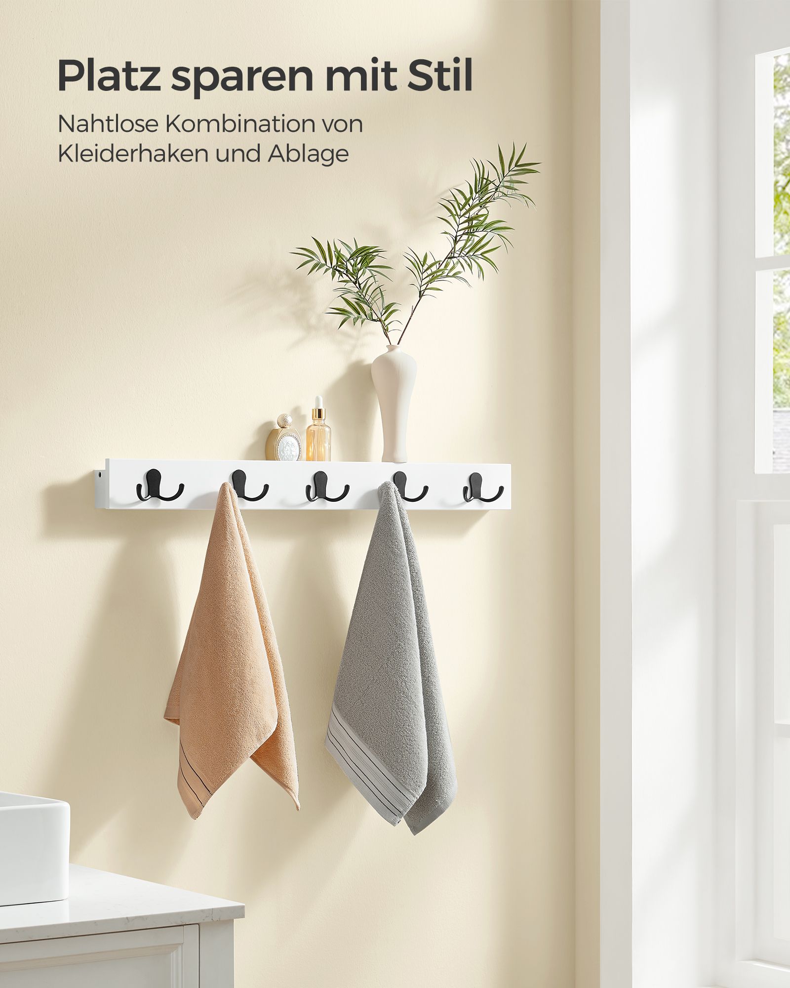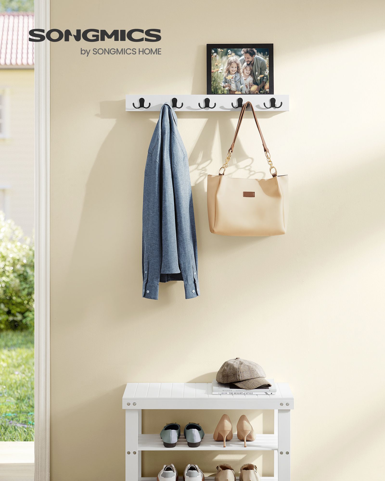 SONGMICS v?goph?ng, garderobe med hylde, v?gmontering, 5 dobbelte metal kroge, pladsbesparende, til entre, stue, sovev?relse, belastbarhed pr. krog op til 5 kg