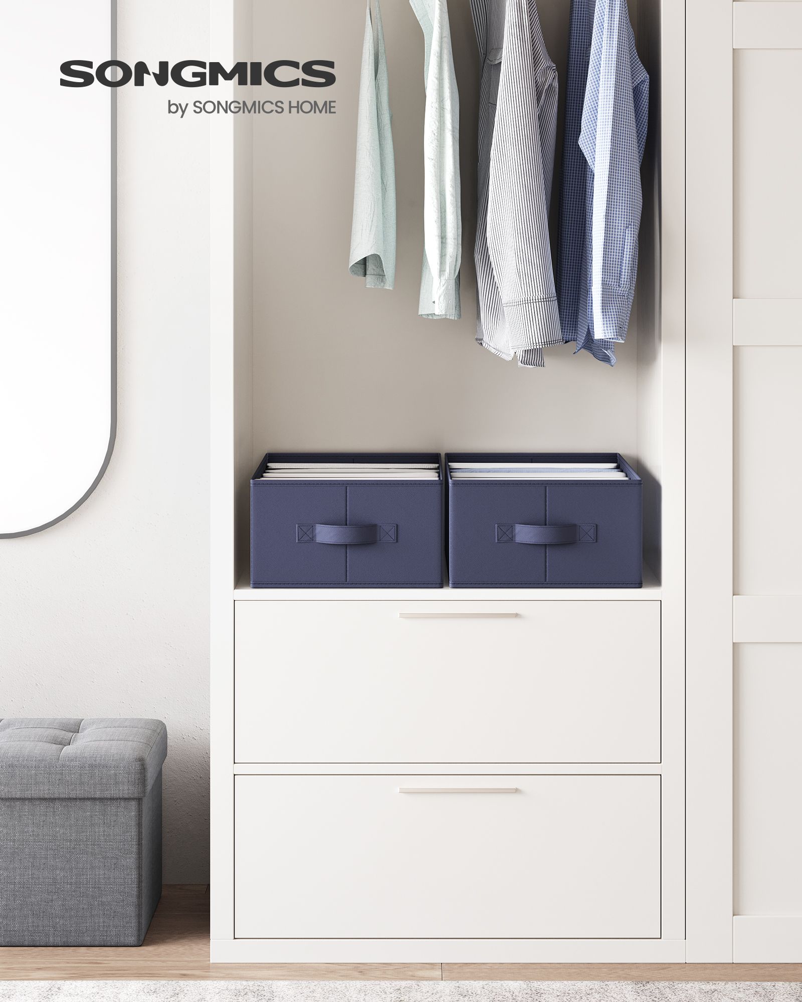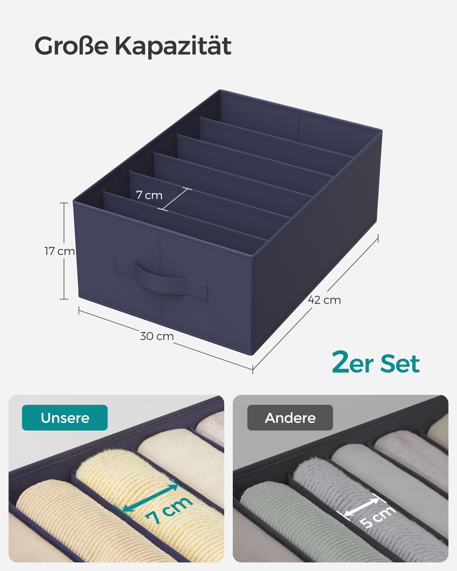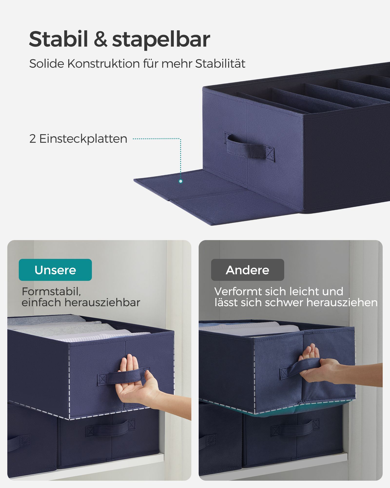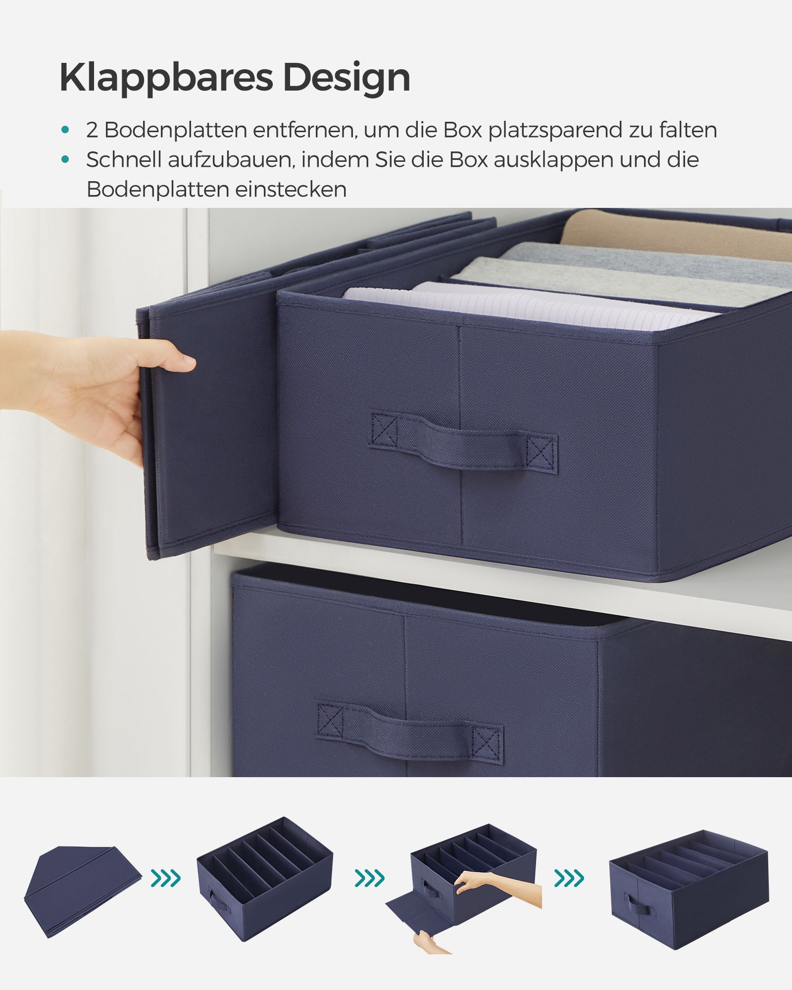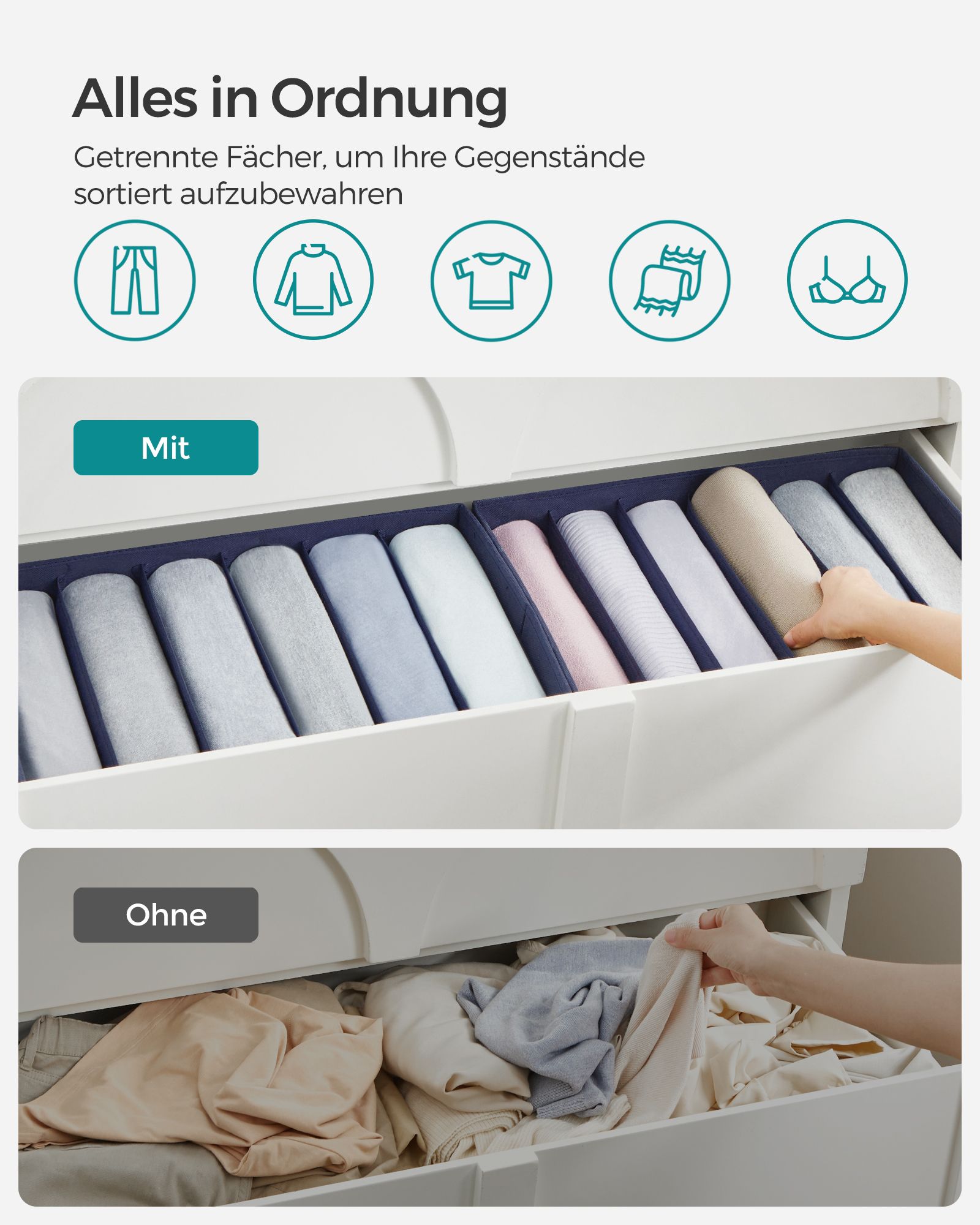 SONGMICS garderobe-organizer 4-delt s?t, opbevaringsboks med 6 rum, skuffeopbevaringssystem, foldbare opbevaringsbokse, 42 x 30 x 17 cm, til bukser, t?j, duvegr? RUS009G04