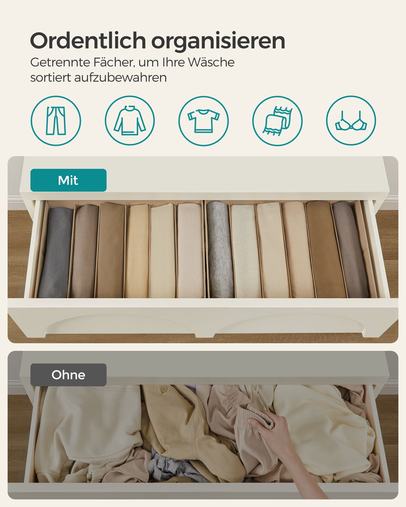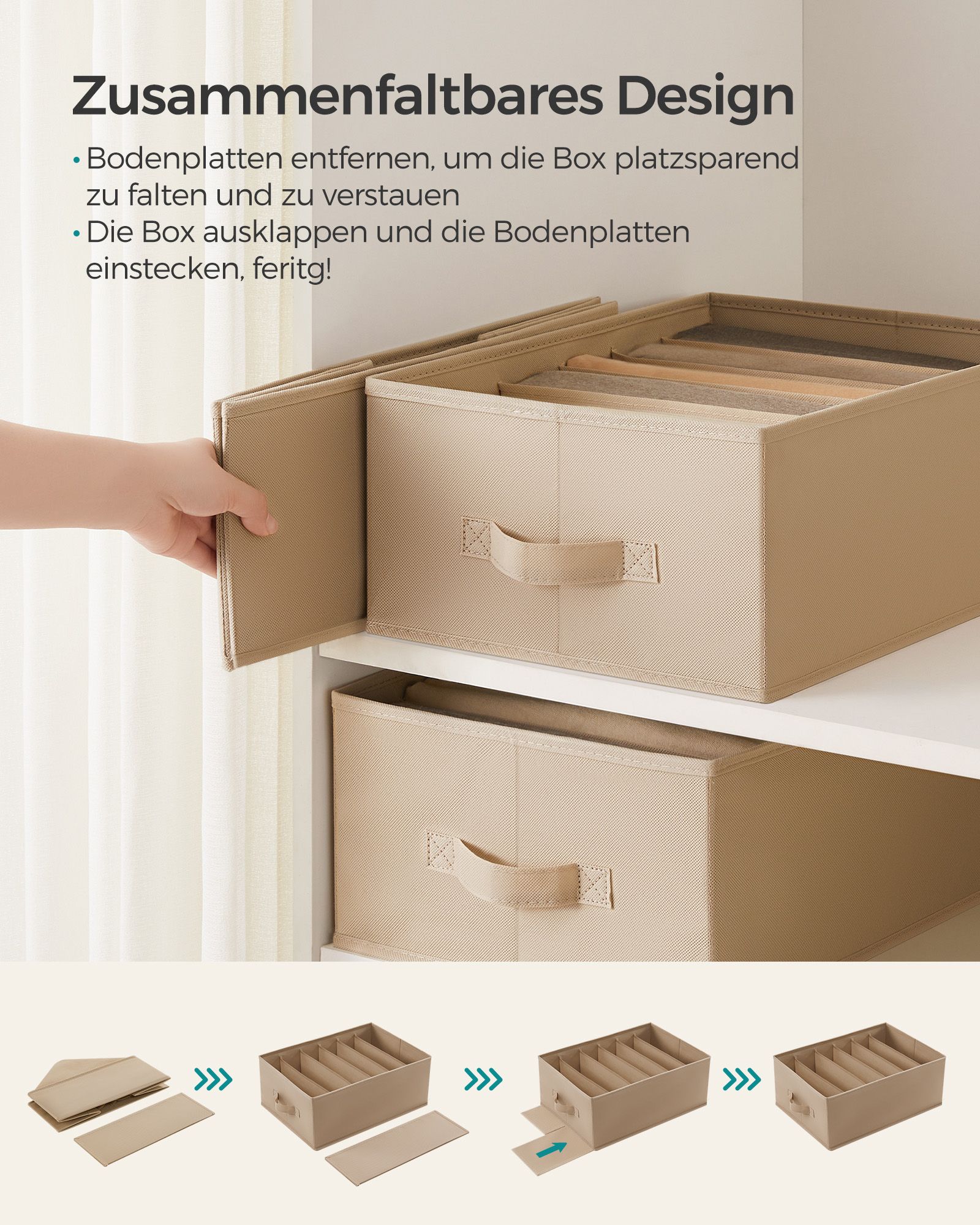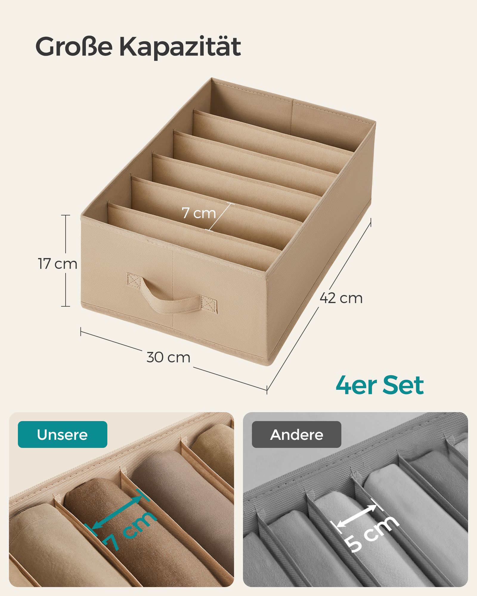 SONGMICS garderobe-organizer 4-delt s?t, opbevaringsboks med 6 rum, skuffeopbevaringssystem, foldbare opbevaringsbokse, 42 x 30 x 17 cm, til bukser, t?j, duvegr? RUS009G04