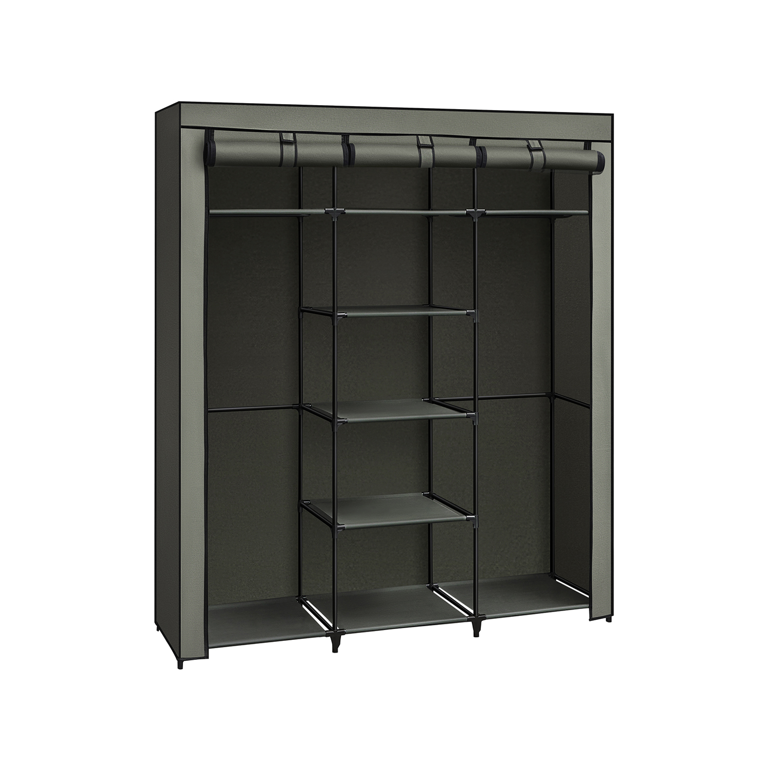 SONGMICS kl?deskab, stofskab, med 2 t?jst?nger, med stofbetr?k, 150 x 45 x 175 cm, med fiskebensm?nster, gr? RYG012G22