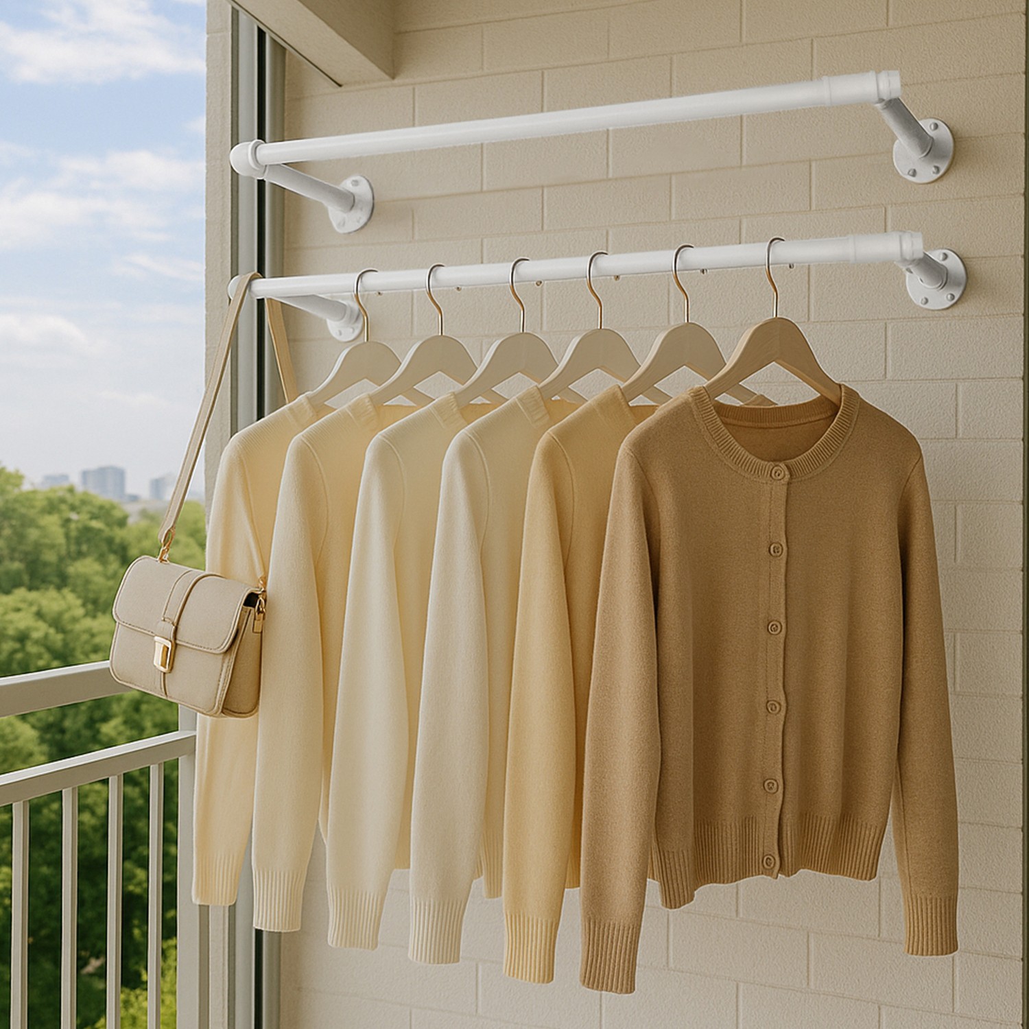 SONGMICS Garderobestang til v?ggen, garderobestativ til v?gmontering, industriel, pladsbesparende, 30,4 x 170 x 7 cm, 68 kg belastbarhed, nem montering, til sm? rum, sort HSR104B01