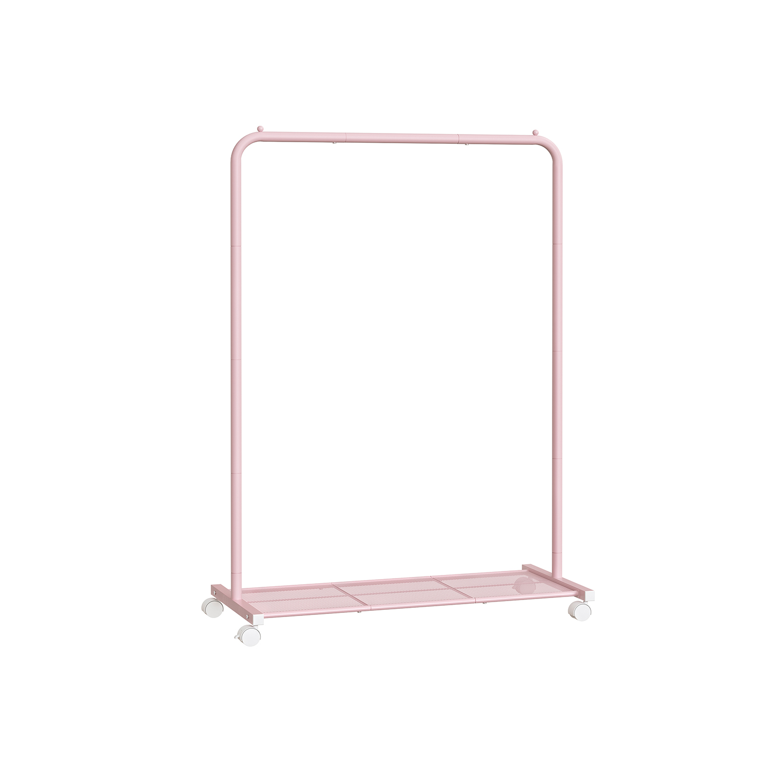 SONGMICS garderobestativ, t?jstang p? ruller, garderobestativ i metal, rullende garderobe 91 cm bred, med hylde, 2 ruller med bremse, garderobestang med en belastbarhed p? op til 40 kg