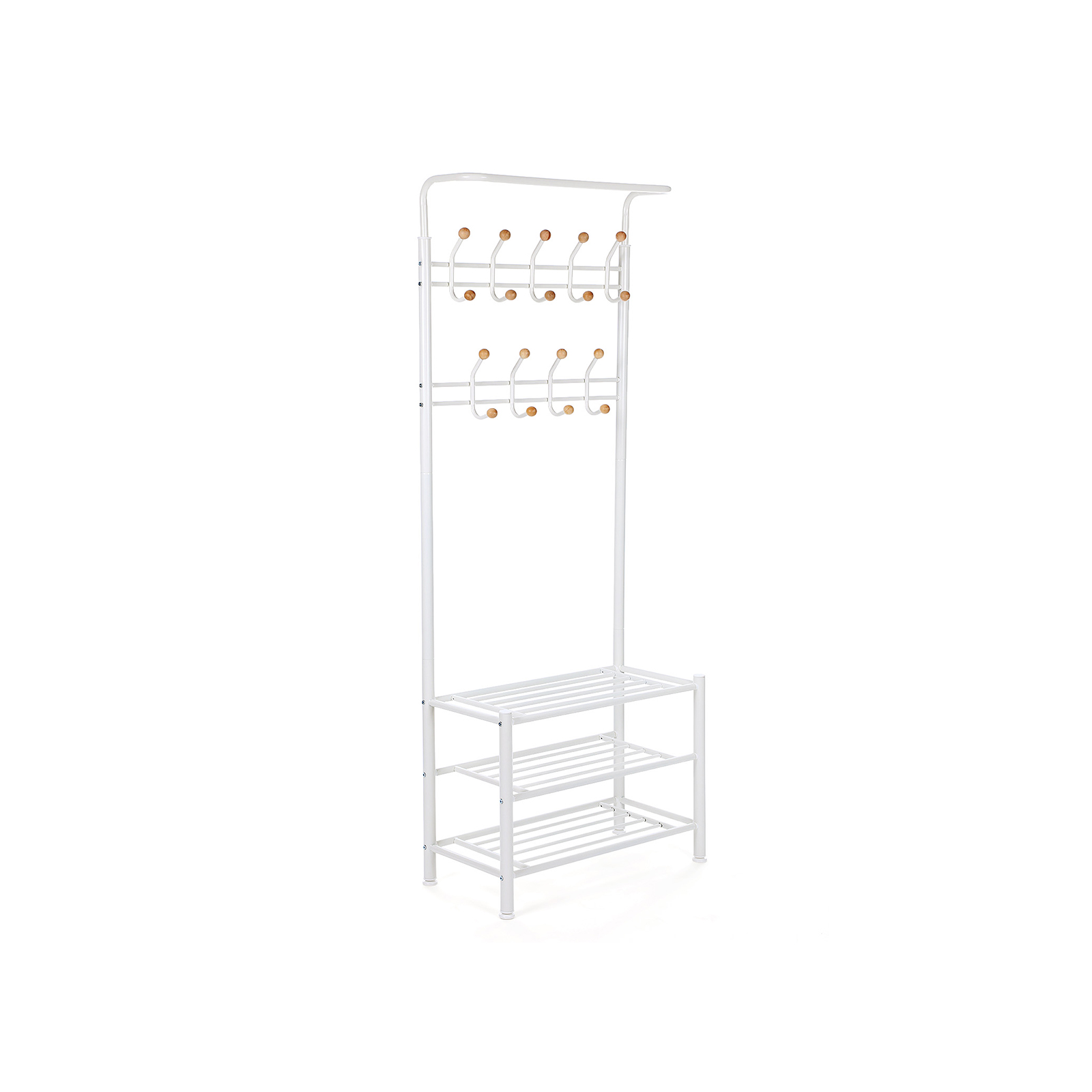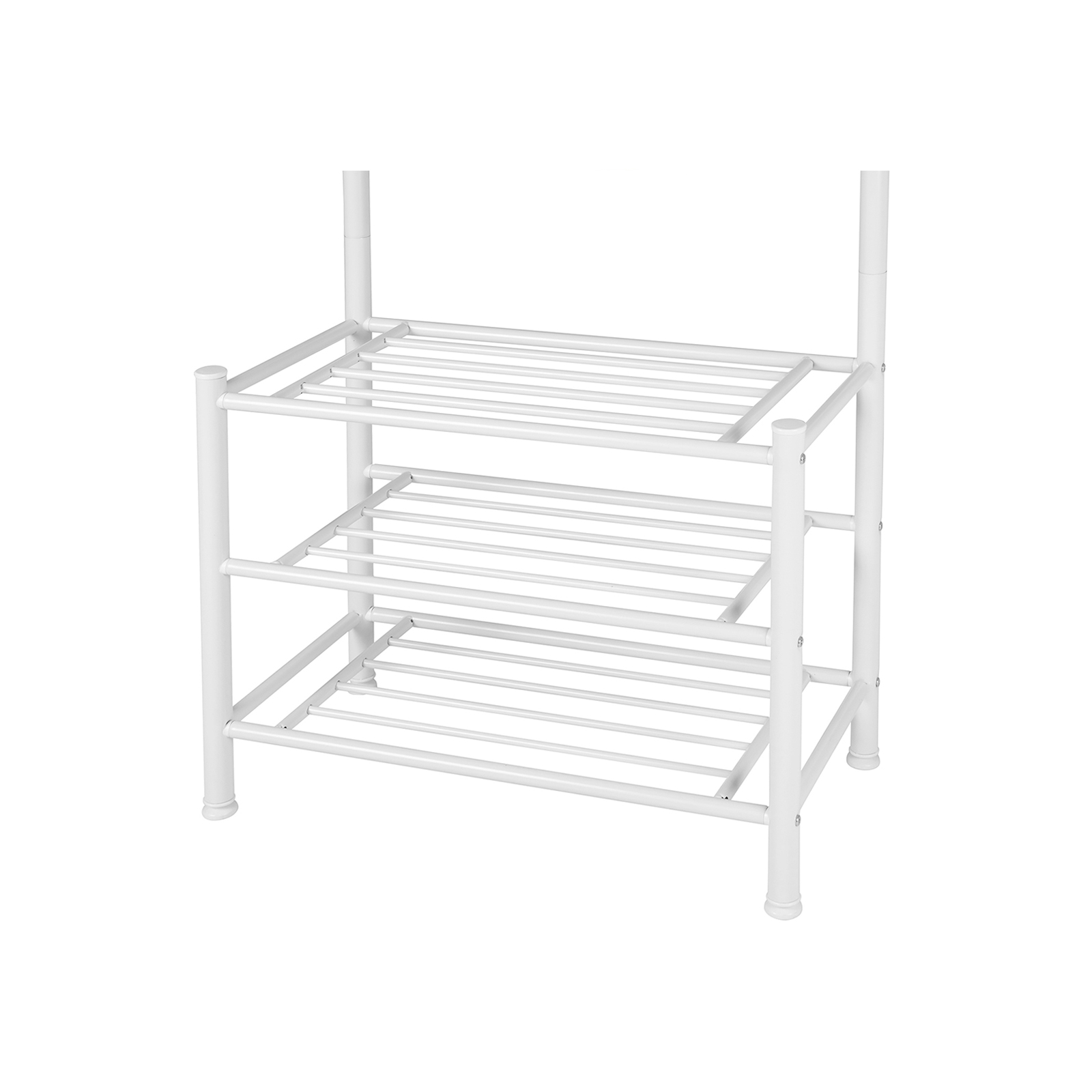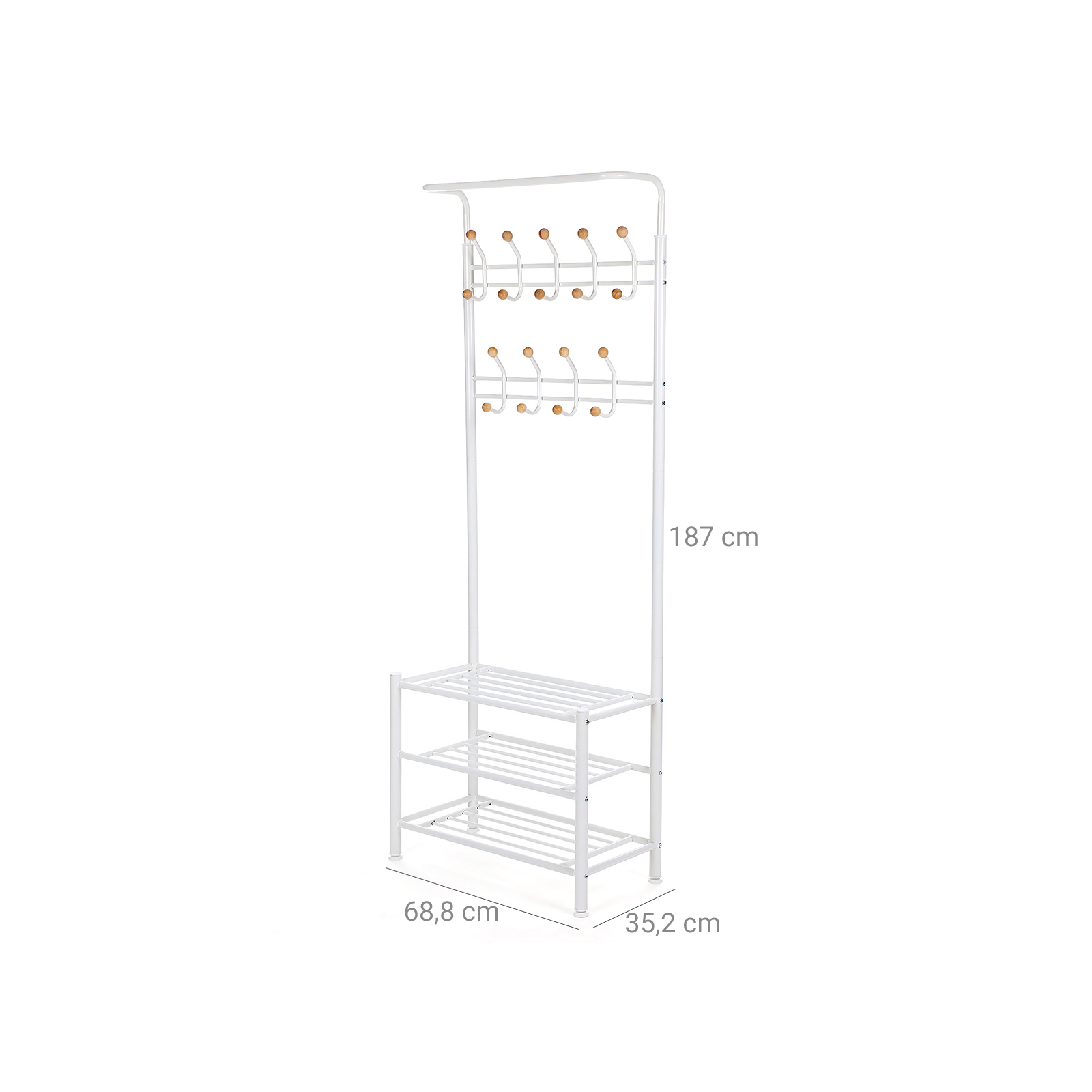 Leder du efter en smal garderobe, der ogs? har hyldeplads? Denne Songmics garderobe er ideel til dig. Den virker ikke for massiv, og de nederste gitter kan ogs? b?re mere end bare sko. Tr?kuglerne er fastgjort til kroge og falder ikke ned. Takket v?re pulverlakeringen er overfladen glat og rustbestandig, og garderobestativet kan nemt reng?res med en klud. Den mekaniske sikkerhed af garderobestativet har best?et T?V Rheinland-testen i henhold til EN 14749:2016. Testrapportnr.: 50085837/SHF/02-01. Songmics garderobestativet garanterer dig optimal anvendelse. Produktdetaljer: – M?l: 68,8 x 187 x 35,2 cm (B x H x D) – Materiale: pulverlakeret jernr?r – Diameter p? rammer?rene: 32 mm – Belastbarhed for hver krog: 5 kg – Belastbarhed for hver hylde: 40 kg – Emballagem?l: 69 x 44 x 18,5 cm – Nettov?gt: 7,2 kg – Bruttov?gt: 8,52 kg Leveringsomfang: – 1 x garderobestativ – 1 x vejledning (DE, EN, FR, IT, ES) – 1 x beslagspose inkl. unbrakon?gles?t Bem?rkninger: – Vipbeskyttelse medf?lger, s? du kan fastg?re garderobestativet til v?ggen efter behov.
