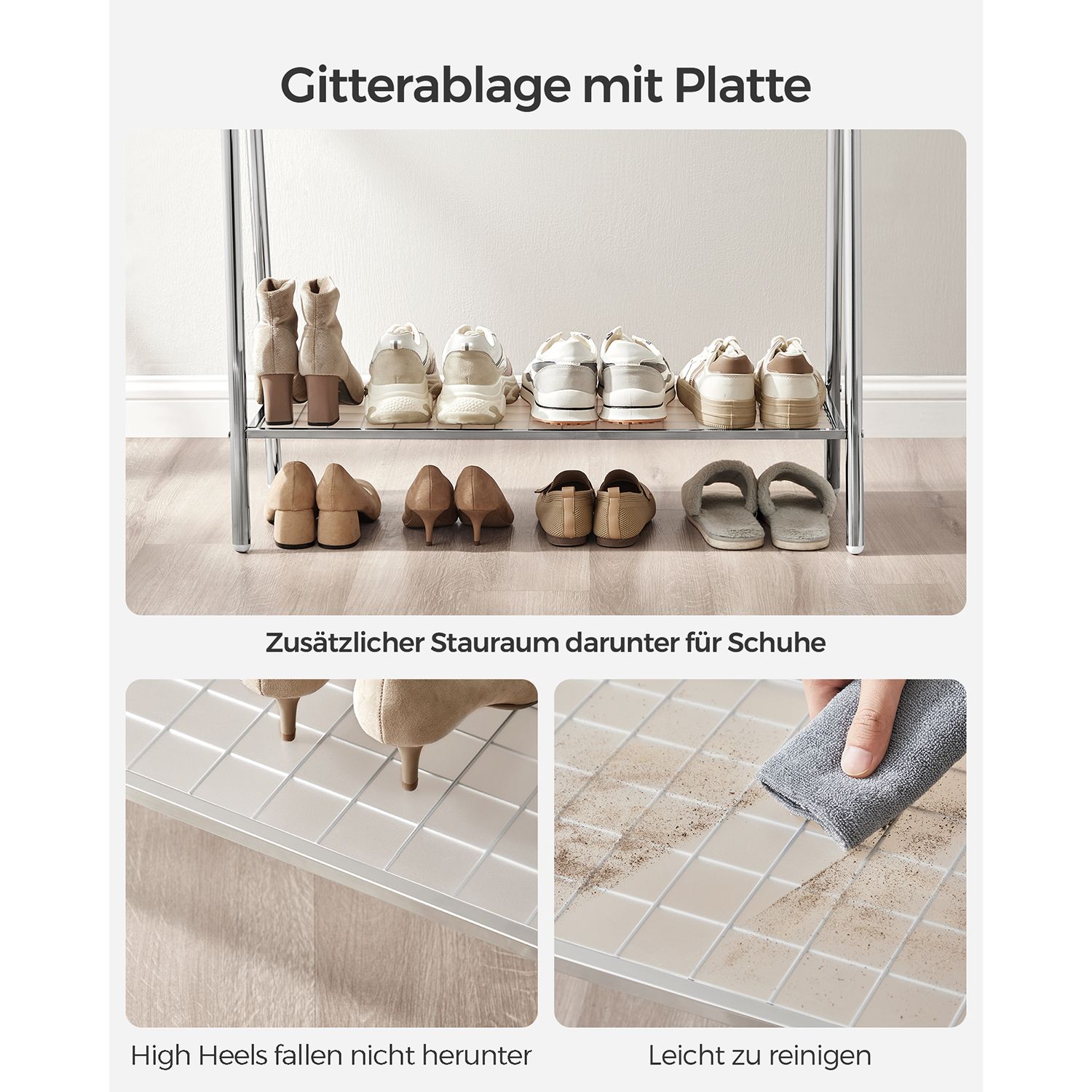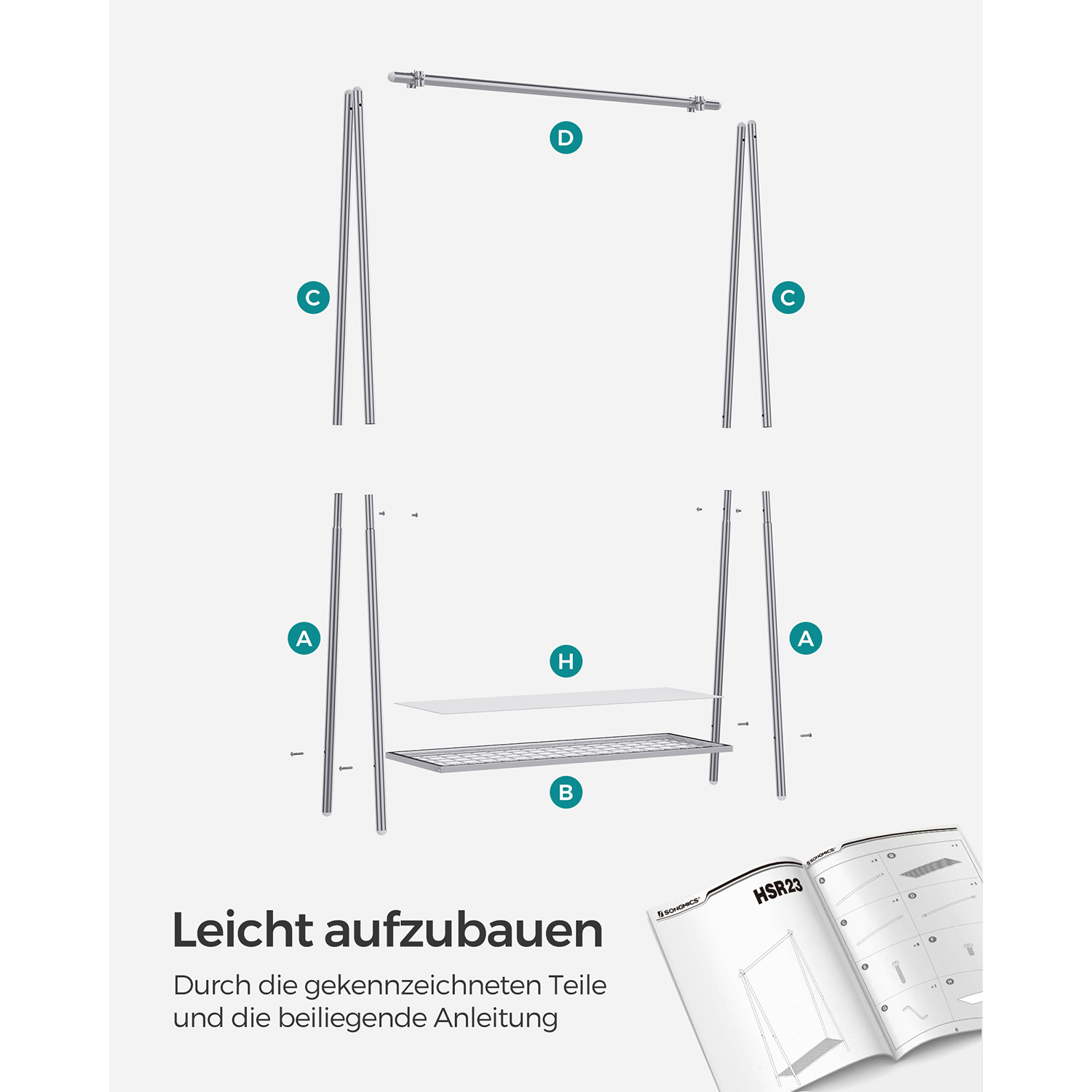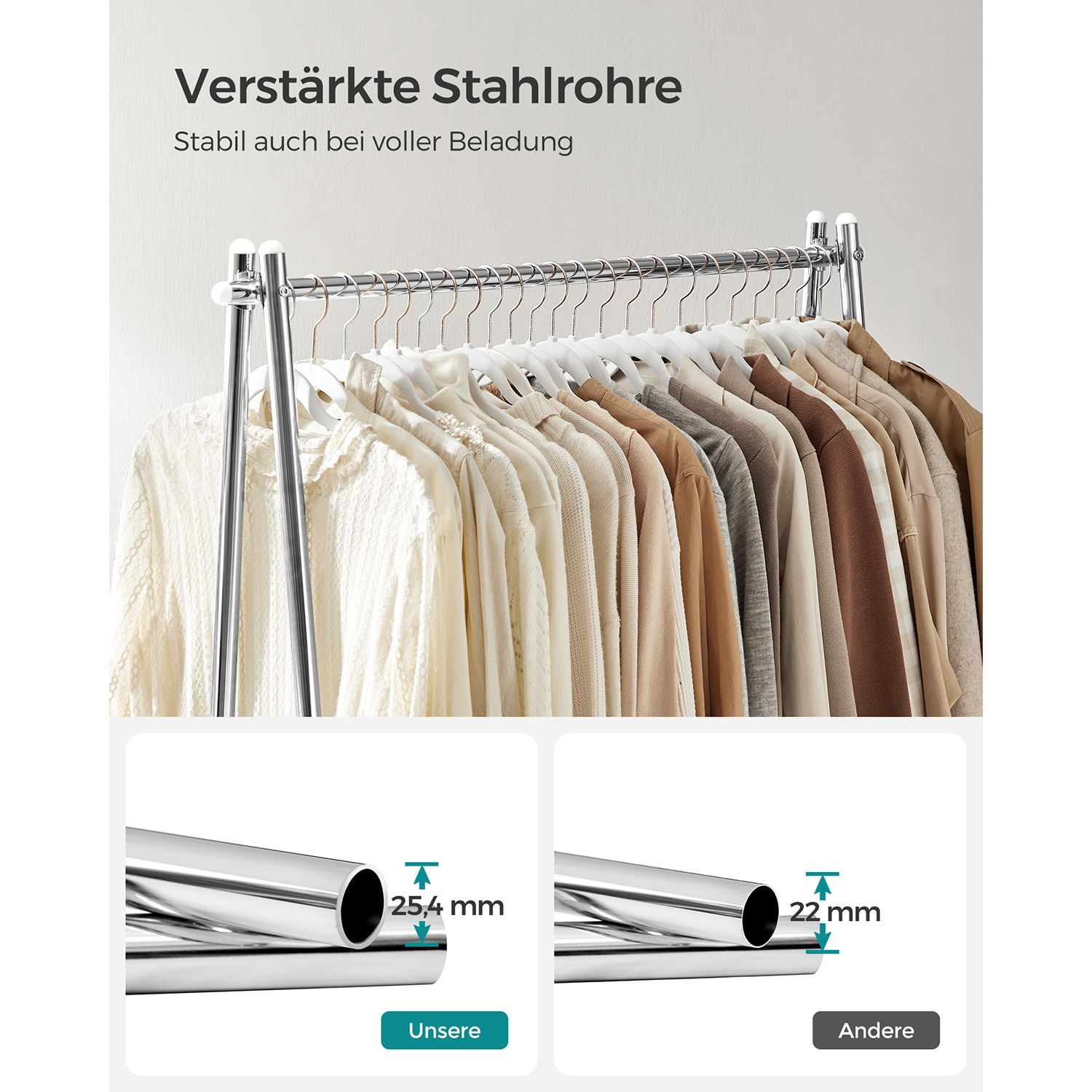 SONGMICS t?jstativ i st?l, garderobestativ med t?jstang, hylde i den nederste del, enkelt, sovev?relse, entre, loft, k?lder, 92,5 x 33,5 x 153 cm, mat sort HSR23BK
