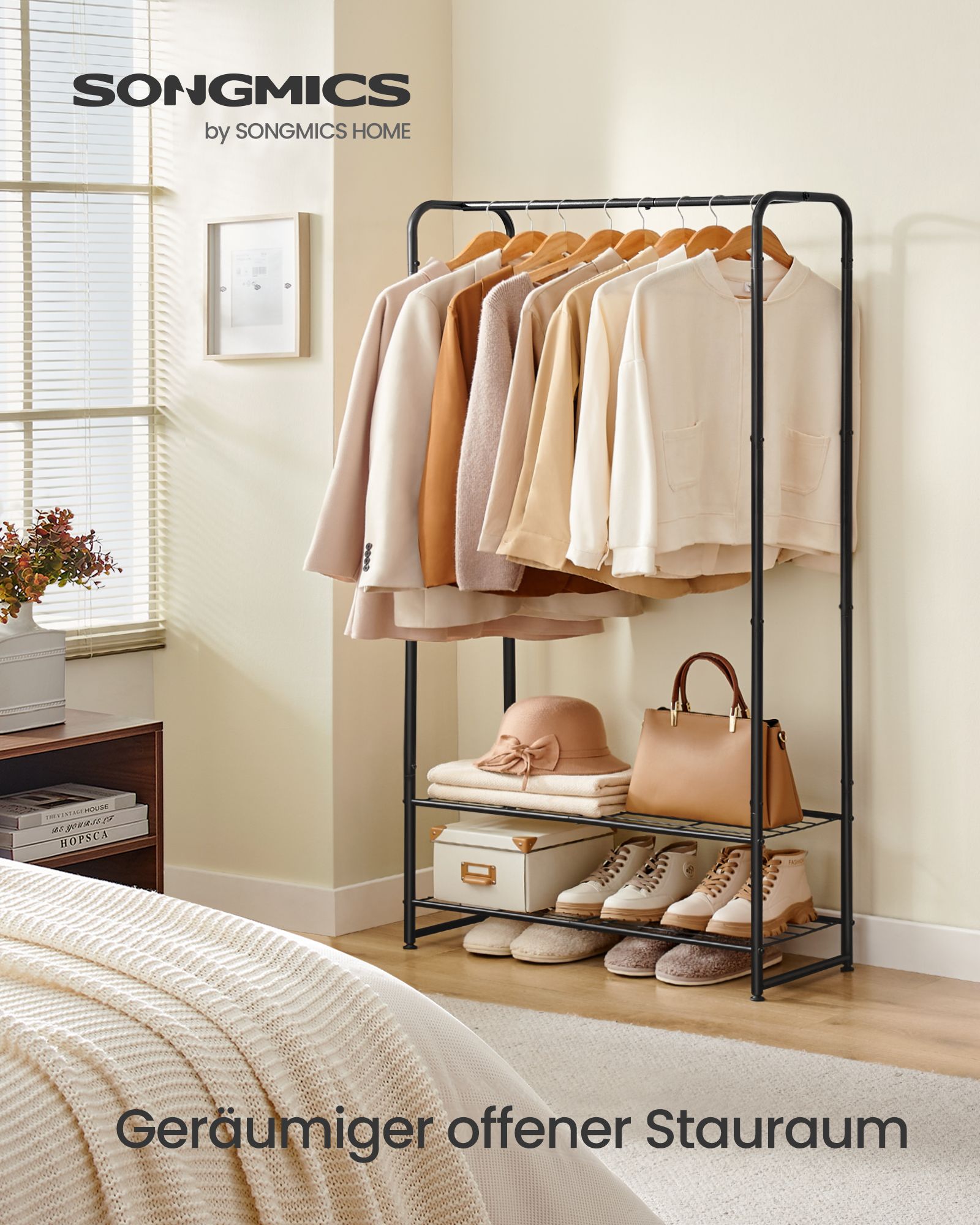 SONGMICS garderobestativ, ?ben garderobe, t?jstang, garderobestativ med hylder, garderobe i metal, fritst?ende, mat sort LGR463B01