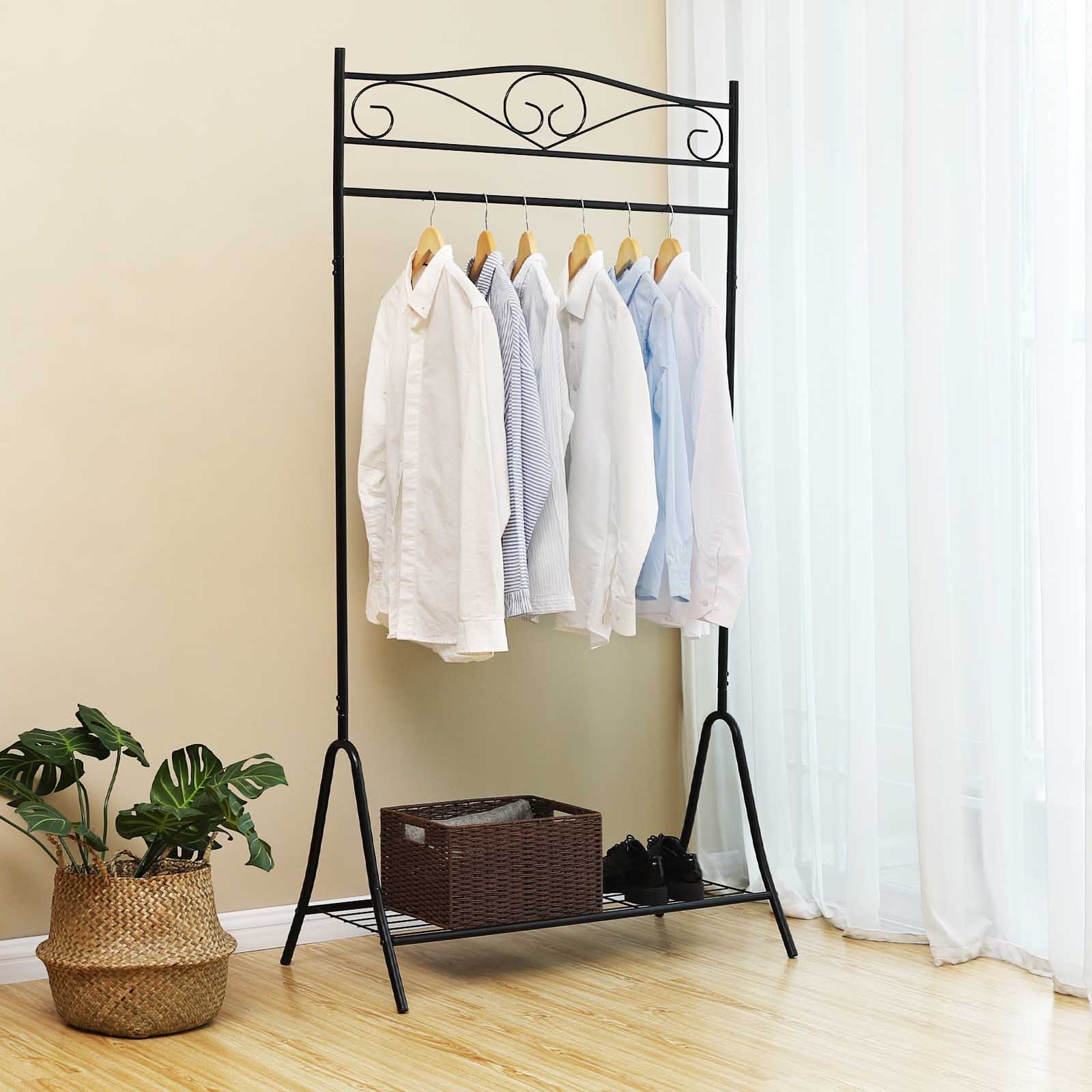 SONGMICS H?jde 173 cm metal antik garderobestativ t?jstang garderobestativ med skohylde sort HSR01B