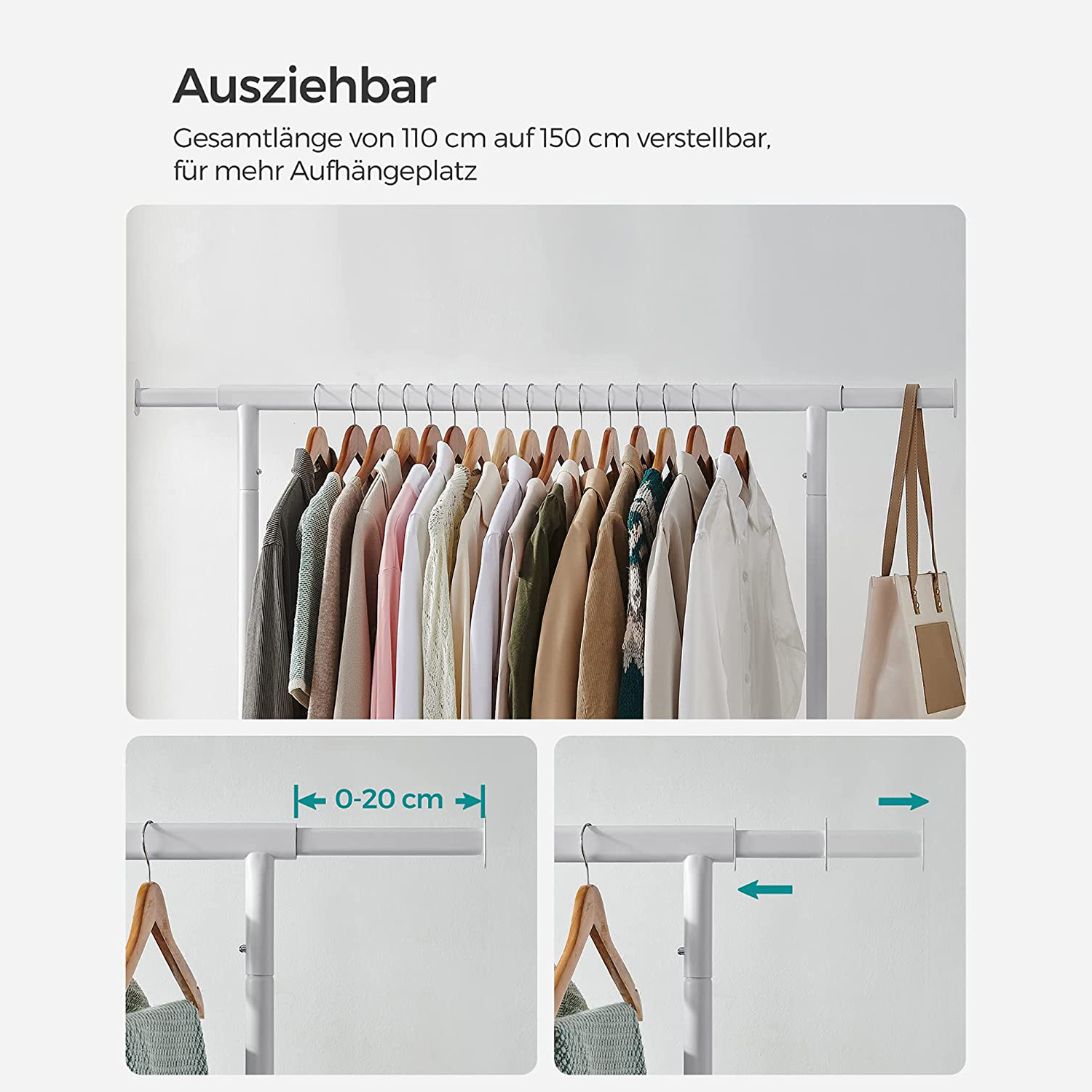 SONGMICS garderobestativ med udtr?kkelig t?jstang