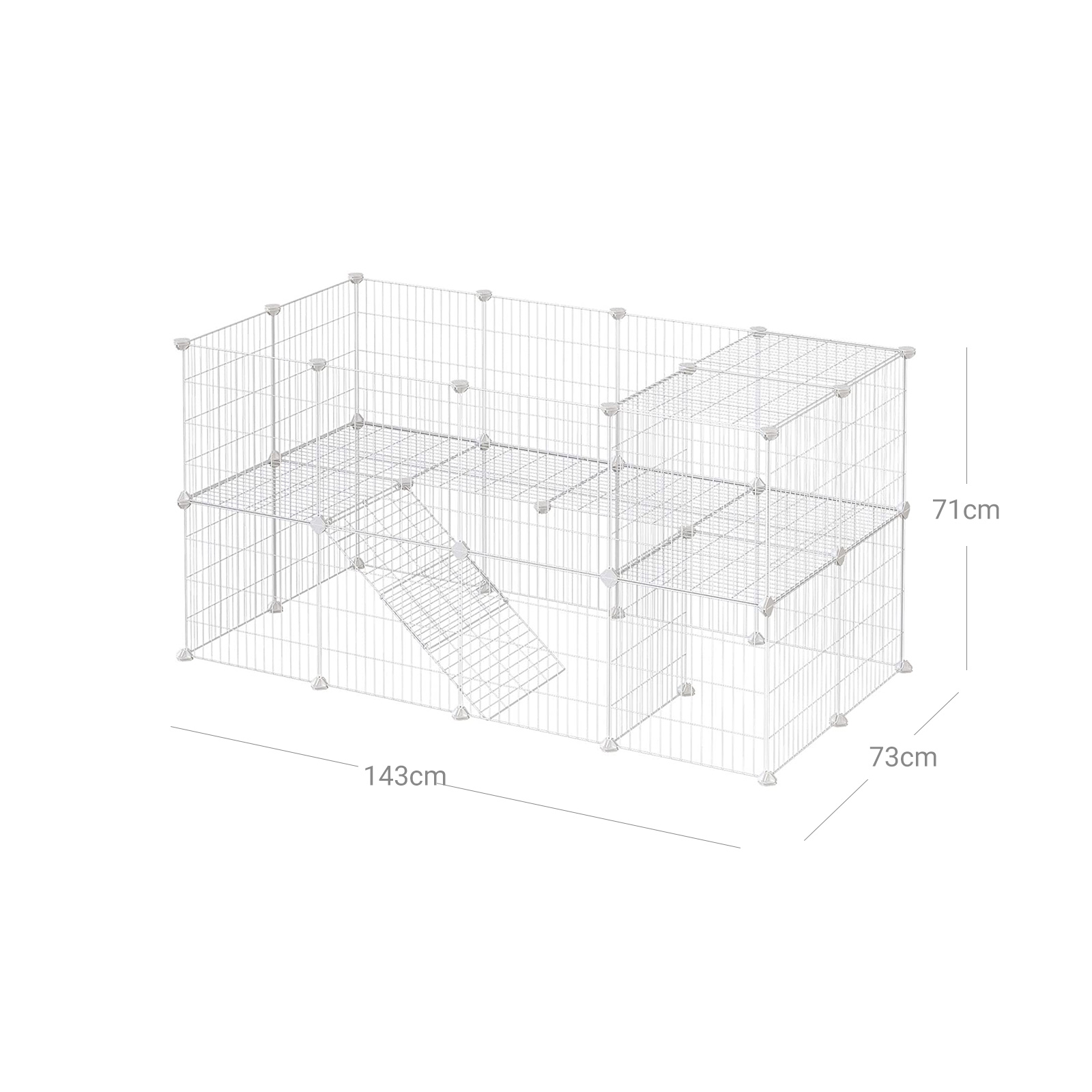 SONGMICS Gitterbur, 36 plader, 2 etager, 143 x 71 x 73 cm, l?begitter til sm? dyr og marsvin, inkl. gummihammer, til indend?rs brug, justerbar, kan samles individuelt, sort LPI02H