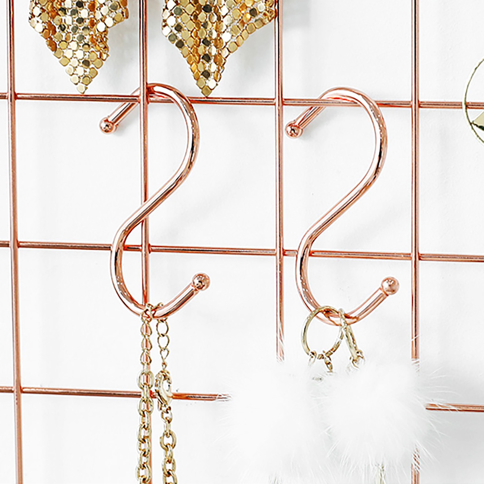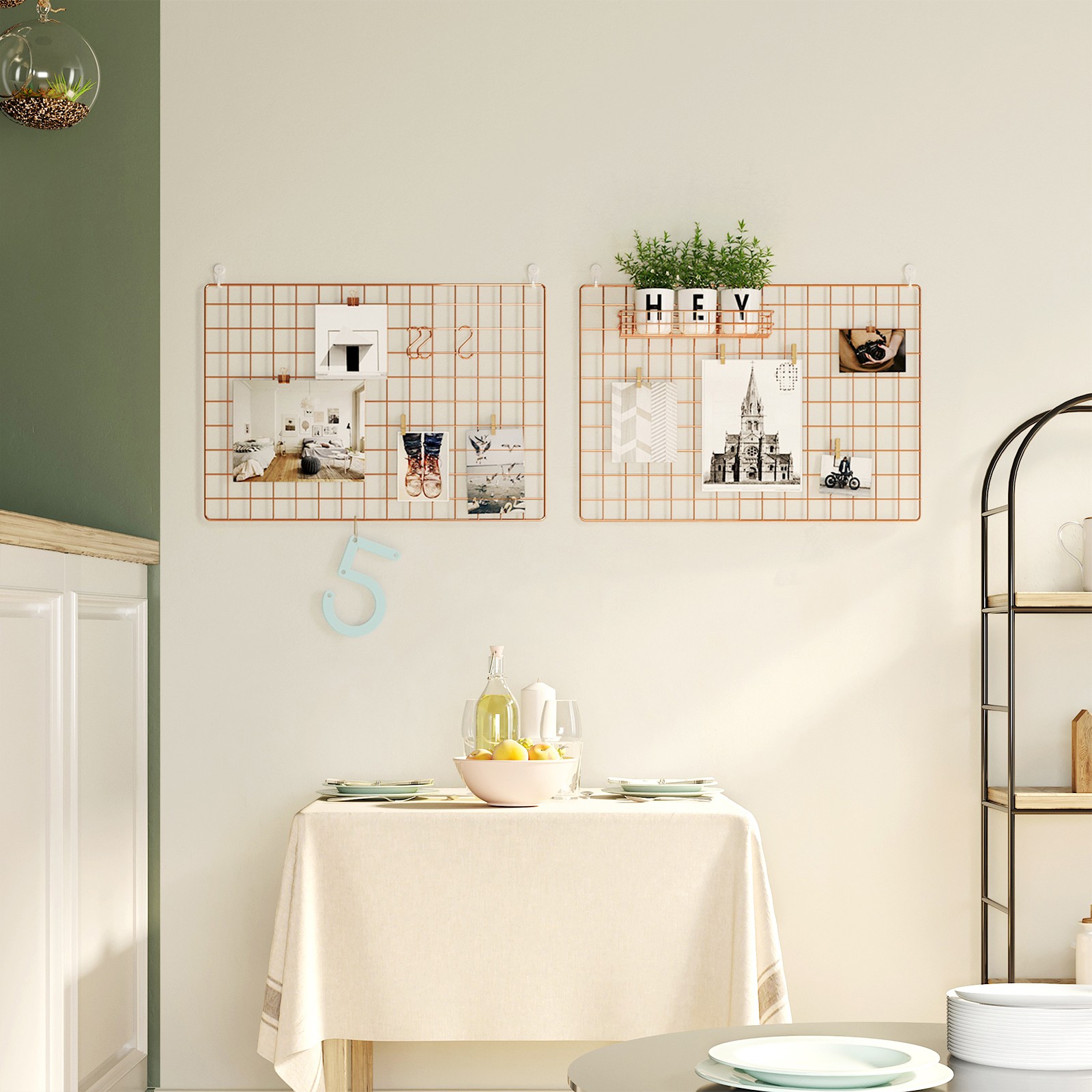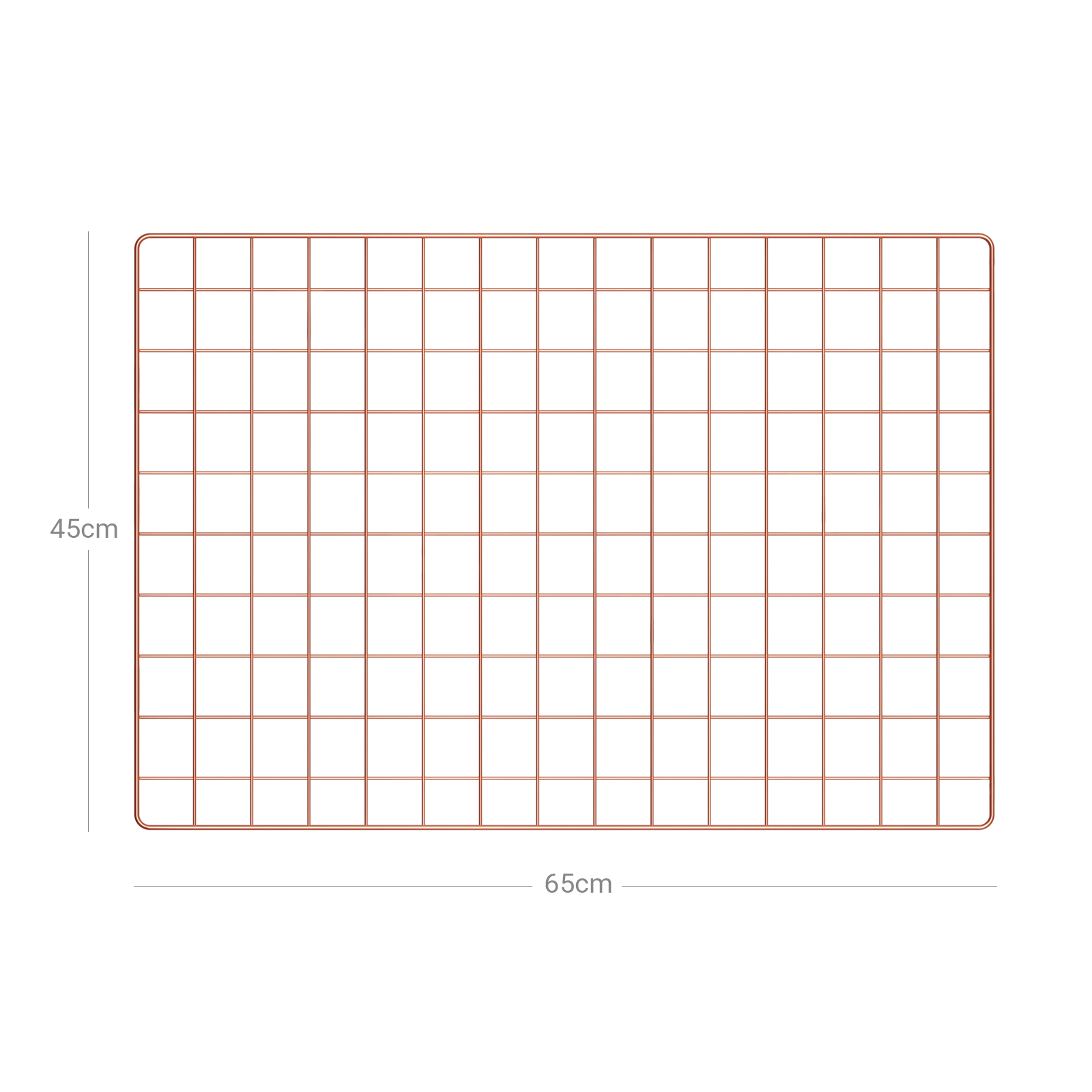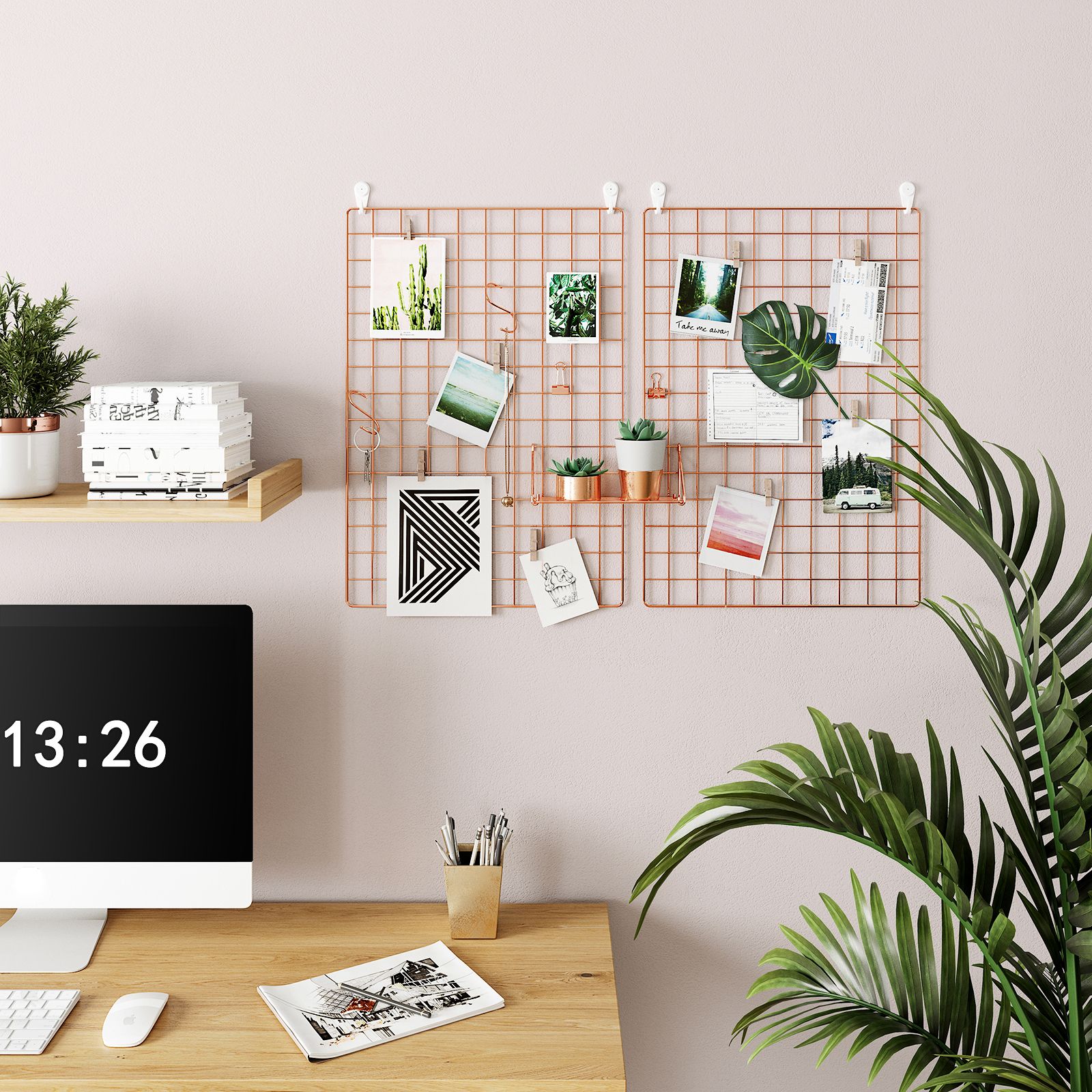 Til de sm?, men vigtige ting i livet: Forsvinder dine regninger og kvitteringer altid p? uforklarlig vis? Overskrider du hele tiden deadlines for dine projekter? S? har du brug for en oph?ngsv?g, hvor du kan h?nge regninger, vigtige noter eller andre sm?ting. Du vil drage fordel af, at alt er i orden.En gave til dine k?re eller dig selv: G?r denne gitterv?g til en f?dselsdagsgave, julegave eller en “bare fordi jeg elsker dig”-gave, og skab et unikt udstillingsomr?de for fotos, der minder dig og dine k?re om de gode stunder, I har haft sammen. Hvis du ogs? personligt kan lide denne stilfulde v?ghylde, hvorfor s? ikke bare fork?le dig selv med den? Produktdetaljer: Farve: Ros?guld Materiale: Jern St?rrelse p? hver plade: 65 x 45 cm (L x B) L?ngde p? hampesnor: 1 m V?gt: 1,6 kg Maks. belastbarhed: 5 kg Leveringsomfang: 2 x gitterplade 6 x S-kroge 1 x hampesnor 30 x tr?klemmer 4 x sporl?se v?gkroge 1 x hammer (19 cm) 1 x vejledning (DE, EN, FR, ES, IT) SONGMICS Bem?rkninger:- Opbevar produktet uden for b?rns og k?ledyrs r?kkevidde. – H?ng ikke genstande, der vejer mere end 5 kg, p? pladen. – Den maksimale belastning i teksten refererer til den statiske maksimale v?gt.