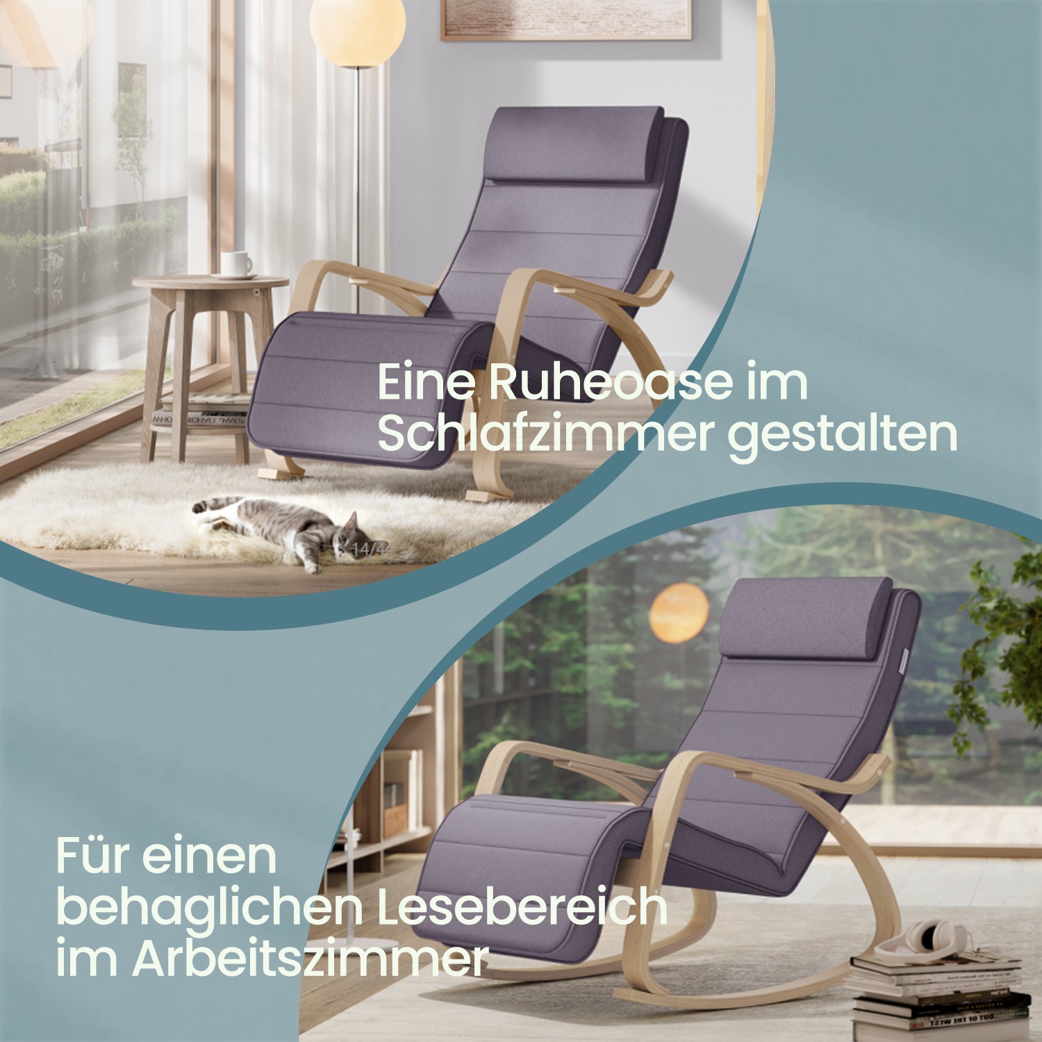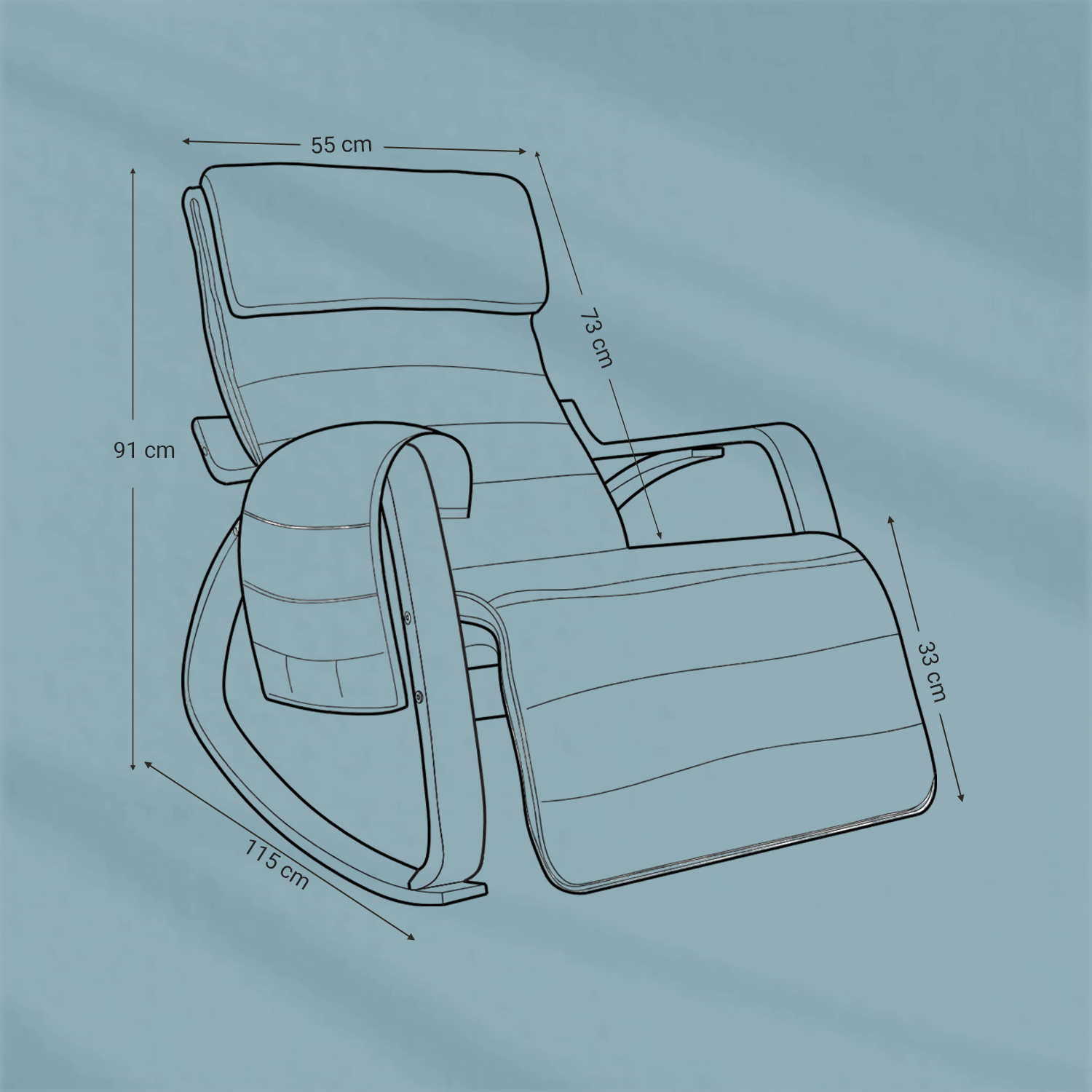 Mere afslappet end nogensinde f?r Tag en lur om eftermiddagen, nyd en aften foran tv’et, fordyb dig i en god bog, vug dit barn… Takket v?re det bl?de bomuldsbetr?k, skumpolstringen og den praktiske nakkest?tte giver denne ergonomiske gyngestol dig altid h?j siddekomfort, mens du nyder afslappende ?jeblikke. SONGMICS st?r for sikkerhed Benene og arml?nene p? denne gyngestol er lavet af robust birketr?, og s?det er desuden forst?rket indvendigt med et metalstel ? s? du kan s?tte dig trygt i stolen og gynge sikkert frem og tilbage! Benene er desuden udstyret med skridsikker filt, som beskytter dit gulv mod ridser og forhindrer stolen i at glide. Produktdetaljer: – Farve: Lysegr? – Materiale: Birk, metalstel indvendigt, polstring af skum, betr?k af bomuld – Samlet st?rrelse: 67 x 115 x 91 cm (L x B x H) – H?jde p? rygl?n: 73 cm – Siddedybde: 48 cm – Siddedybde: 55 cm – L?ngde p? fodst?tte: 33 cm – V?gt: 9,8 kg – Maks. statisk belastning: 150 kg Leveringsomfang: – 1 x gyngestol – 1 x tilbeh?rspakke – 1 x vejledning (DE, EN, IT, FR, ES) SONGMICS Bem?rkninger:- Hvis skruehullerne ikke kan justeres i forhold til hinanden under monteringen, eller hvis fodst?tten ikke kan justeres, skal du kontrollere, om metalrammen indeni er monteret p? hovedet. – Stram ikke skruerne med det samme under monteringen. F?rst n?r du har sat alle skruer i, skal du stramme dem forsigtigt. – Reng?ring af stofbetr?k: Maskinvask op til 30 ?C; m? ikke t?rretumbles; m? ikke bleges; m? ikke stryges. – Undg? at placere produktet udend?rs i l?ngere tid.
