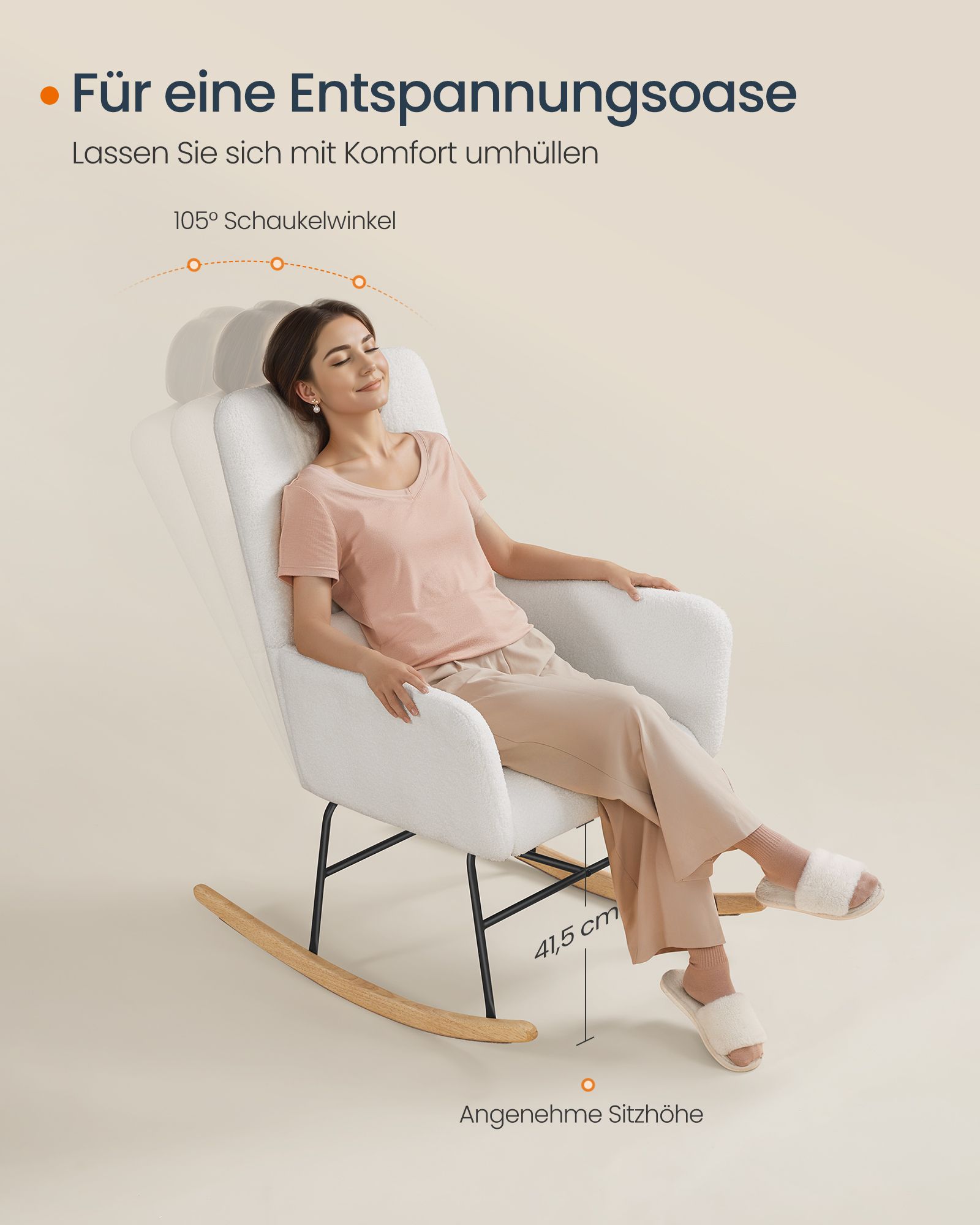 SONGMICS HOME Gyngestol, med arml?n, hvilestol, betrukket med fleece, st?lstel, ben af gummitr?, belastbar op til 160 kg, til sovev?relse, stue, skifergr? LYY500G01
