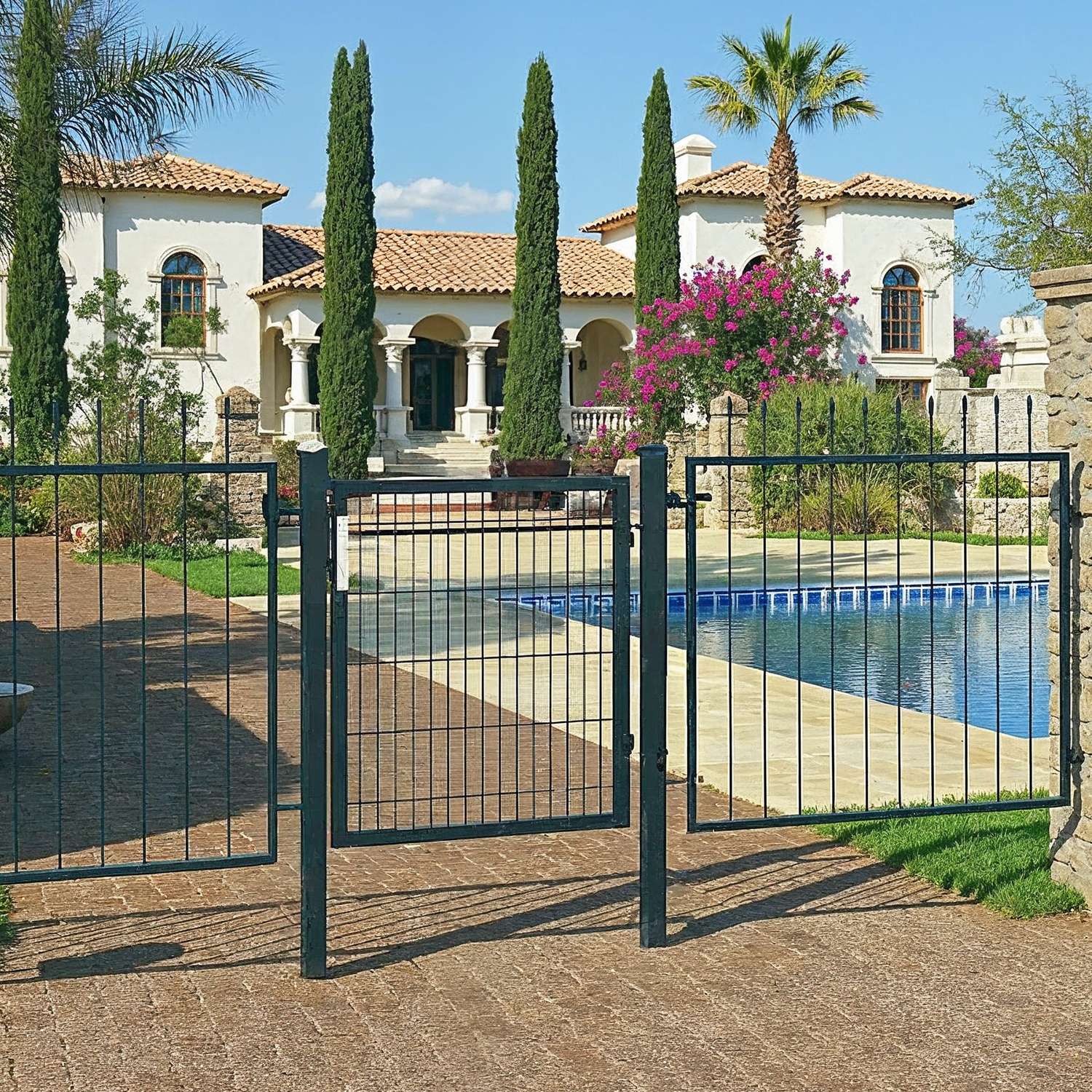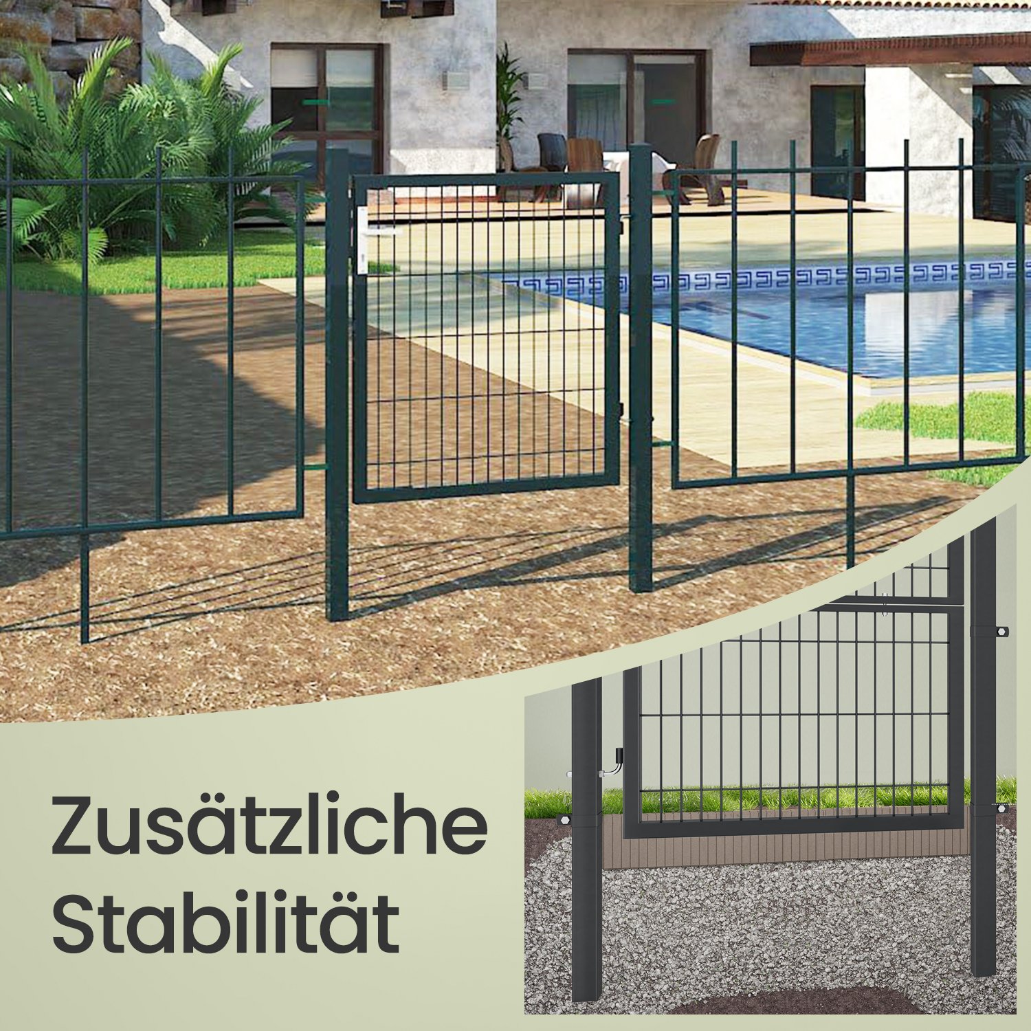 SONGMICS havel?ge af galvaniseret st?l, haved?r, hegn, g?rdport, med kvalitetsl?s, d?rh?ndtag og n?gle, 106 x 150 cm (L x H), gr? GGD250G
