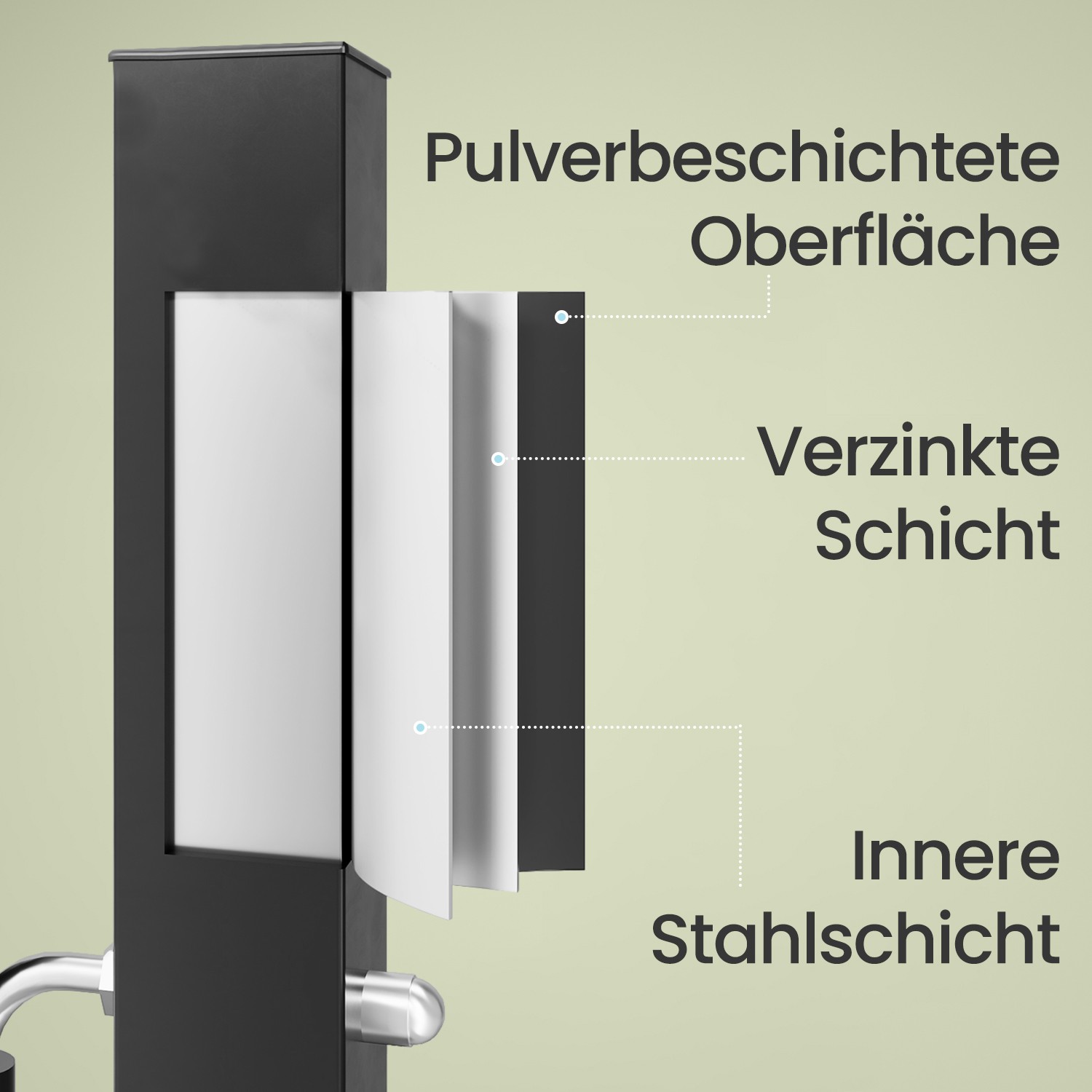 – Materiale: Galvaniseret st?l, PP-plastgreb, metaln?gle, aluminiumscylinderl?s