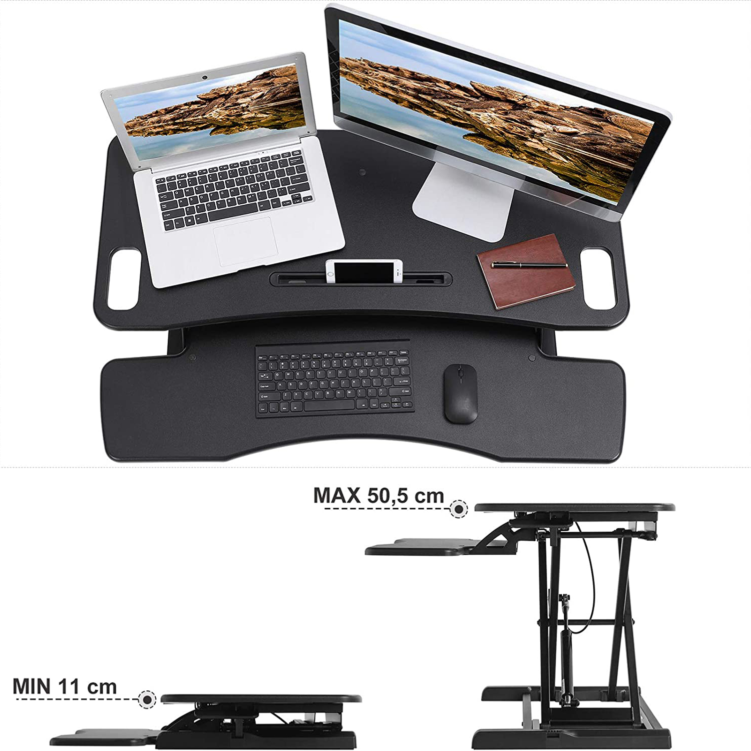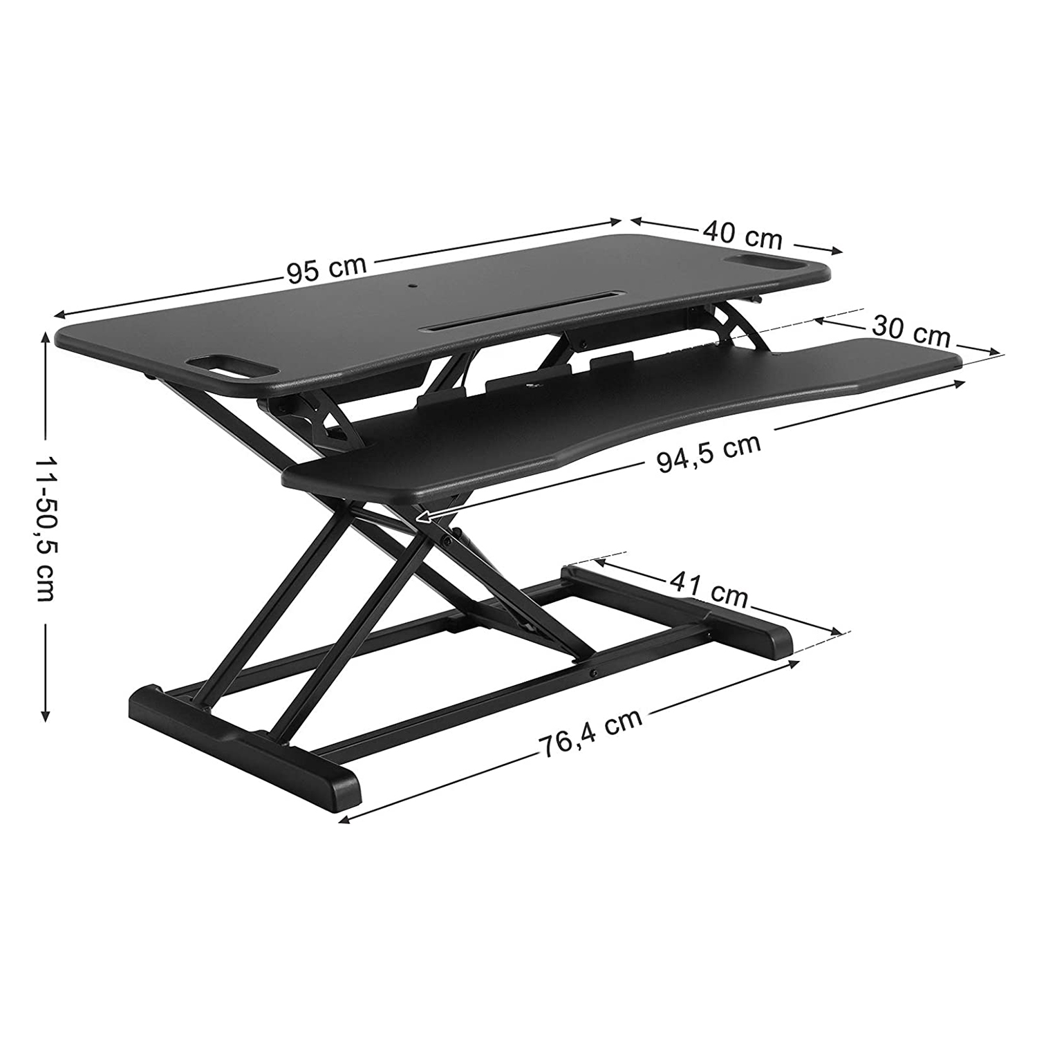 Produktdetaljer: – Farve: sort – Materiale: MDF-plade, metalramme – St?rrelse p? bordplade: 95 x 40, 6 cm; Tastaturhylde: 94 x 30, 5 cm – Maks. h?jde: 39, 5 cm – V?gt: 16, 4 kg – Belastbarhed: Bordplade-15 kg; Tastaturhylde-2 kgLeveringsomfang: – 1 x skrivebordsplade- 1 x tastaturhylde- 1 x tilbeh?rspose- 1 x vejledning (DE, EN, FR, ES, IT)SONGMICS Bem?rkninger: – Overbelast ikke produktet.