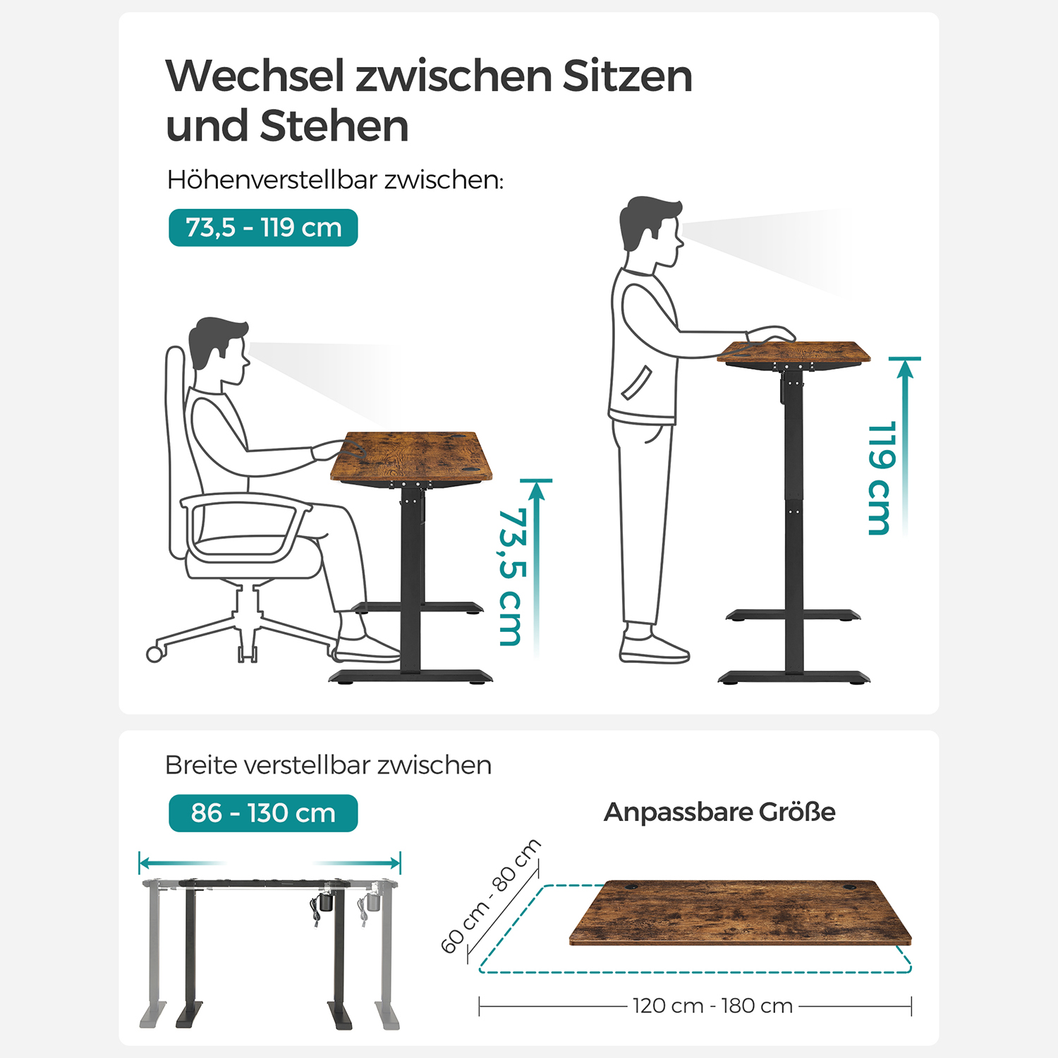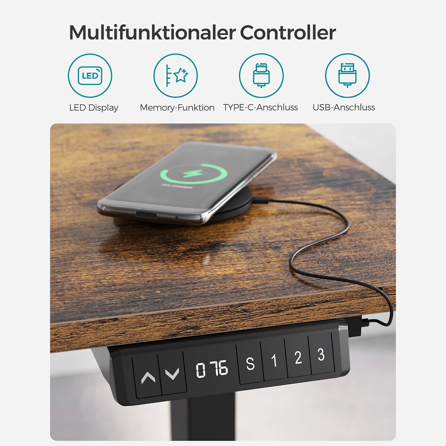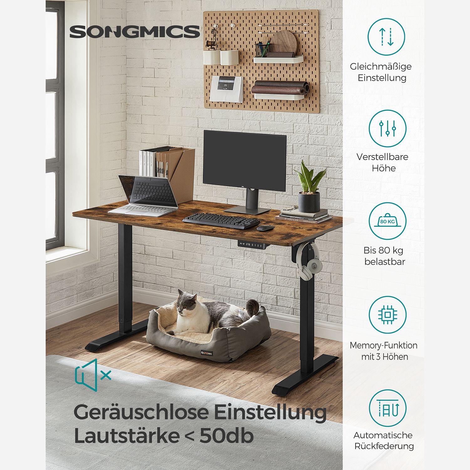 SONGMICS Elektrisk h?jdejusterbart skrivebord, 70 x 140 cm bordplade, trinl?st justerbar, hukommelsesfunktion med 3 h?jder, p?k?rselssikring, vintagebrun-sort LSD102X01