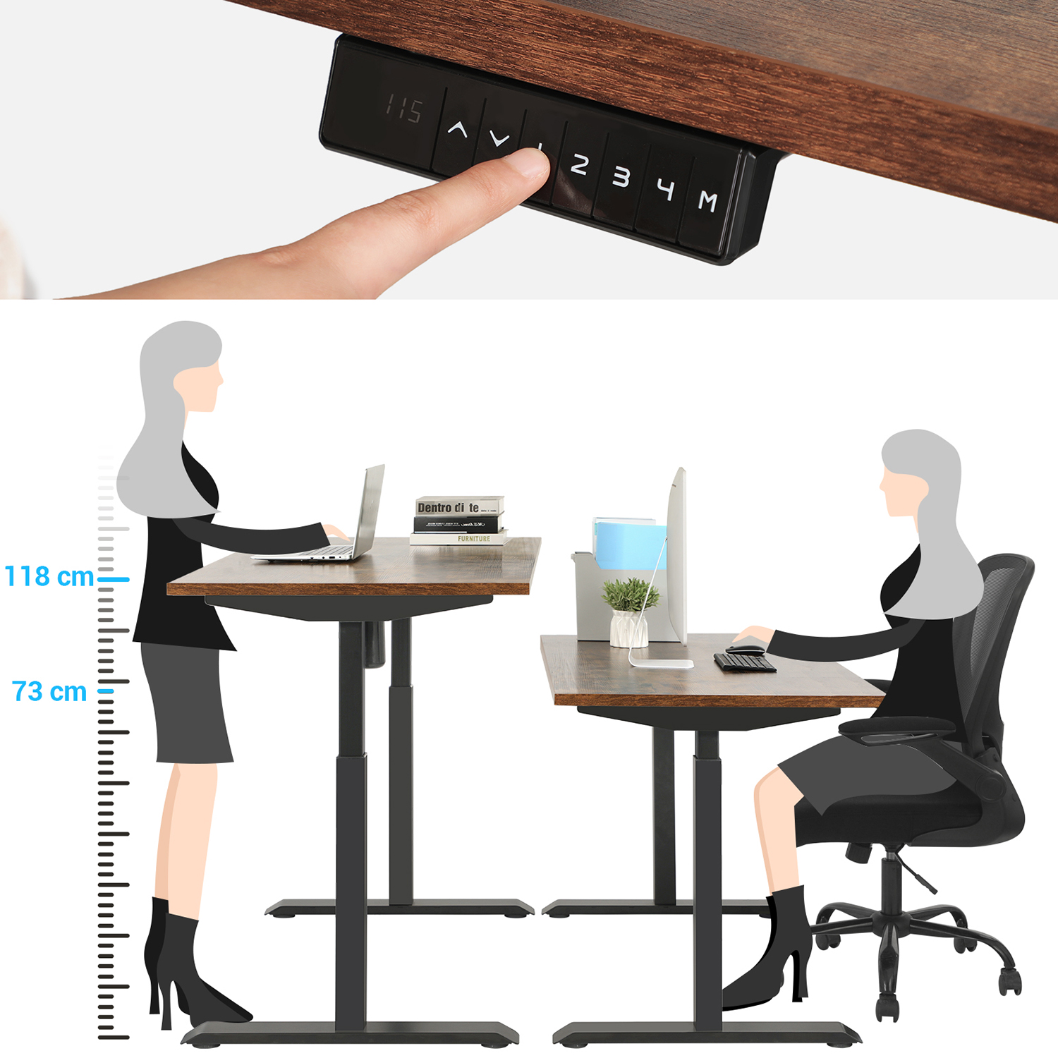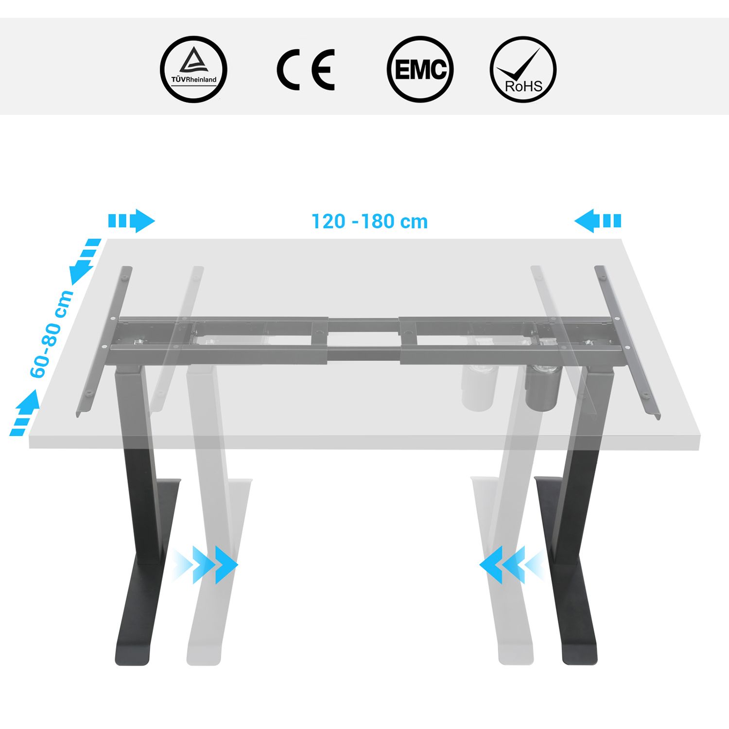 Produktdetaljer: Farve: Sort Materiale: St?l St?jniveau: <50db Justeringshastighed: 25 mm/s Maksimal statisk belastning: 100 kg H?jdejustering: 73-118 cm Egnet til bordplader: 120-180 cm lange, 60-80 cm brede V?gt: 27,5 kgLeveringsomfang:1 x elektrisk skrivebordsstativ (inklusive motor og drivstang)1 x adapter1 x fjernbetjening1 x tilbeh?rspakke1 x vejledning (DE, EN, IT, ES, FR)SONGMICS Bem?rkninger:S?rg for, at bordrammen ikke hindres under l?fte- og s?nkeprocessen. Placer ikke bordet direkte op ad en v?g. Dette produkt er udelukkende beregnet til indend?rs brug. Hold alle elektriske komponenter v?k fra v?sker. Brug kun produktet i maksimalt 2 minutter ad gangen. Efter denne periode b?r bordrammen ikke bev?ges i 18 minutter for at undg? beskadigelse af motoren. Demonter ikke de enkelte dele af dette produkt uden faglig r?dgivning. Placer ikke tunge genstande, der overstiger den maksimale belastning p? 100 kg, p? produktet. Brug ikke stikkontakter eller adaptere med for h?j sp?nding.