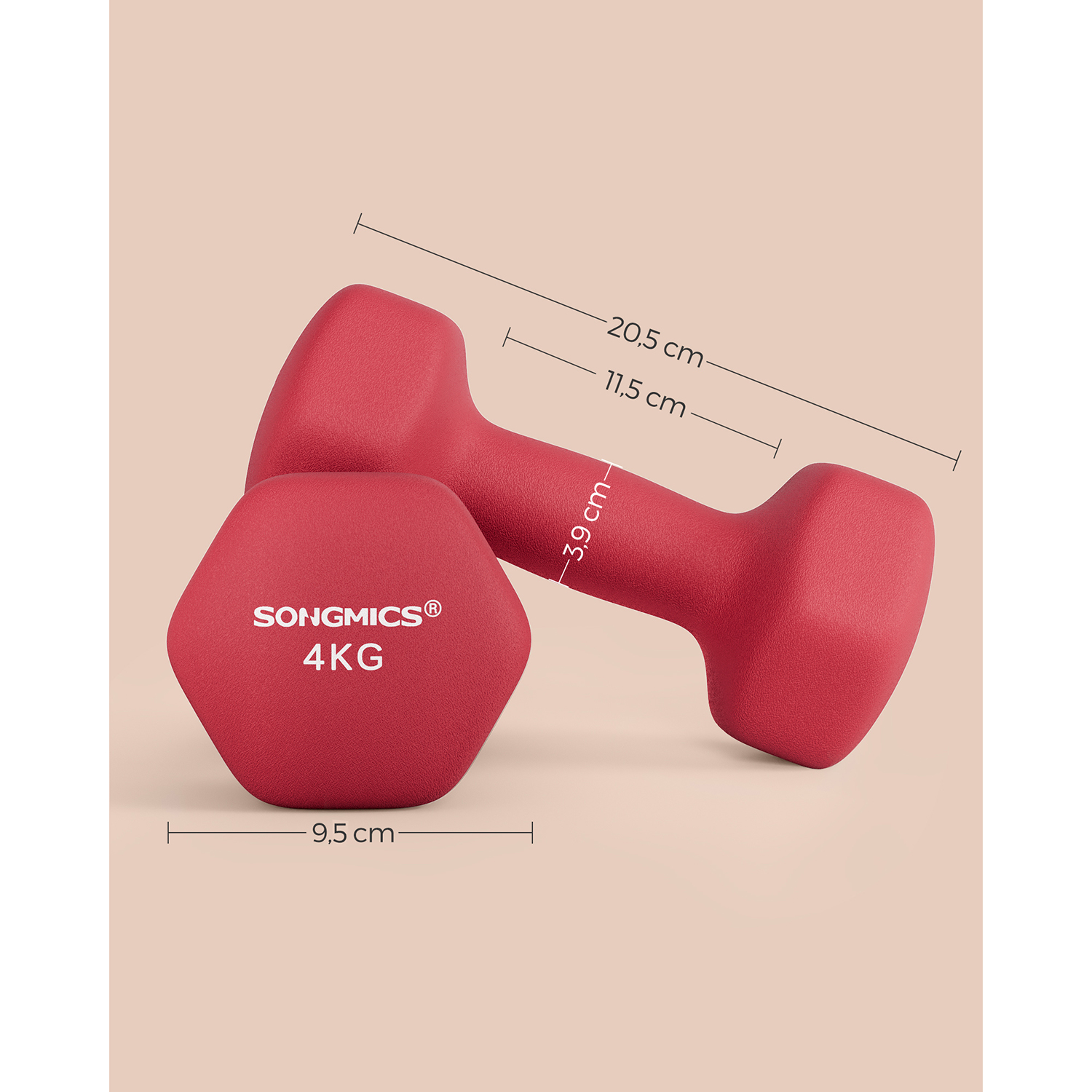 SONGMICS 18 2-pak h?ndv?gte h?ndv?gt gymnastikv?gt vinyl 2 x 1,5 kg SYL63OG, orange, 7 x 15 cm