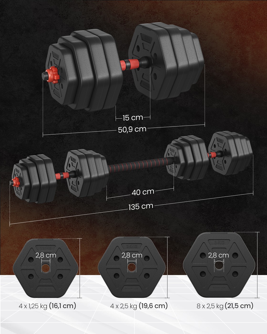 SONGMICS Hantels?t, h?ndv?gte med forbindelsesstang, sekskantet, h?ndv?gtss?t, 10 kg, 20 kg, 30 kg, til tr?ning, fitness, v?gtl?ftning derhjemme, fitnesscenter