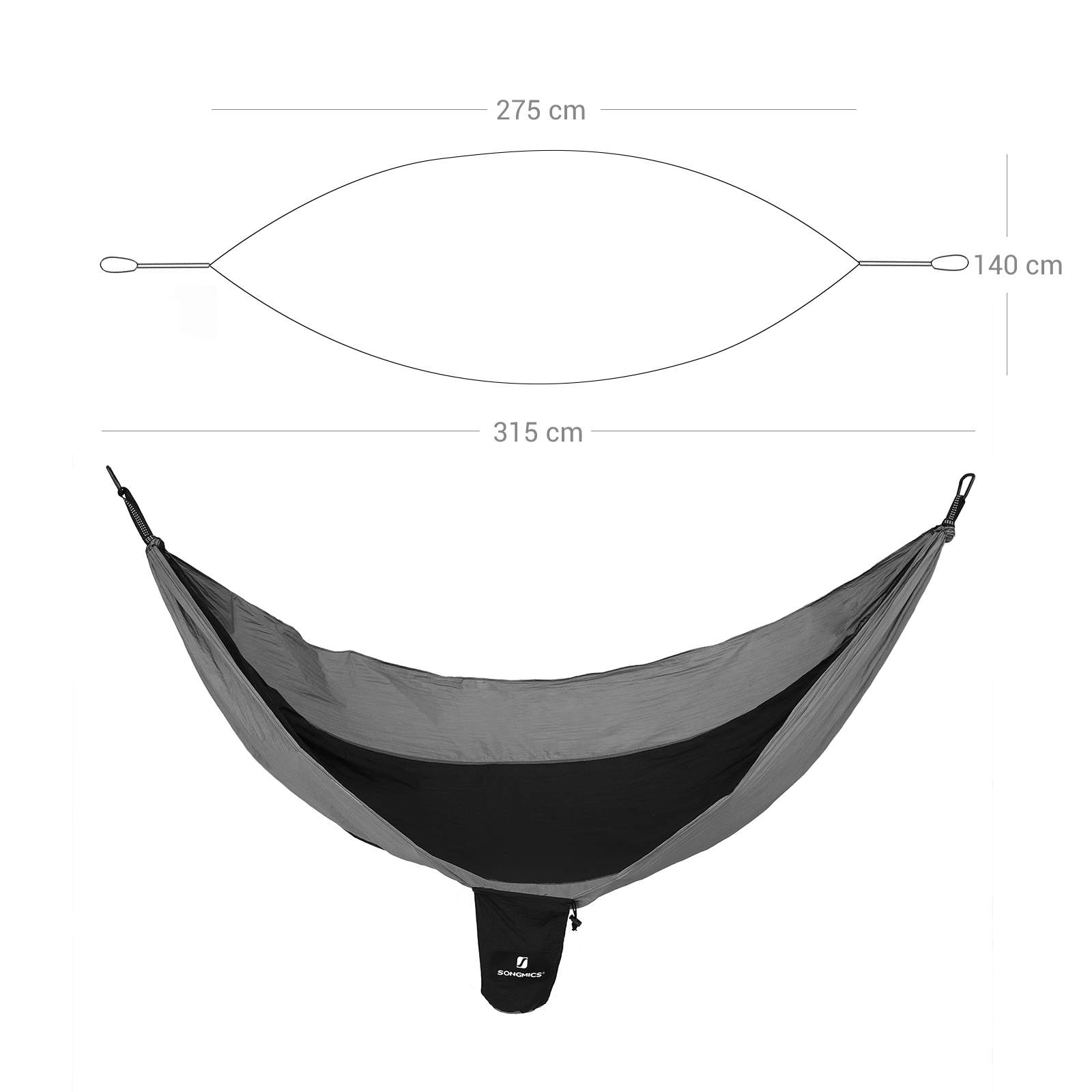 Til afslappende stunder H?ngek?jen til 2 personer er perfekt til afslappende stunder p? camping eller i haven. For dem, der er ivrige efter at komme afsted, tage p? udflugter i skoven eller i bjergene, vil denne lette og hurtigt sammenpakkede h?ngek?je v?re en perfekt ledsager, da den kun tager meget lidt plads og giver dig mulighed for at slappe af p? et ?jeblik. Robust og holdbar H?ngek?je fremstillet af 210T nylon, bl?d og luftgennemtr?ngelig. Den er nem at reng?re og t?rrer hurtigt, hvilket er perfekt p? rejser. Farven holder sig ogs? l?nge, s? du kan have gl?de af h?ngek?jen i lang tid. Produktdetaljer: – Farve: olivengr?n/orange – Materiale: 210T nylon – Produktm?l: 275 x 140 cm (L x B) – Emballagem?l: 20 x 12 cm (H x ?) – V?gt: 0,68 kg Leveringsomfang: – 1 x h?ngek?je – 2 x tunge stropper – 2 x karabinhager SONGMICS Bem?rkninger: – B?rn b?r lege under opsyn af voksne og altid v?re opm?rksomme p? sikkerheden. – S?rg for, at der ikke er skarpe genstande under h?ngek?jen, inden du bruger den. – Farverne p? billederne kan afvige fra de faktiske farver afh?ngigt af sk?rmindstillingerne. – Kontroller omhyggeligt h?ngek?jens og fastg?relsesremmenes tilstand inden hver brug.