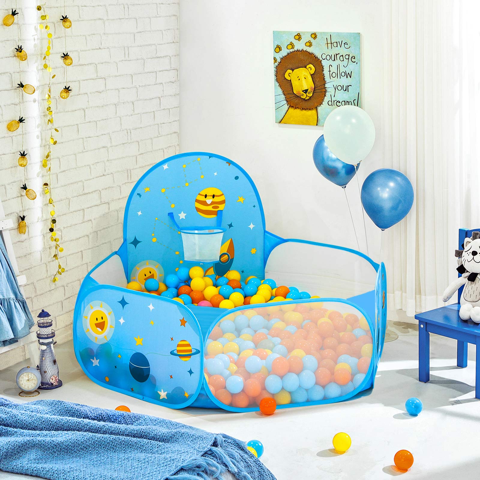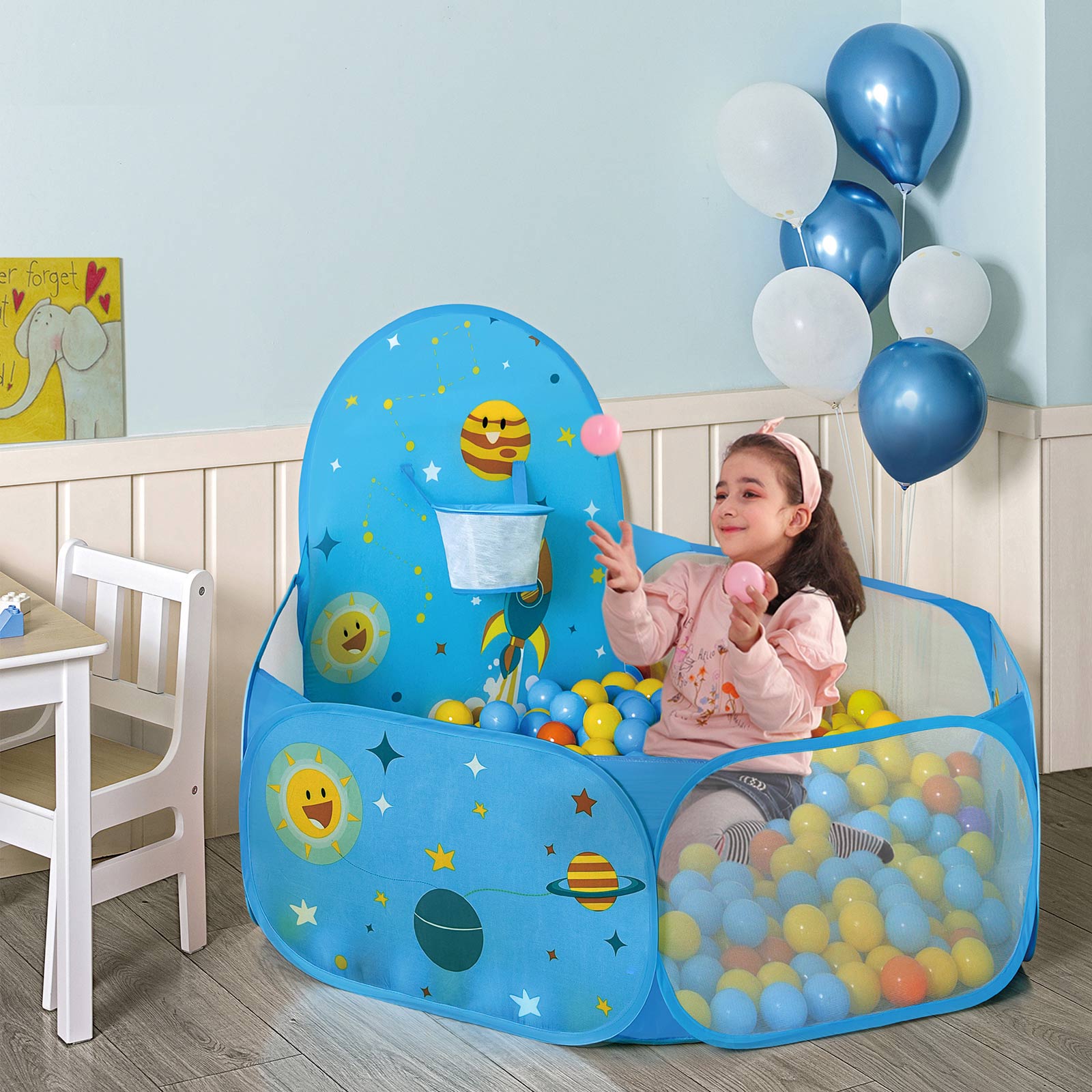 Holdbare materialer: B?rn t?nker normalt ikke over holdbarheden af deres leget?j, men det g?r du som for?lder. Du kan v?re rolig, for denne boldparadis fra SONGMICS er lavet af slidst?rkt polyester og kan uden problemer modst? daglig brug af sm?b?rn. Den perfekte gave: Leder du stadig efter den perfekte gave til en kommende babyfest eller b?rnef?dselsdag? Vil du finde et leget?j, der kan underholde dine b?rneb?rn? Denne boldpool fra SONGMICS er den perfekte gave til alle, der er p? farten med et lille barn. Her kan b?rnene udfolde deres fantasi, mens du i ro og mag kan nyde en kop kaffe. Til s?de sm? guldklumper: Dette foldbare legetelt er en sand gl?desbombe. Det leveres i en praktisk b?retaske, s? du nemt kan s?tte det sjove boldparadis op hvor som helst og tage det med igen. Uanset om det er i din egen stue, hos svigerfor?ldrene eller hos venner ? denne boldpool vil give dit barn gl?de overalt.