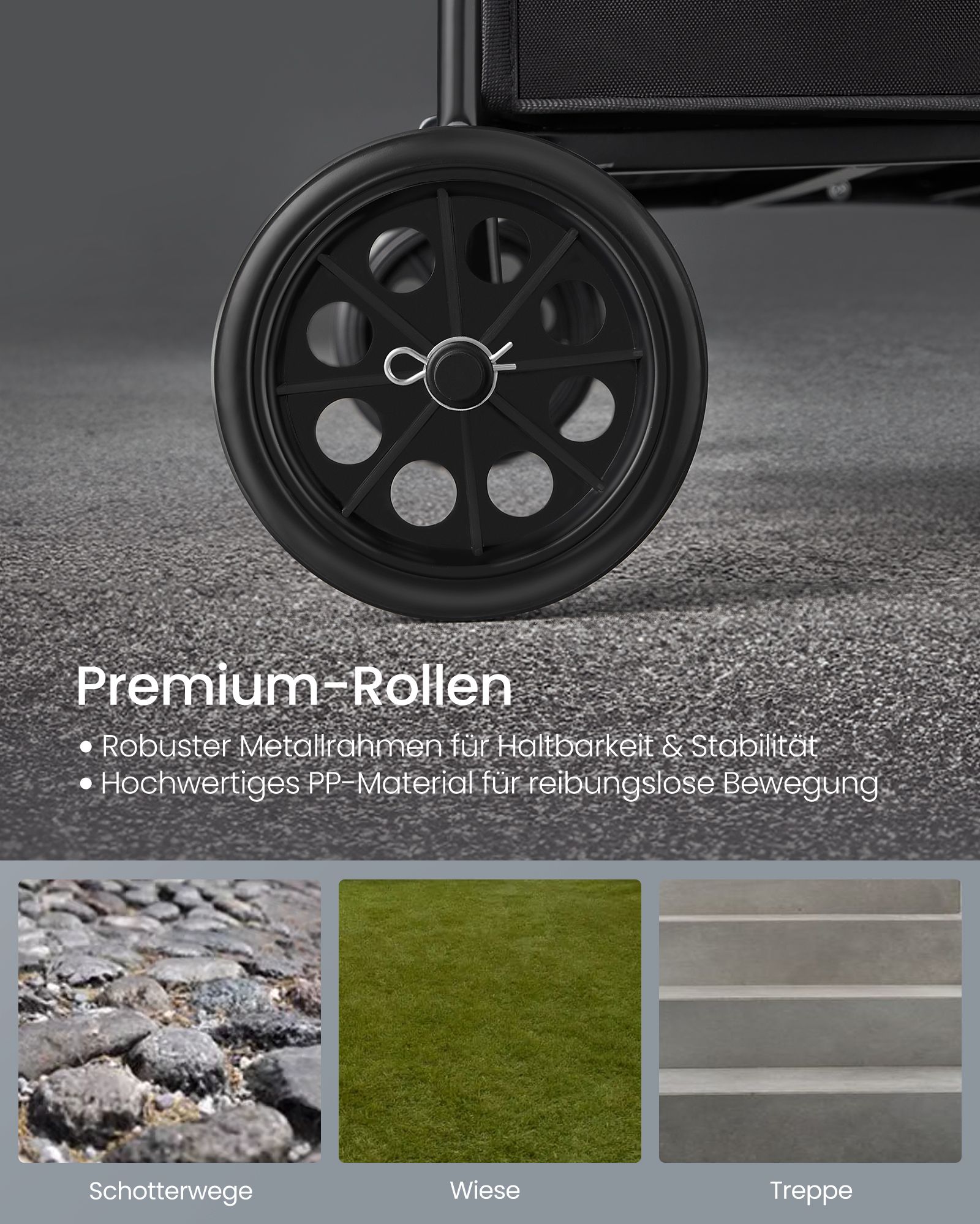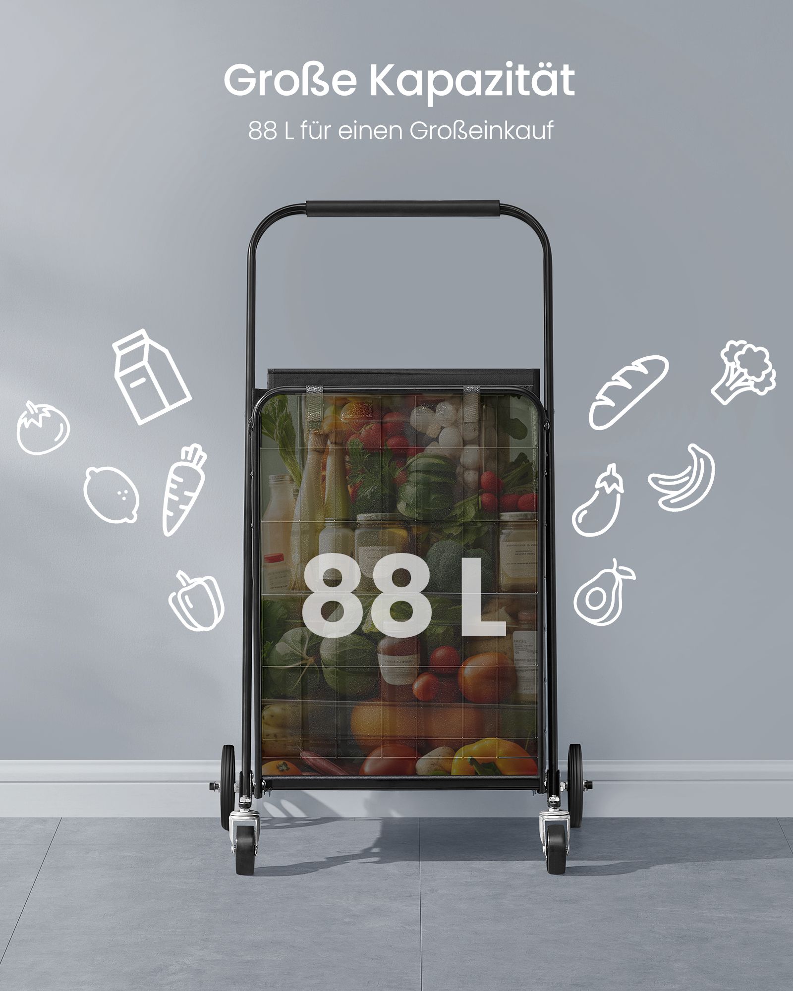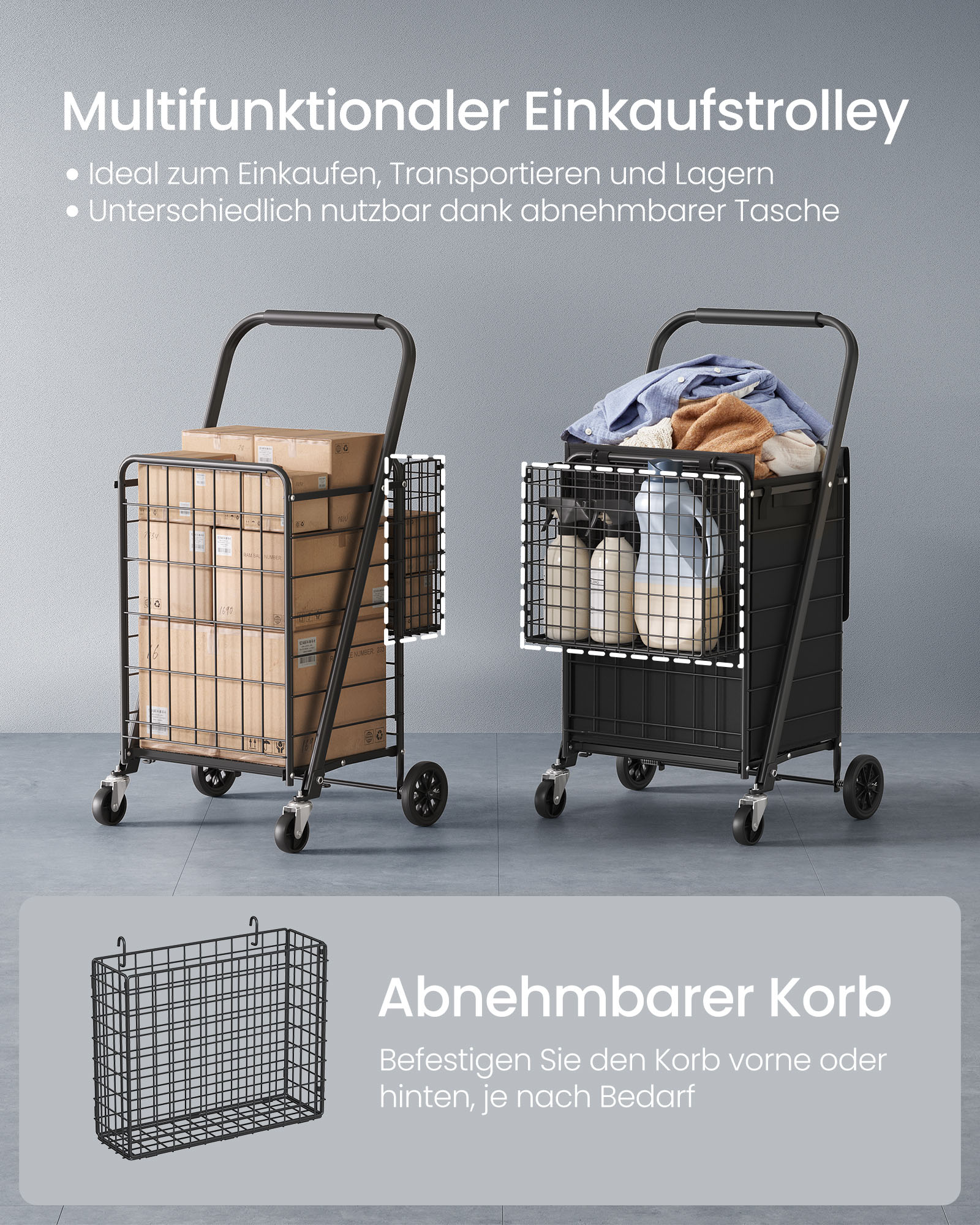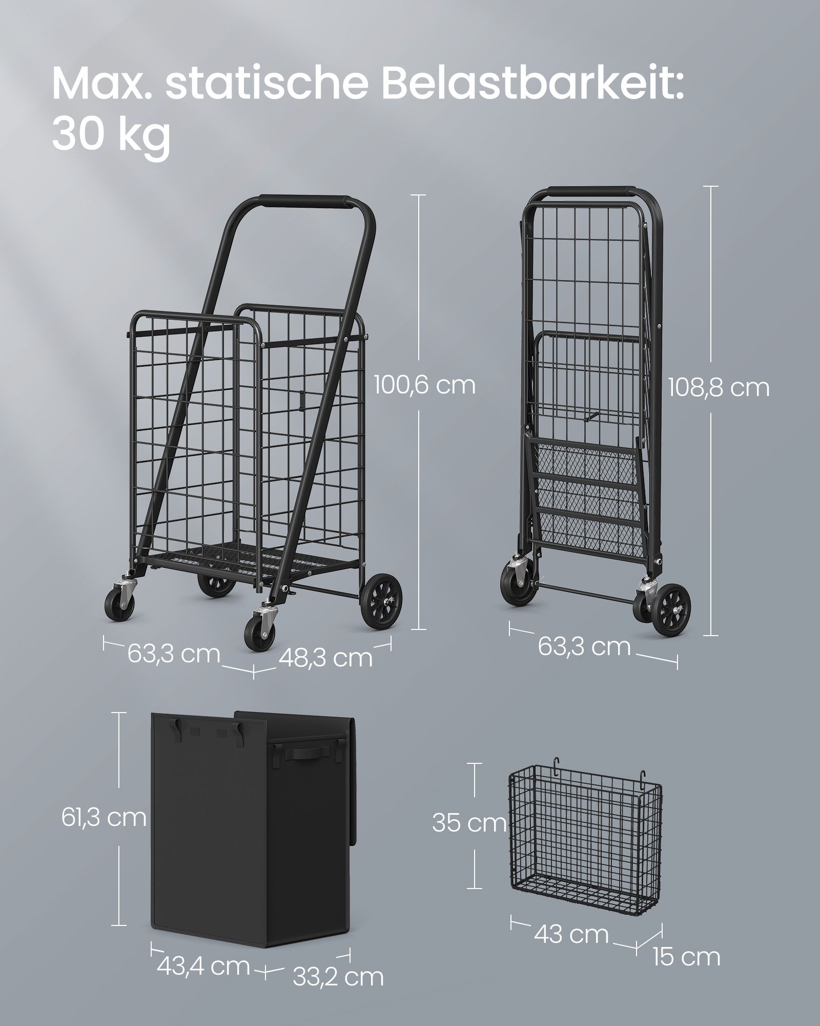 SONGMICS indk?bsvogn, sammenklappelig, trolley, indk?bsvogn, 360? drejelige hjul, taske i Oxford-stof, aftagelig kurv, picnic, vasket?j, bl?ksort KST012B01