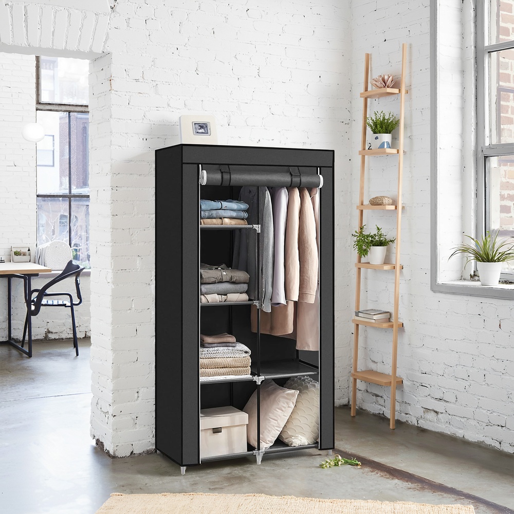 Er du altid irriteret over t?j, der ligger og flyder overalt? Og har du aldrig plads nok til dine ting, n?r du skifter garderobe efter s?sonen? Songmics kl?deskab er den perfekte l?sning for dig, s? du kan f? orden i dit hjem igen. Desuden har Songmics stofgarderobeskab et enkelt udseende, og designet passer godt ind i dit v?relse eller kontor. Det anvendte materiale er af god kvalitet, robust, milj?venligt og ikke sundhedsskadeligt. Hos Songmics k?ber du varer af h?j kvalitet med et godt pris/ydelsesforhold. Bem?rkninger: – Hvis r?rene er sv?re at s?tte i plastikforbindelsesstykkerne, kan du pr?ve at dyppe plastikforbindelsesstykkerne i varmt vand. – Produktet skal beskyttes mod direkte sollys, da det ellers kan forkorte levetiden. Opbevar det k?ligt og t?rt for at undg? skimmel. – Undg? at pakke produktet ud og samle det med magt. – Hvis du st?der p? problemer under opbygningen, bedes du kontakte vores kundeservice, vi hj?lper dig gerne med at l?se problemerne eller tilbyder dig gerne gratis reservedele. – Betr?k fremstillet af fleece-stof kan ikke vaskes med vand. Produktdetaljer:- Farve: sort – M?l: ca. 88 x 45 x 170 cm – Materiale: Betr?k: Vliesstof, st?lr?r (? 15 mm) – Emballagem?l: 58 x 28 x 9 cm – V?gt: 2,6 kg Leveringsomfang: – 1 x stofgarderobe