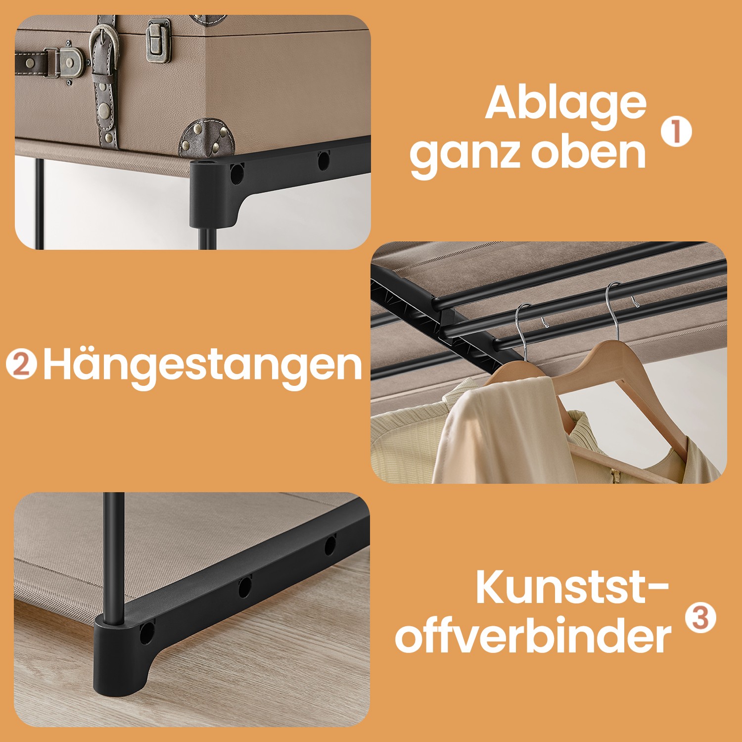 SONGMICS garderobeskab, t?jstativ, fritst?ende garderobe, med t?jst?nger, garderobestativ, stofhylder, metalramme, 43 x 182 x 182 cm, sort RYG037B02