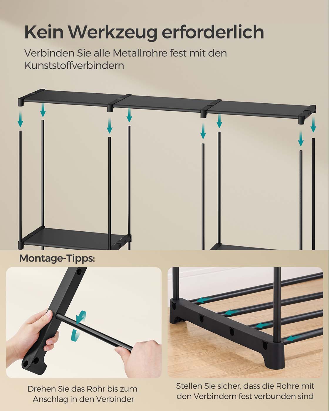 SONGMICS garderobeskab, fritst?ende garderobe, sammenklappelig, t?jstativ med t?jst?nger, garderobestativ, opbevaring, p?kl?dningsv?relse, sovev?relse, stabil, 112 x 43 x 165 cm, sort RYG24BK