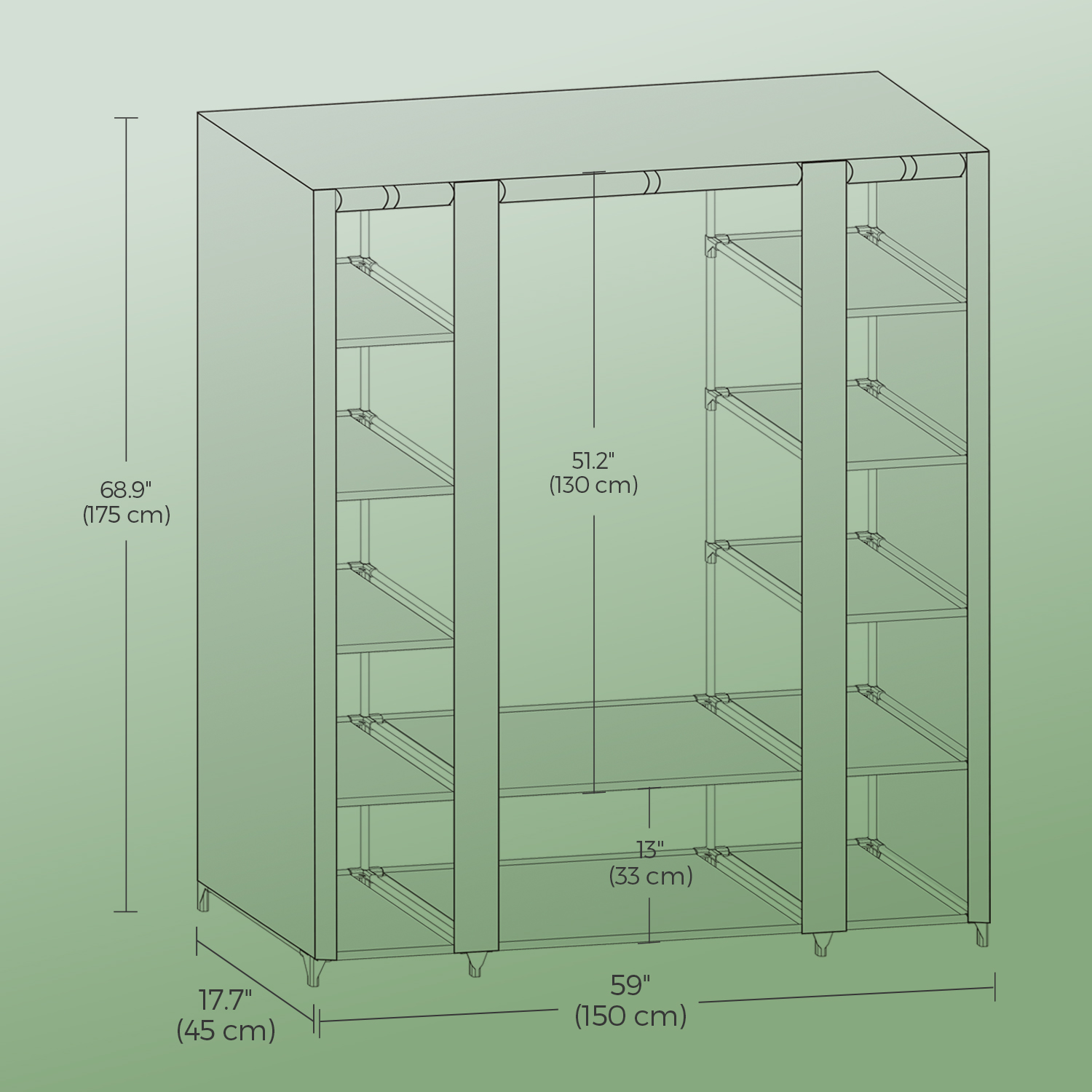 – St?rrelse: 45 x 150 x 175 cm (D x B x H)