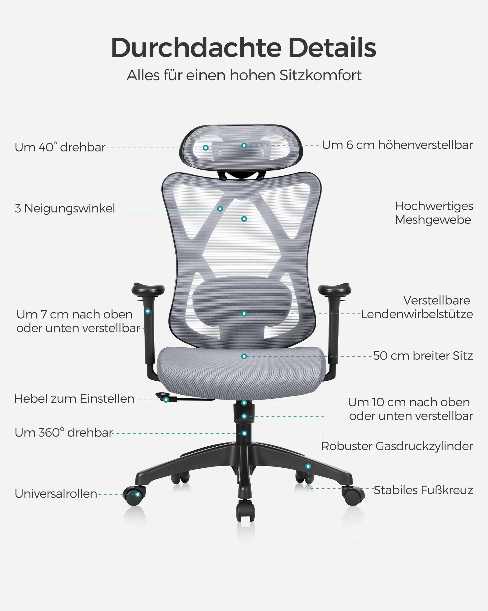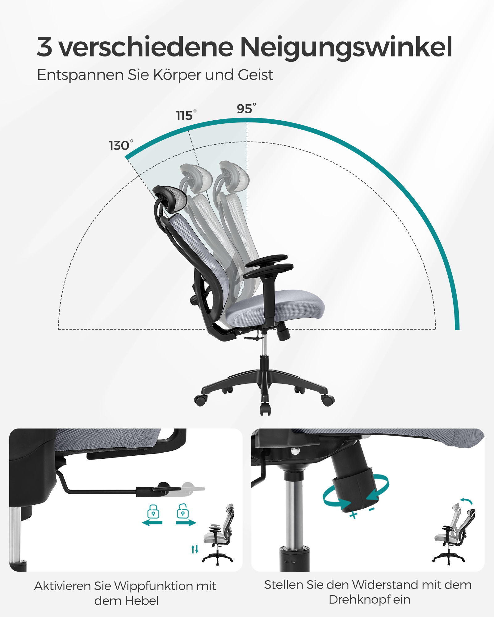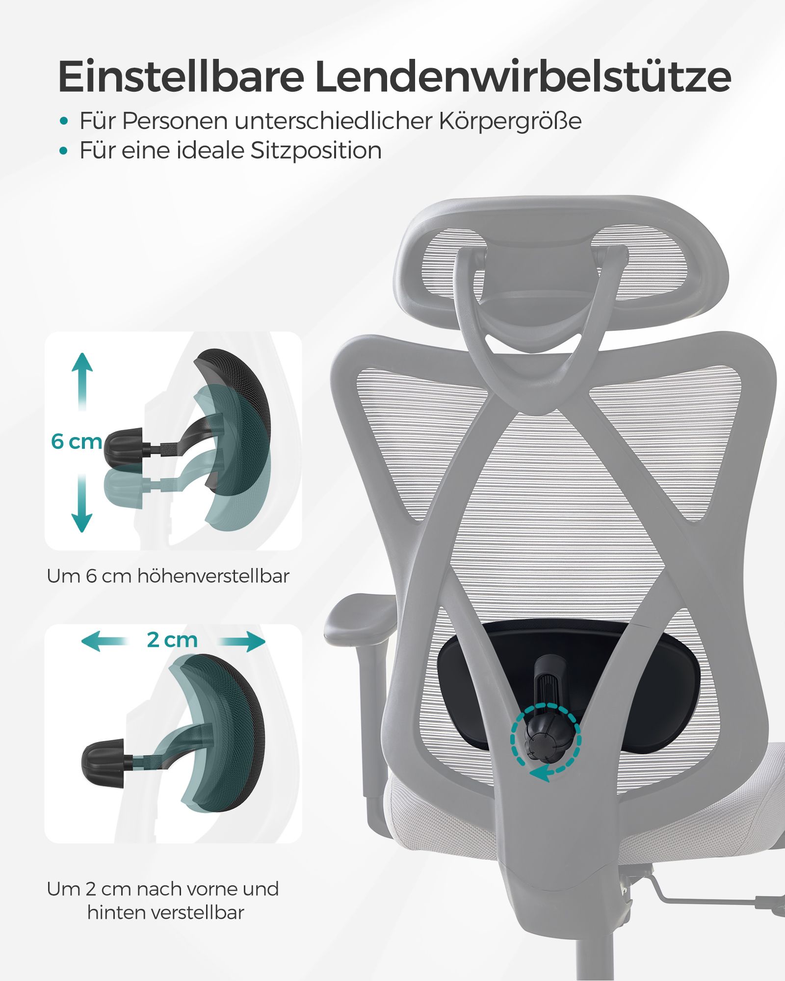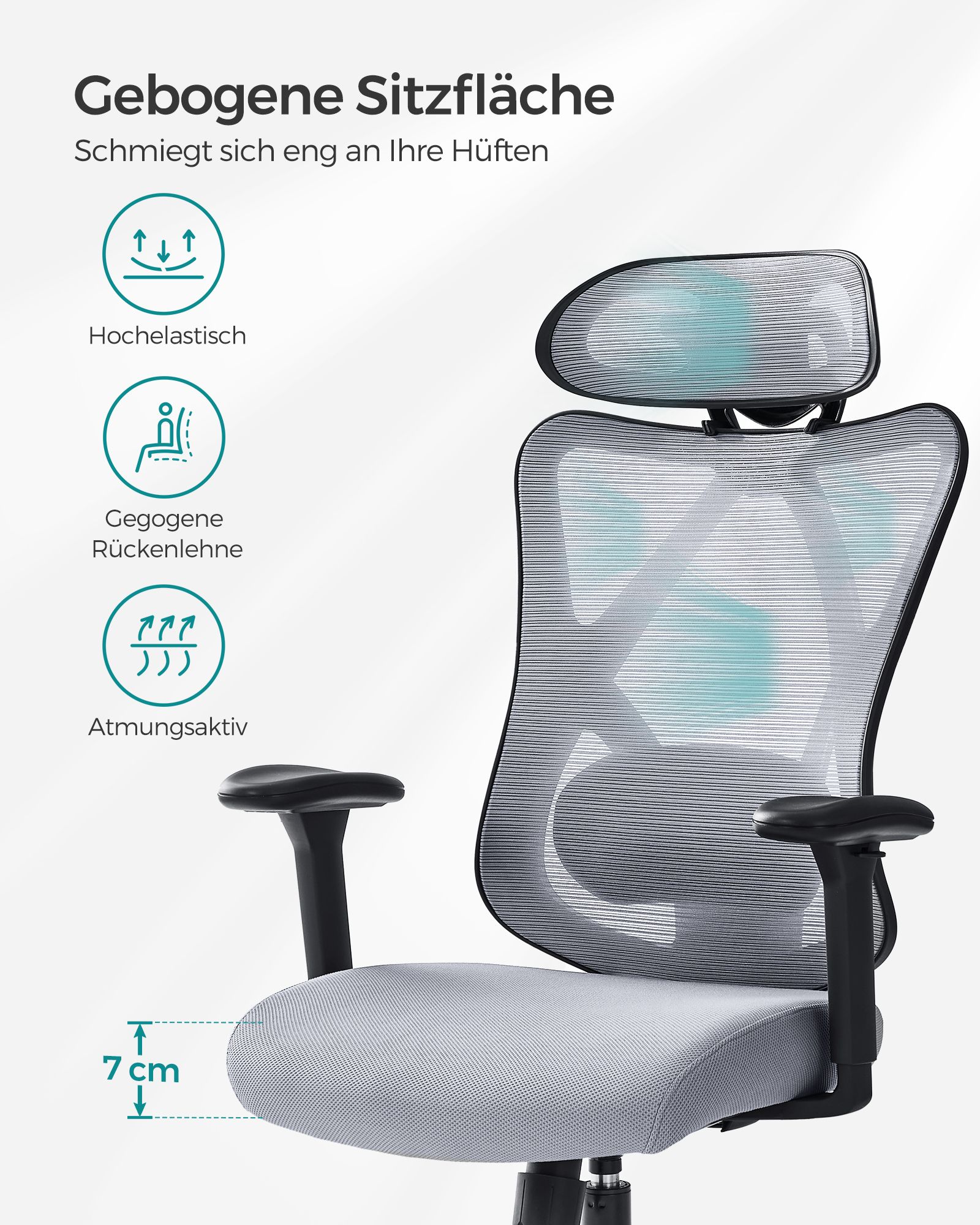 SONGMICS kontorstol, ergonomisk skrivebordsstol, computerstol, netstol, justerbar l?ndest?tte og nakkest?tte, belastbar op til 150 kg, h?jdejusterbar, sort OBN063B01