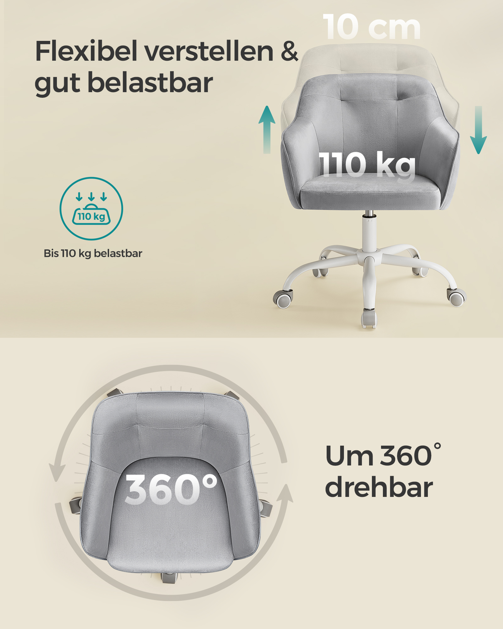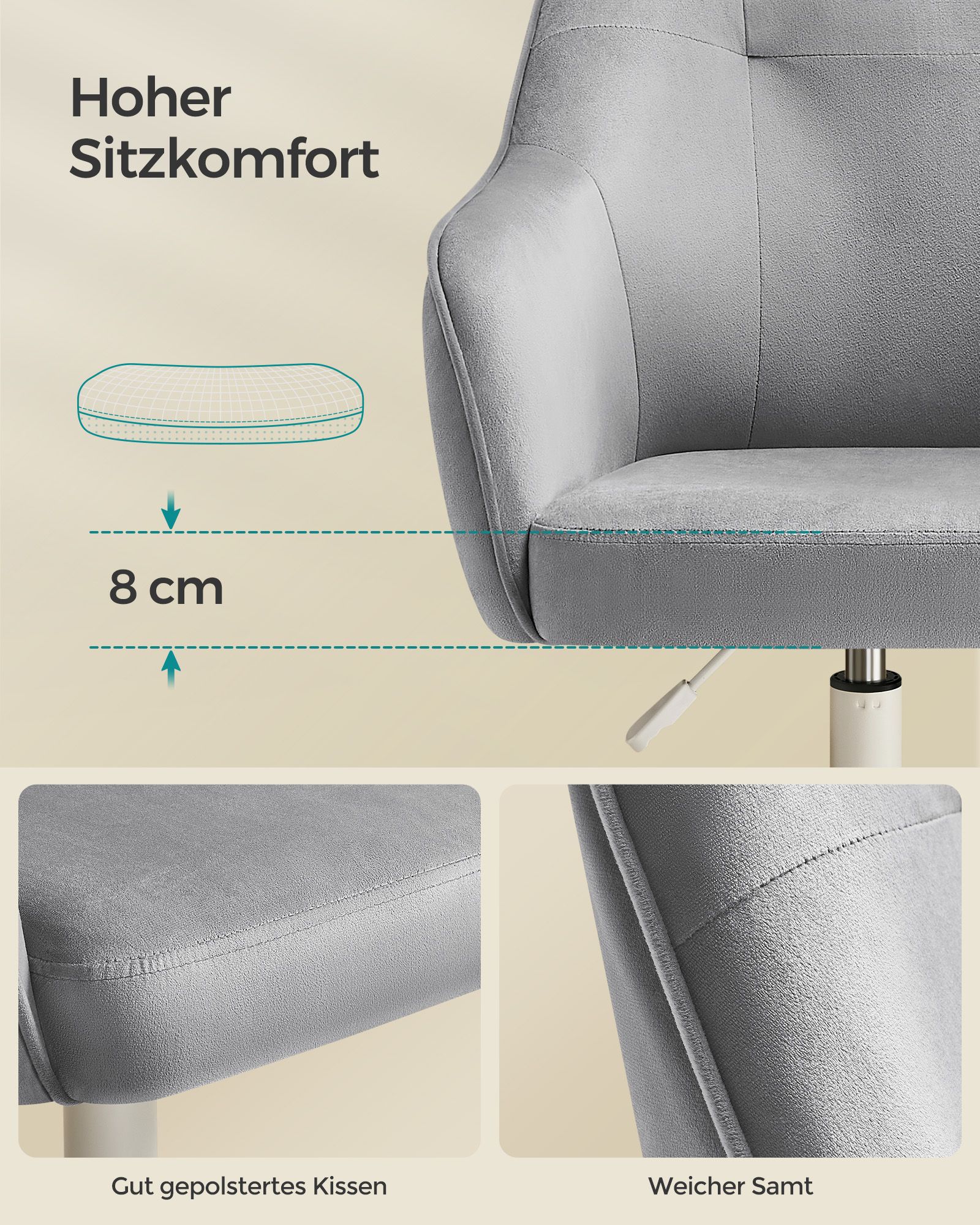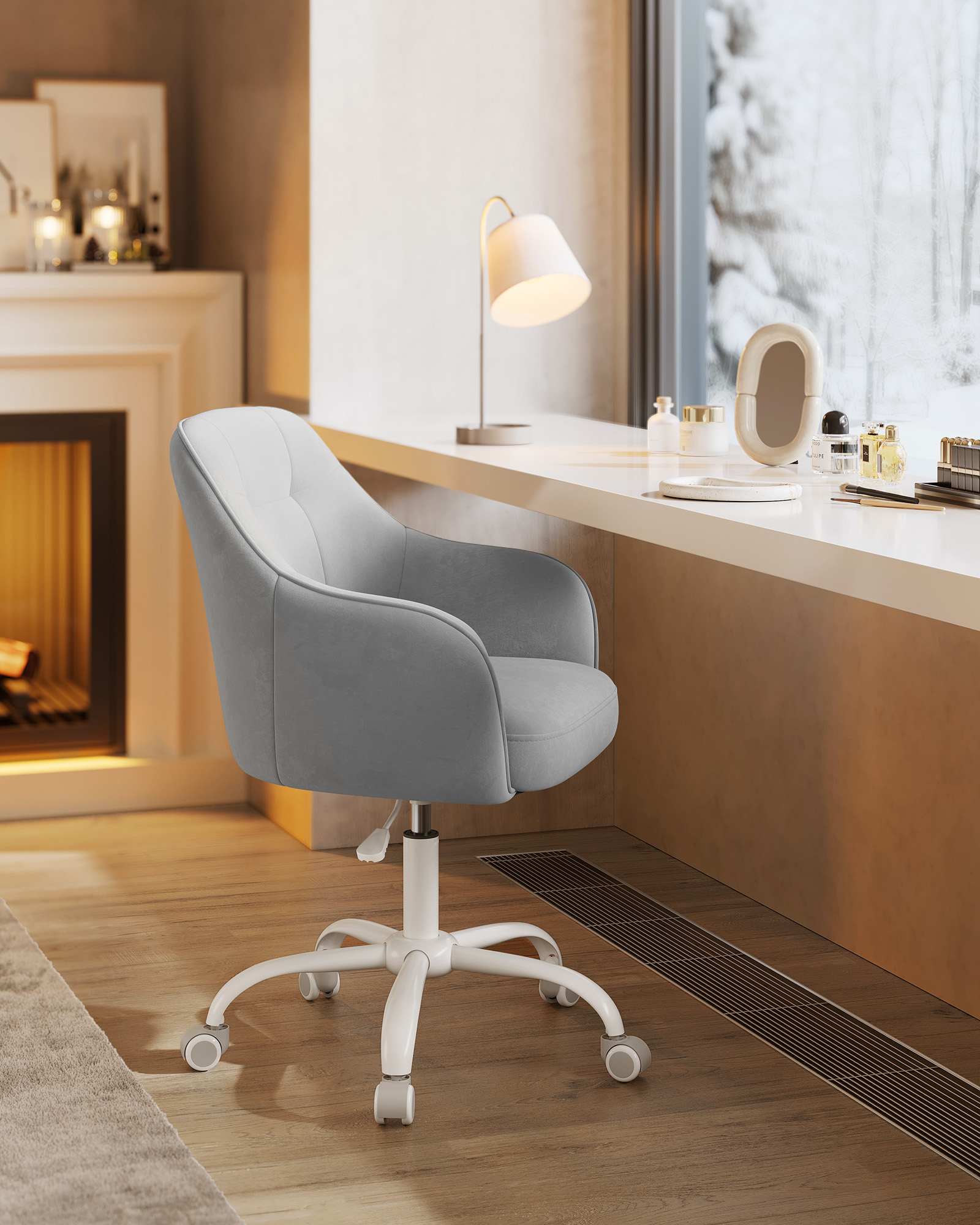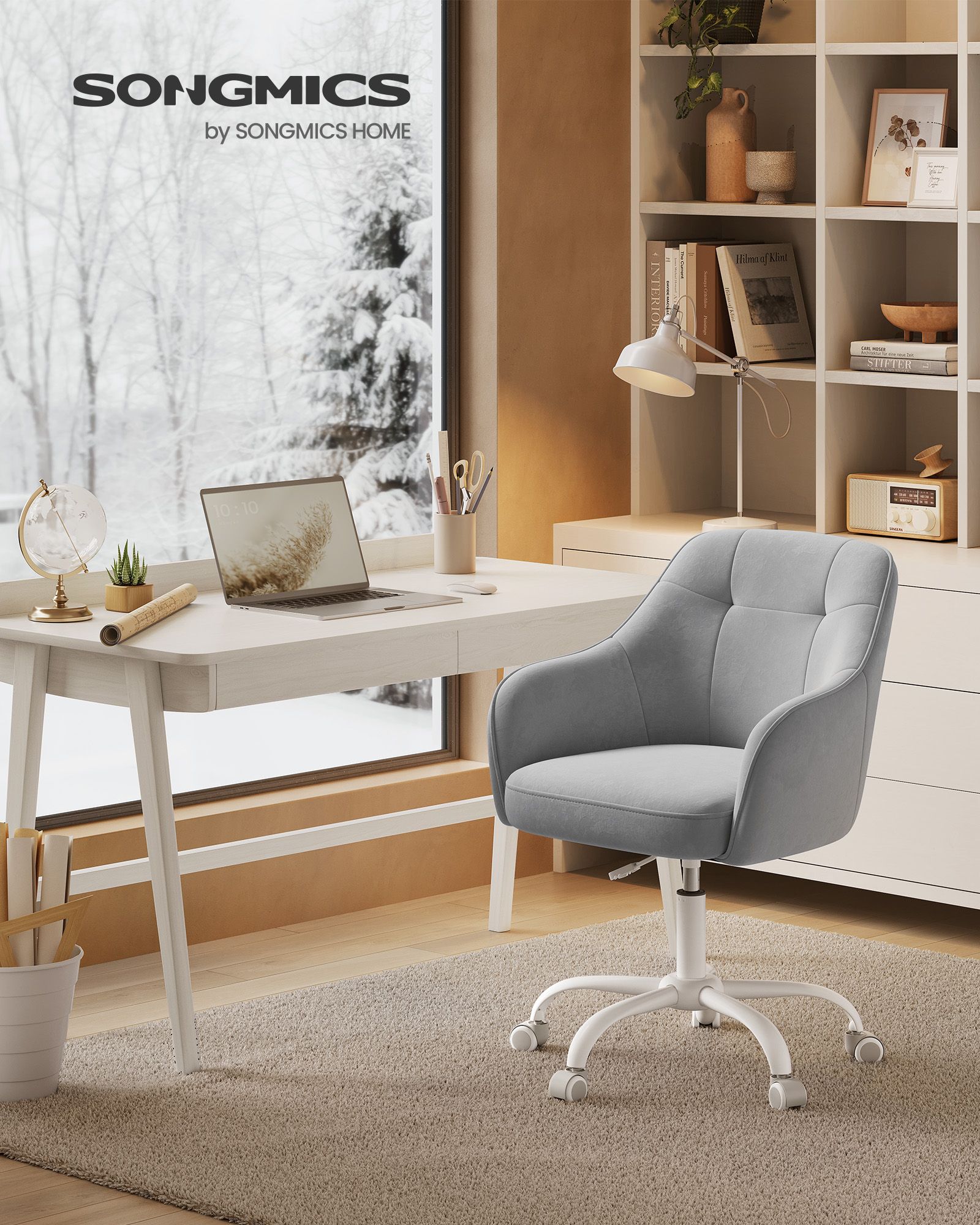 SONGMICS kontorstol, komfortabel skrivebordsstol, h?jdejusterbar computerstol, belastbar op til 120 kg, st?lstel, imiteret l?rred, ?ndbar, hjemmekontor, kontor, gr? OBG019G01