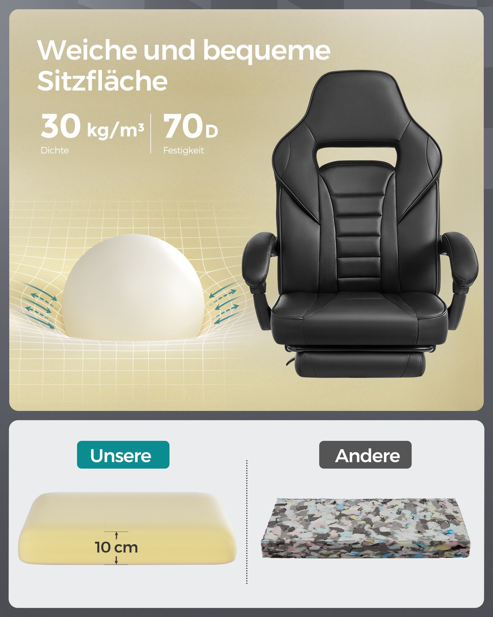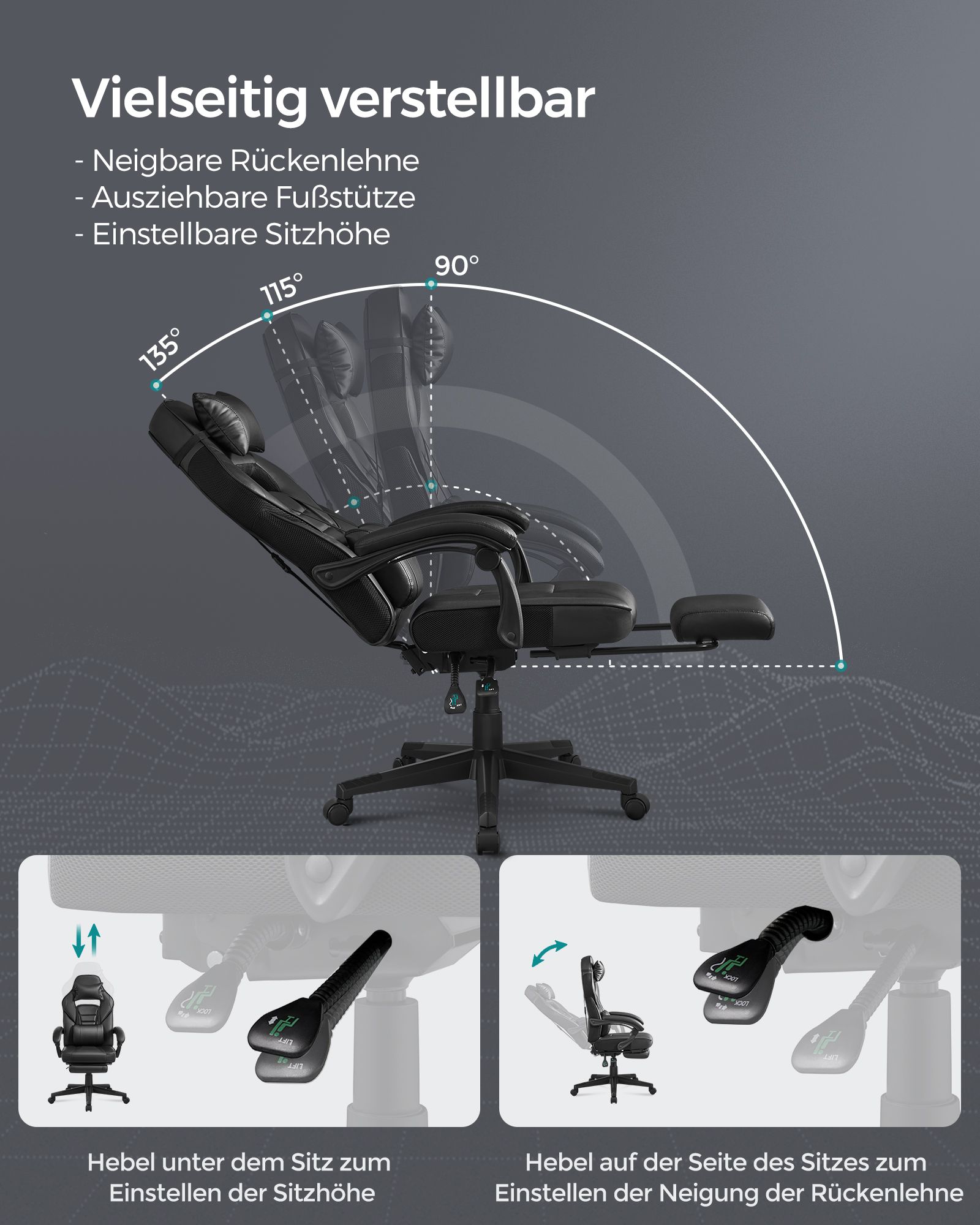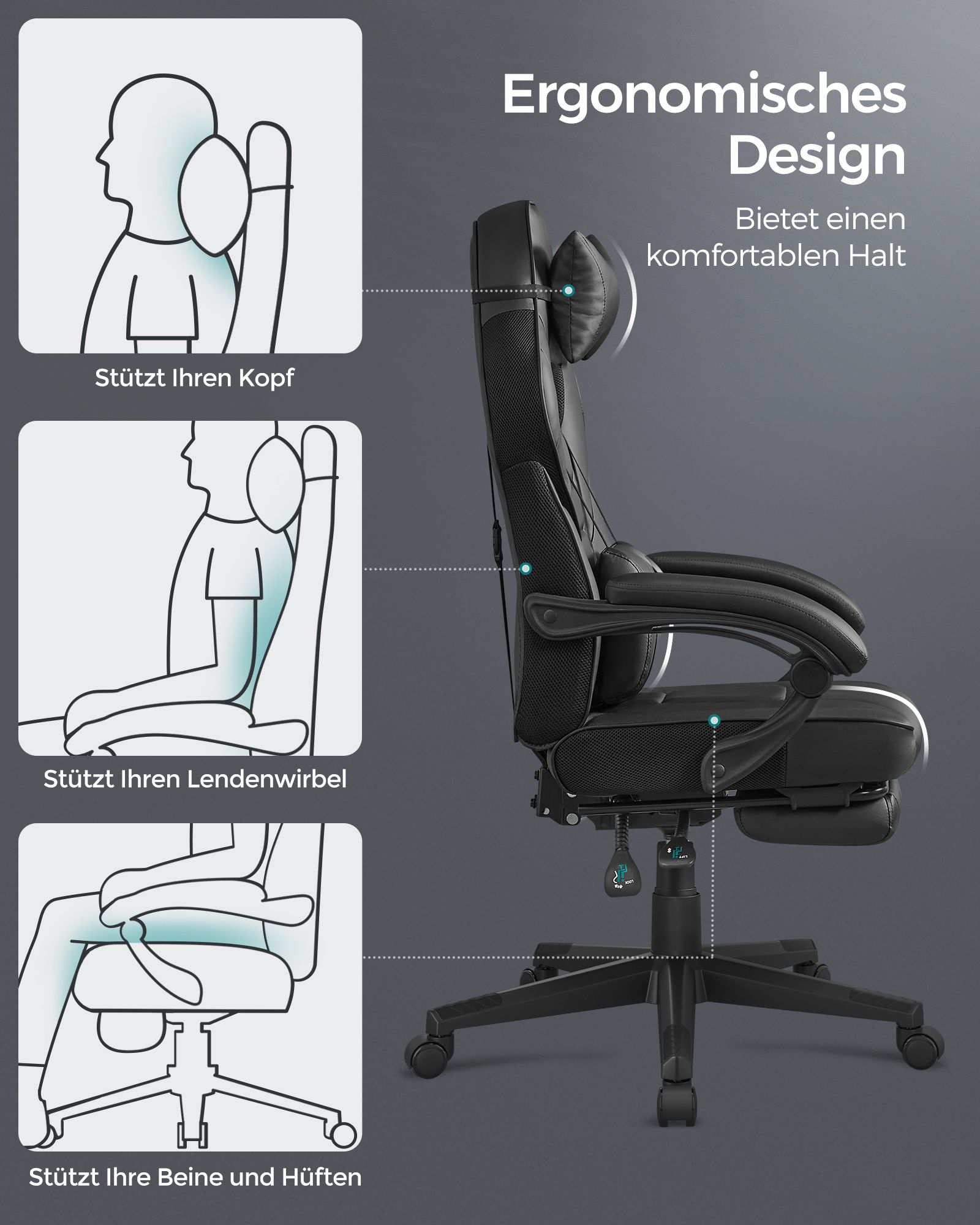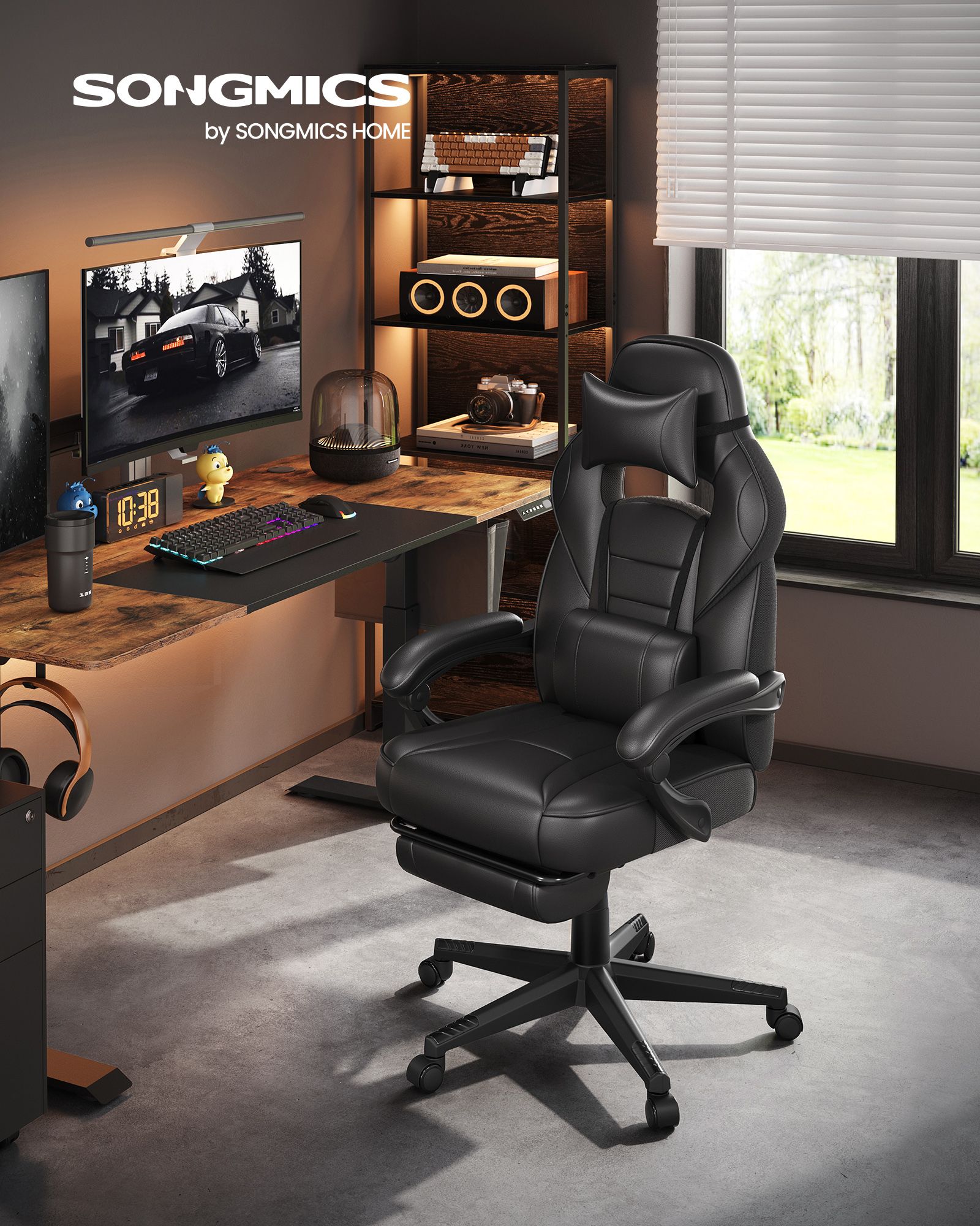 SONGMICS Gamingstol, skrivebordsstol med fodst?tte, kontorstol med nakkest?tte og l?ndepude, h?jdejusterbar, ergonomisk, 90-135? h?ldningsvinkel, belastbar op til 150 kg, sort-r?d OBG73BRV1