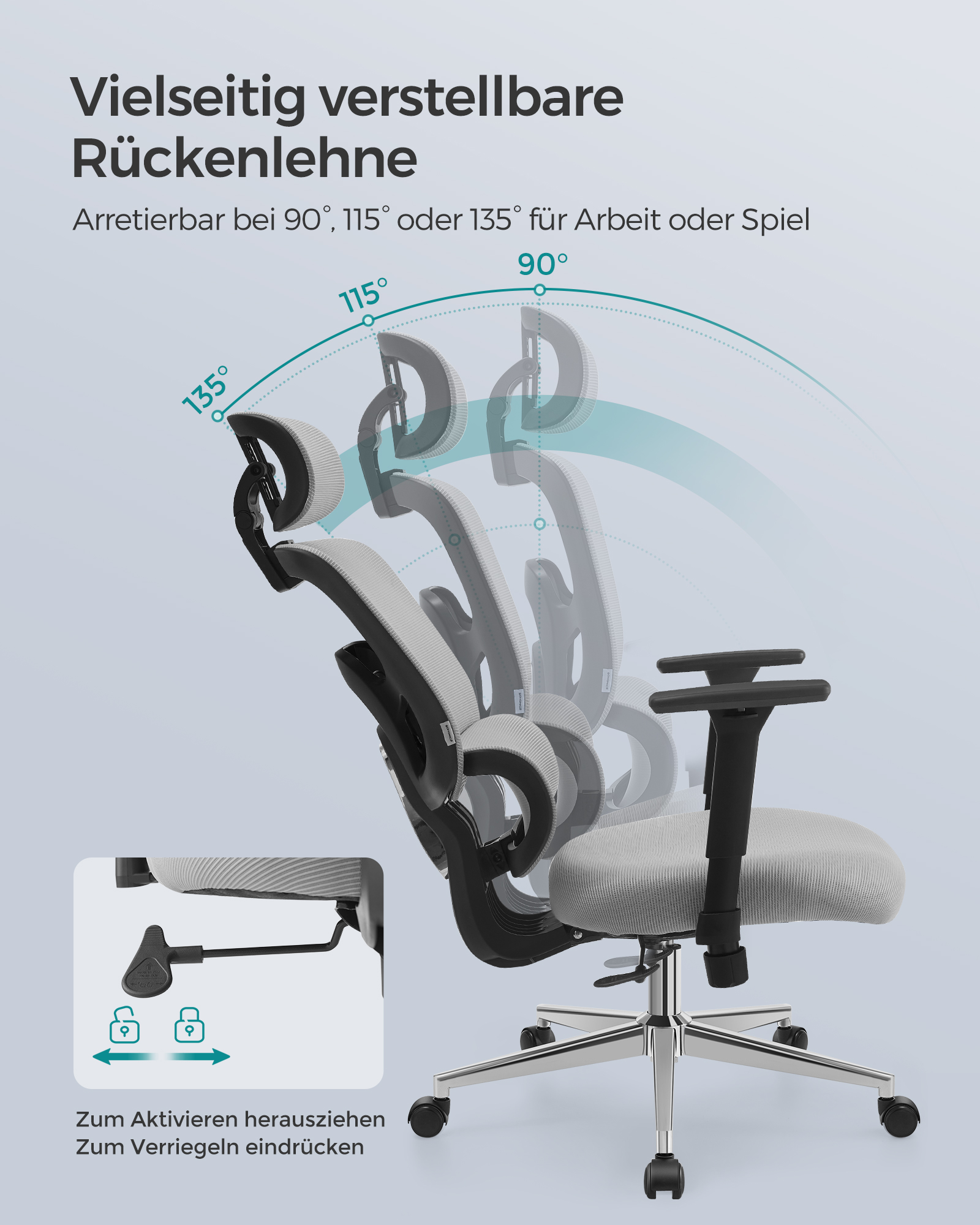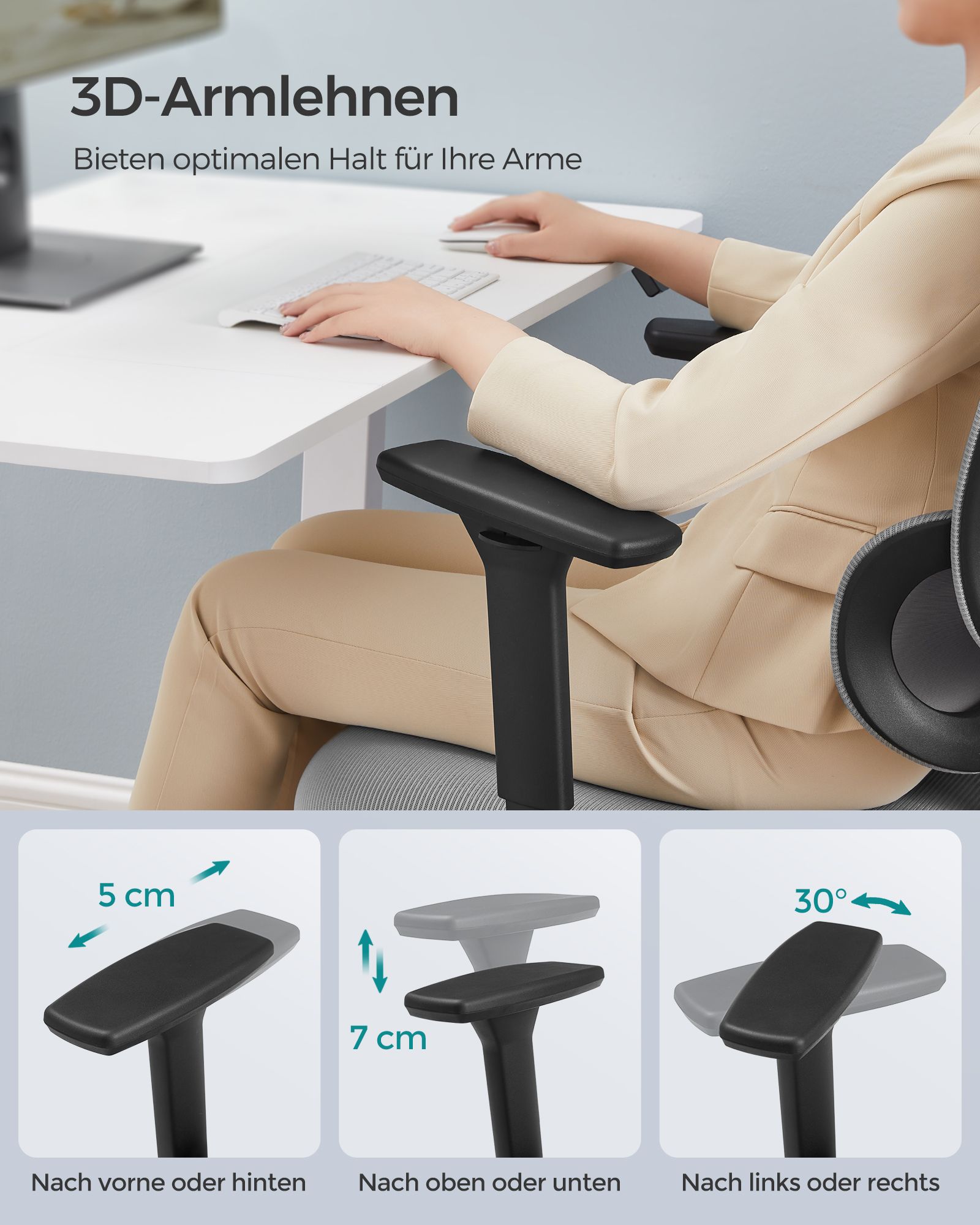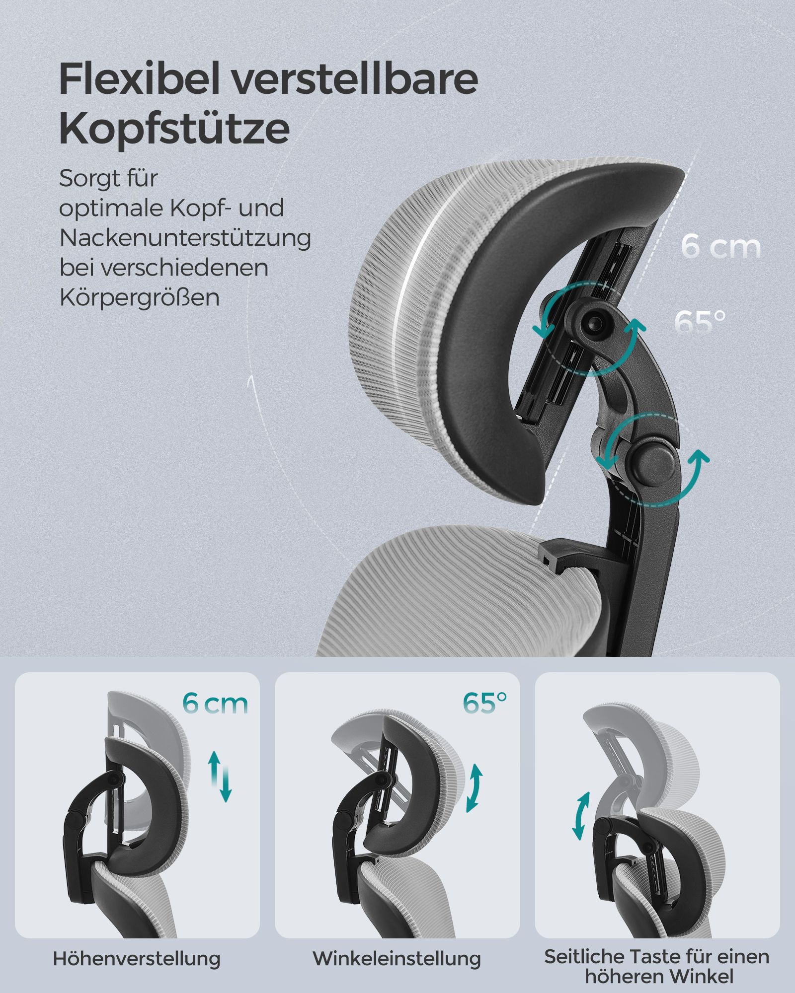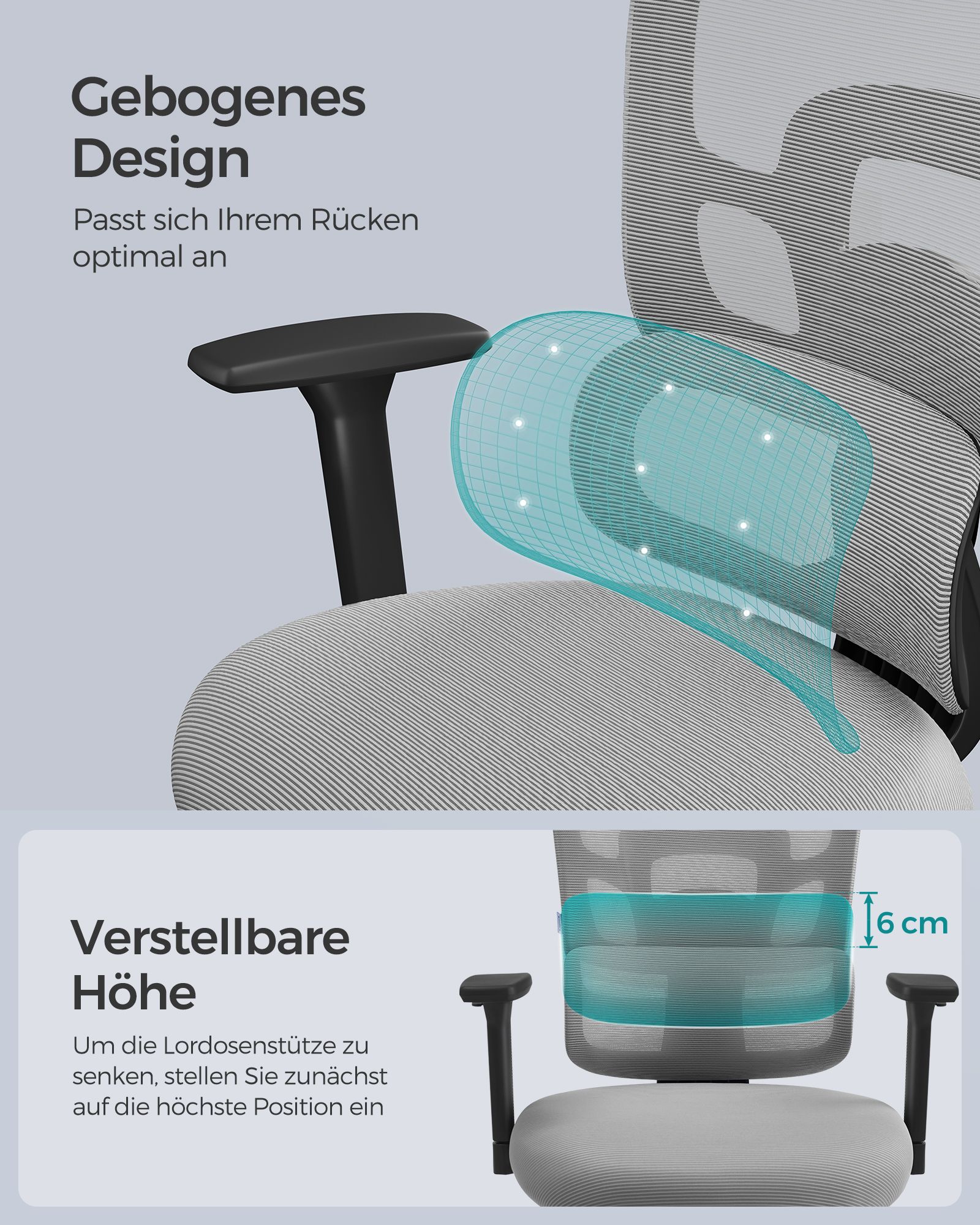SONGMICS kontorstol, ergonomisk skrivebordsstol, h?j rygl?n, computerstol, h?jdejusterbar l?ndest?tte, justerbar nakkest?tte, arml?n, hjemmekontor