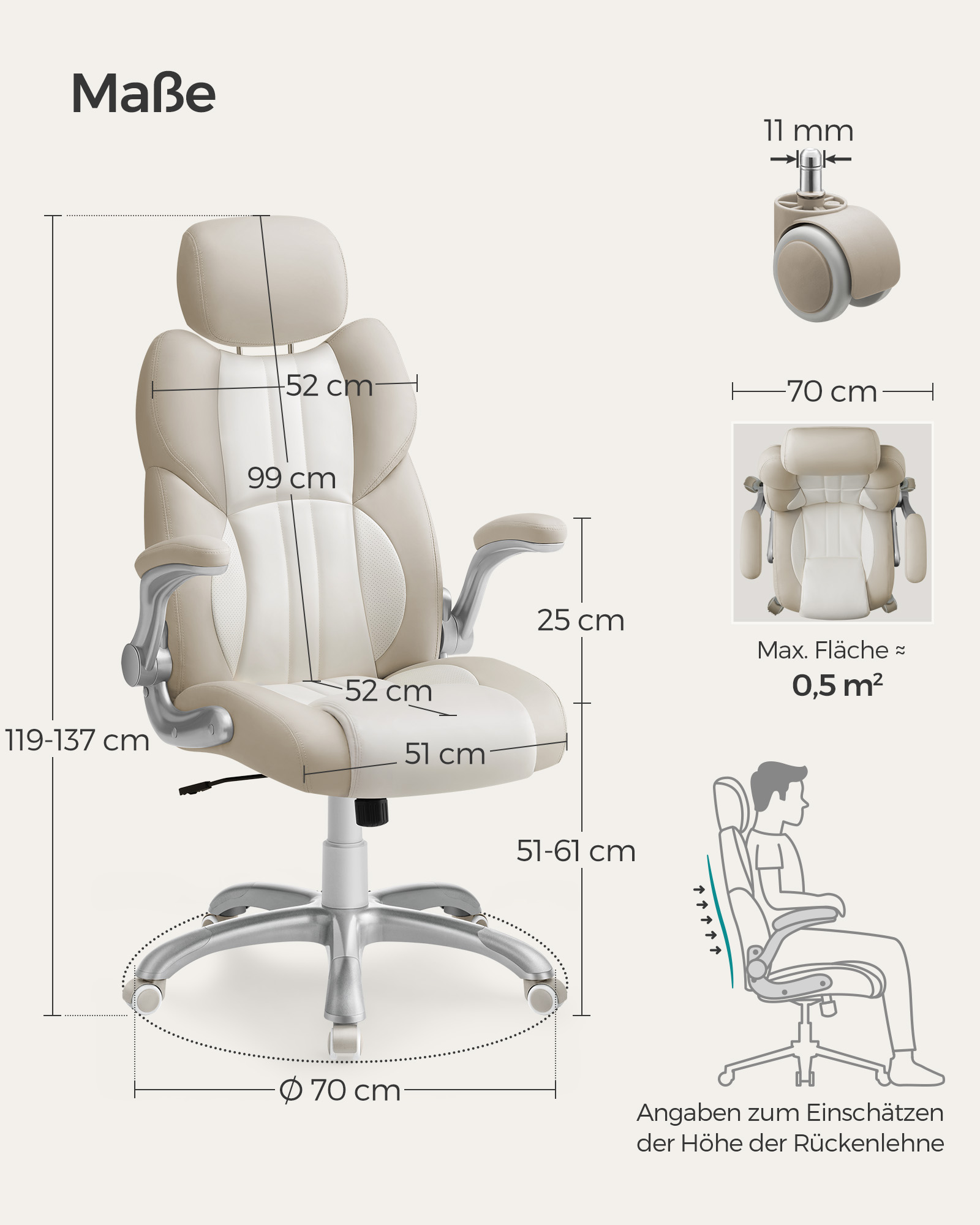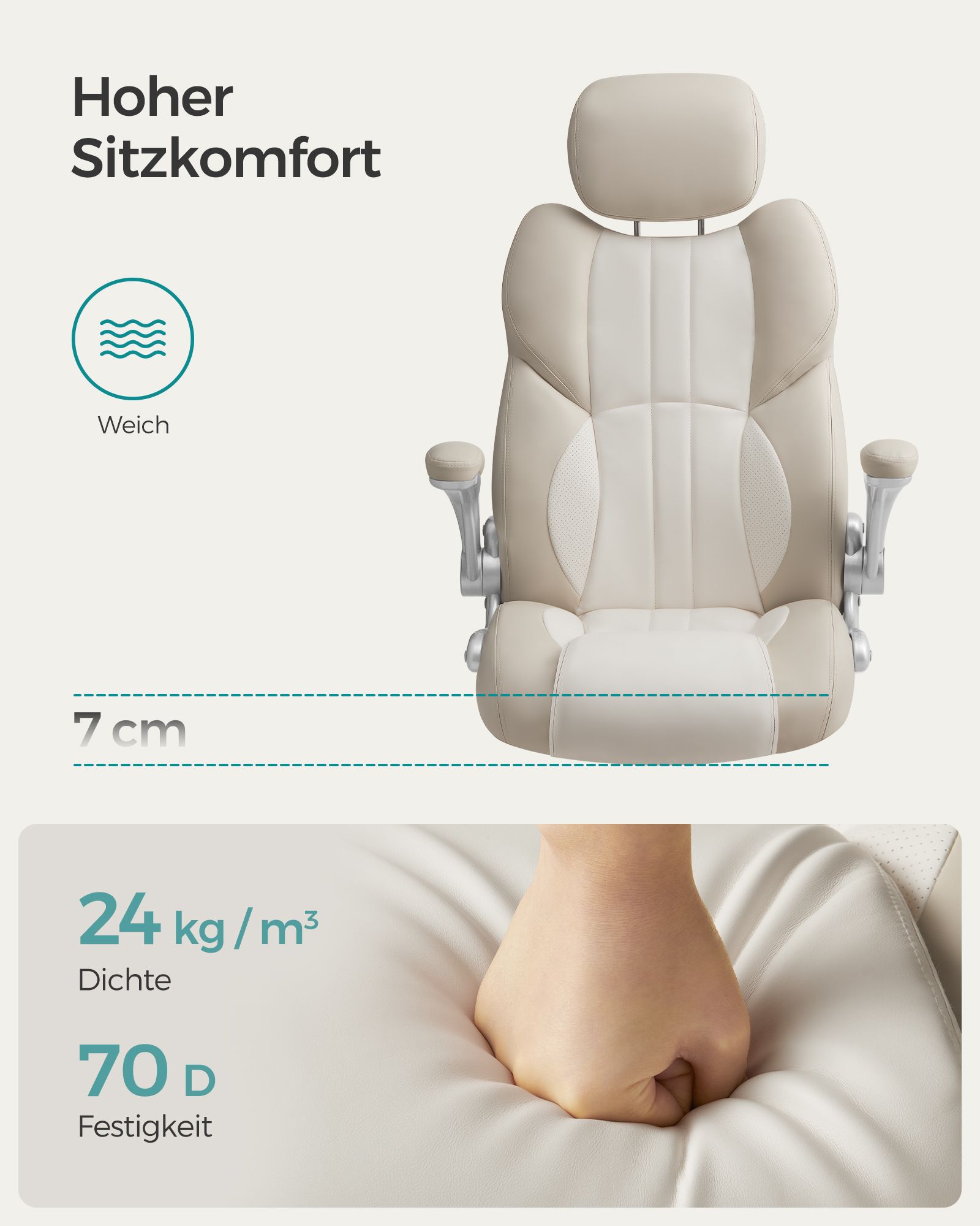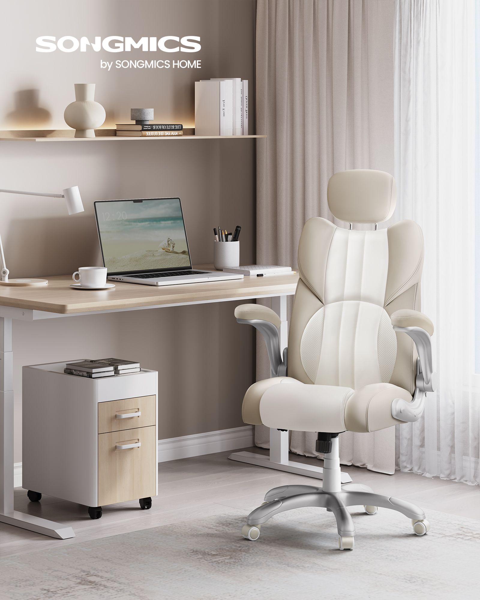 SONGMICS kontorstol, ergonomisk drejestol, med foldbare arml?n, nylonstjernefod, b?reevne 150 kg, sort OBG65BK