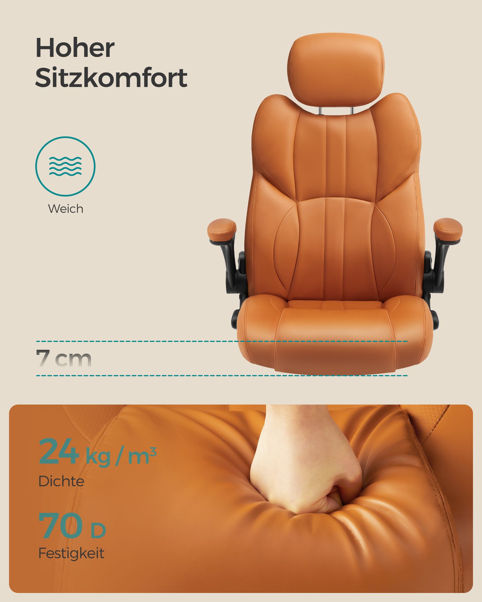 SONGMICS kontorstol, ergonomisk drejestol, med foldbare arml?n, nylonstjernefod, b?reevne 150 kg, sort OBG65BK