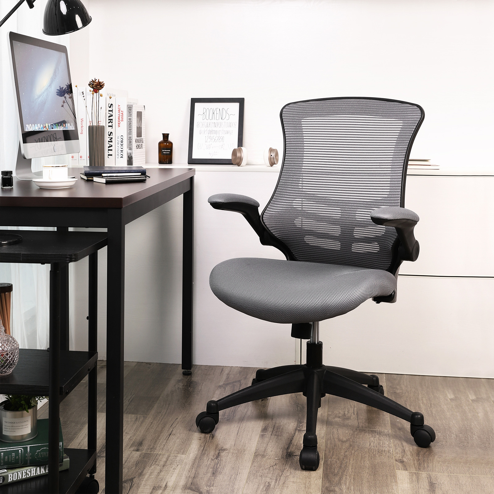Denne enkle kontorstol fra SONGMICS med moderne design er robust, holdbar og har et fremragende pris-ydelses-forhold; ideel til kontorer og m?delokaler. Opklappelige arml?n De skumpolstrede arml?n med netbetr?k f?les meget bl?de. De kan ogs? klappes op for at spare plads. Rygl?n med vippemekanisme Reducerer trykket p? din rygs?jle og lindrer tr?thed. Stabil og holdbar Den h?jkvalitative femstjernede fod og de robuste, slidst?rke nylonhjul sikrer stabilitet og holdbarhed. Maksimal b?reevne: 150 kg. Tekniske detaljer Farve: Gr? Emballagem?l: 66 x 65 x 28,5 cm ; 15,2 kg Montering n?dvendig: Ja R?materiale: Plast Stil: Uden nakkest?tte St?rrelse: S?deh?jde: 42-50 cm Emballagen indeholder: Stol Forsendelsesv?gt: 15,2 kg