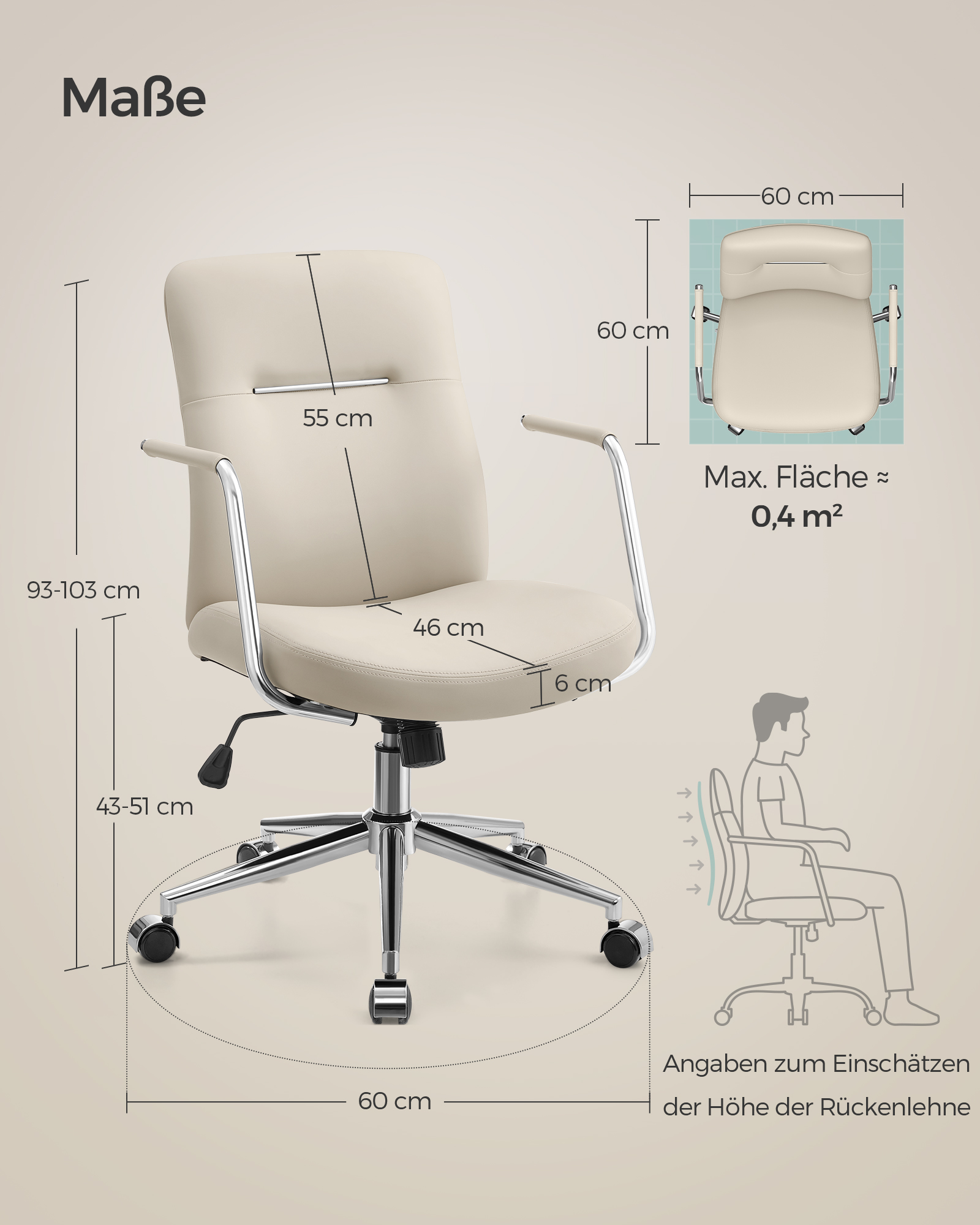 St?rrelse: 60 x 60 x (93-103) cm (D x B x H)