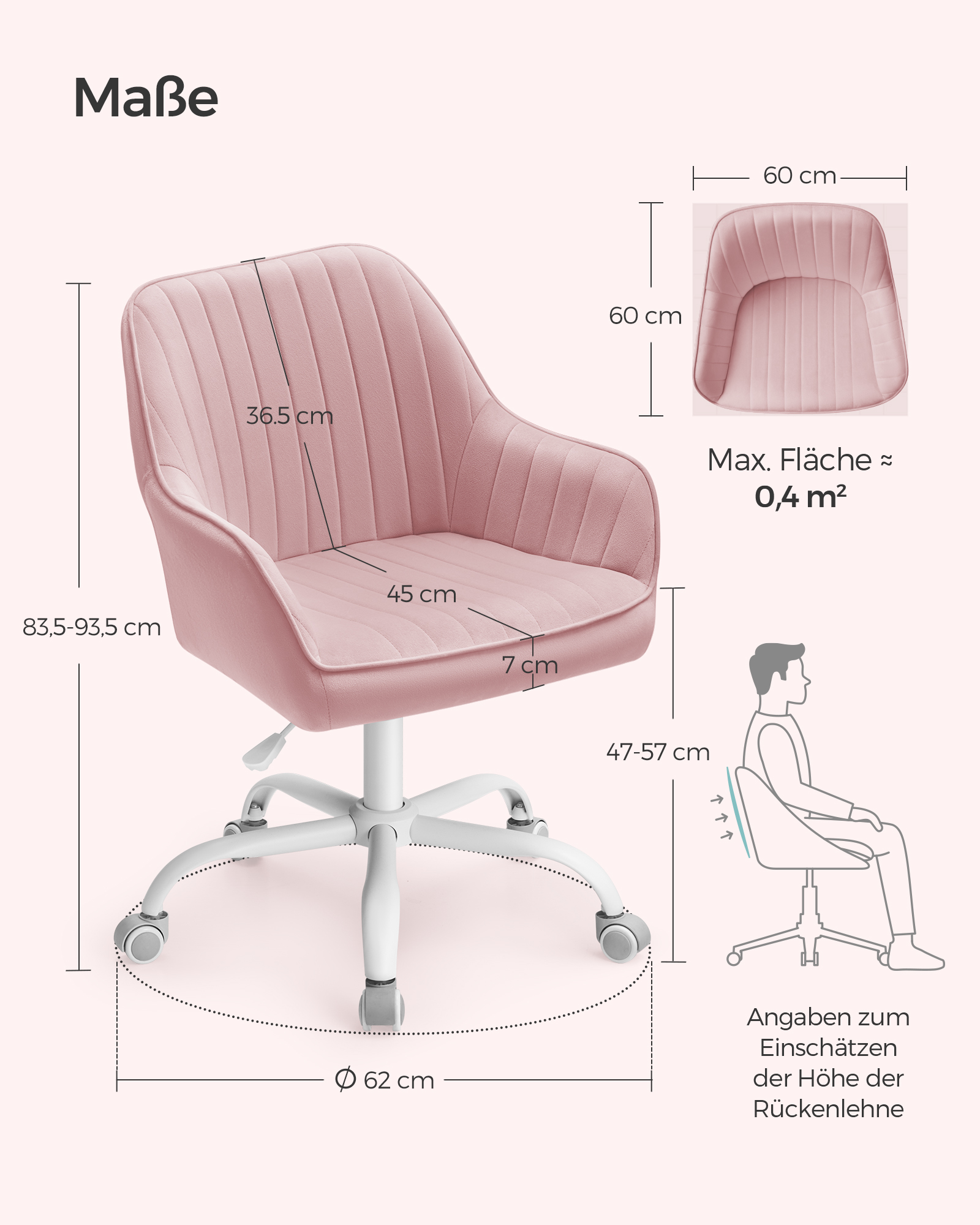 Stolens samlede st?rrelse: 64 x 62 x (80-90) cm (D x B x H)