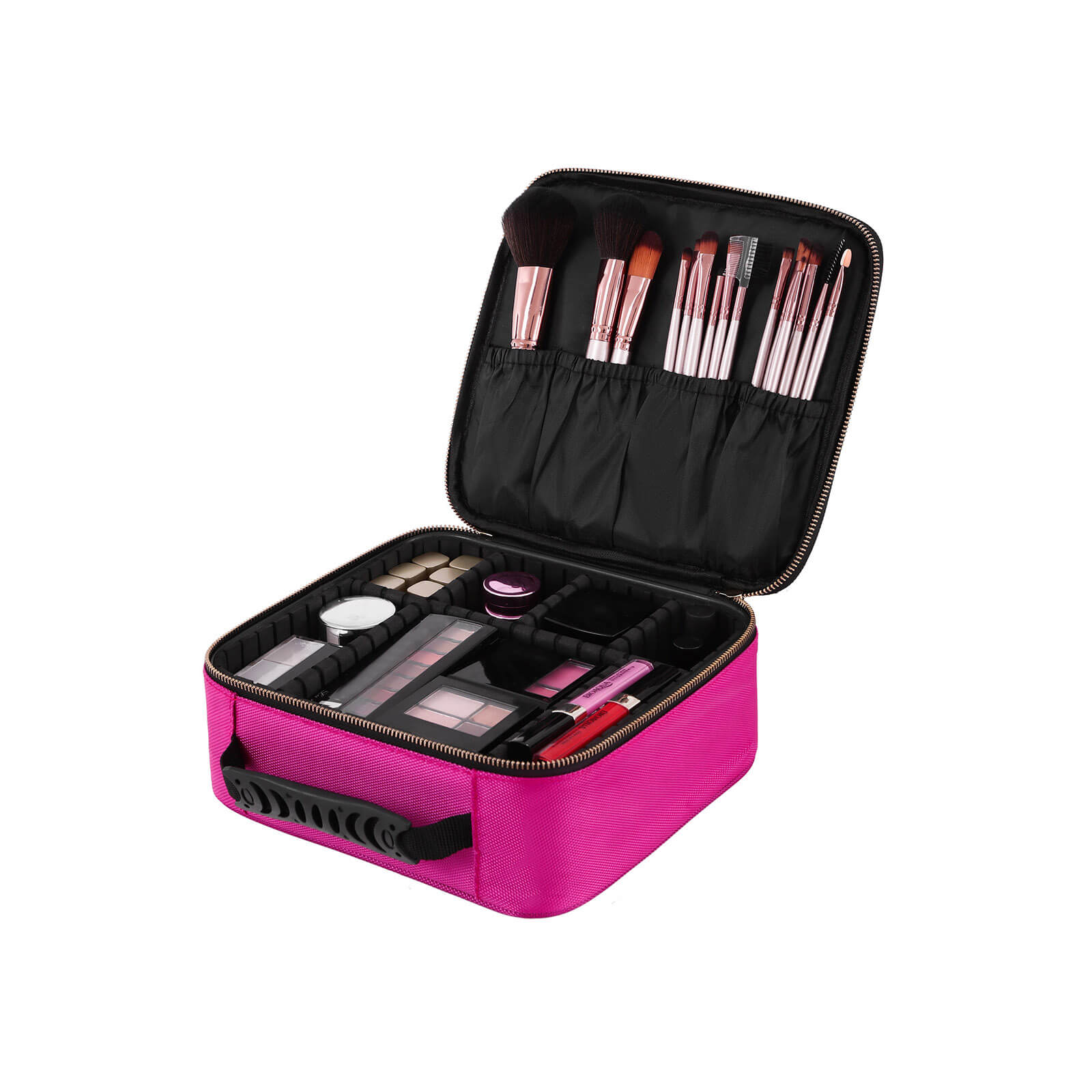 Er dit makeup og dine makeup-redskaber spredt ud over borde, i skuffer eller h?ndtasker? Hvis ja, er det tid til at rydde op. Takket v?re den justerbare inddeling er Songmics kosmetikpung ideel til opbevaring af dit makeup. Alt sorteres med det samme og overskueligt, s? bordpladen altid forbliver p?n og ren. Selv n?r du har travlt, kan du hurtigt finde de produkter, du har brug for. Med denne praktiske og multifunktionelle makeup-organizer kan du nyde en afslappet ferie. Alt dit makeup og dine makeup-redskaber opbevares sikkert i denne attraktive og h?jkvalitets makeup-taske, der er velegnet til rejser og et must for professionelle makeup-artister. Lille st?rrelse, men med masser af opbevaringsplads, ikke kun ideel til kvinder, men ogs? til m?nd, der ?nsker at opbevare hudplejeprodukter eller en barbermaskine p? rejser eller til sport. En perfekt gave til jul eller f?dselsdag til dine k?re eller familie. Produktdetaljer: – Farve: sort / pink – Materiale: Oxford-stof, MDF-plade, EVA, ABS-plast – M?l: 25,5 x 9,8 x 23,5 cm (B x H x D) – V?gt: 0,8 kg Leveringsomfang: – 1 x makeup-etui