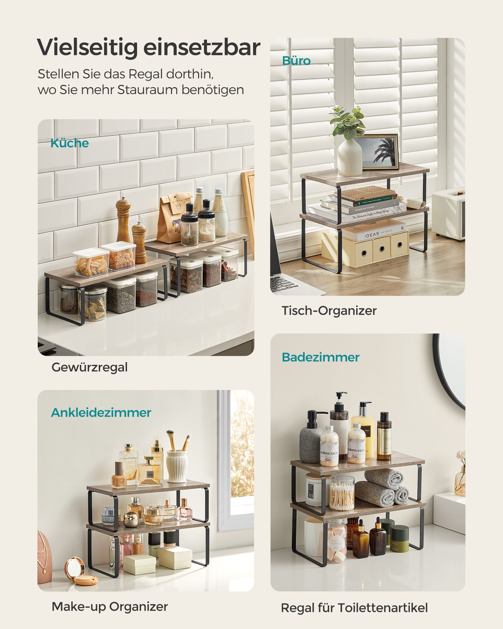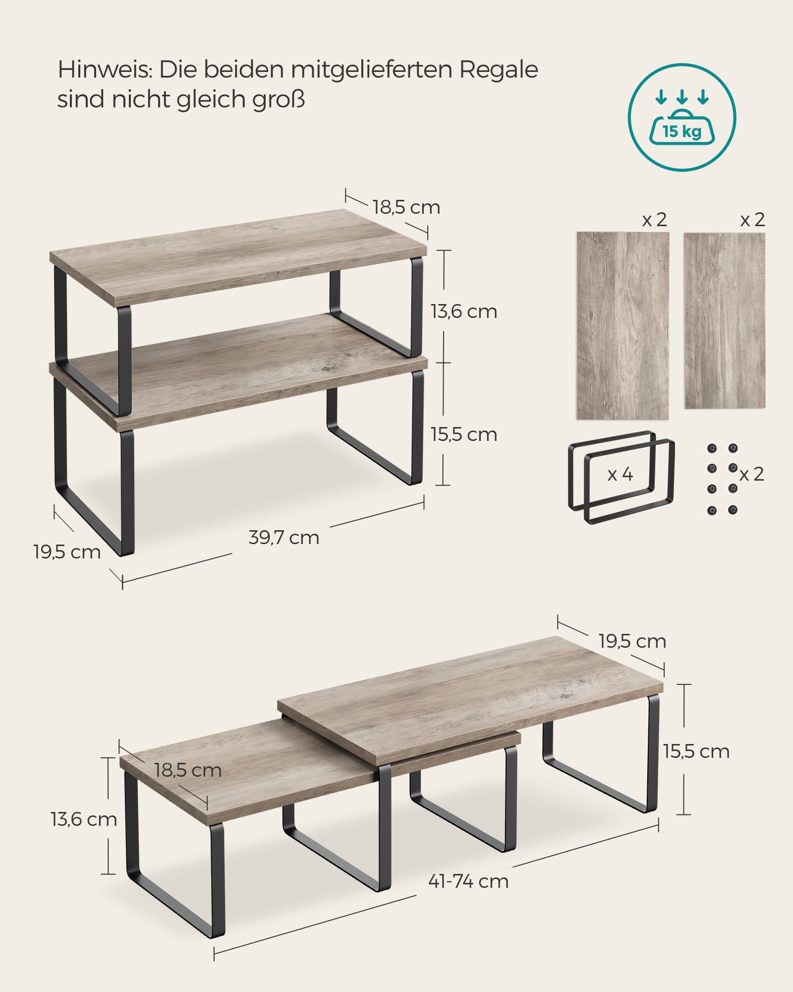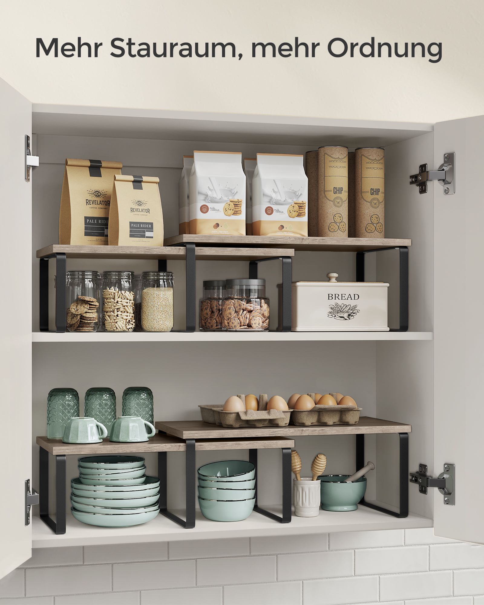 SONGMICS krydderihylder, s?t med 4, k?kkenhylder, udvidelig k?kkenorganizer, stabelbar, af metal og sp?nplader, hyldeindsats, til k?kkenskab, k?kken, vintagebrun-sort KCS021X01