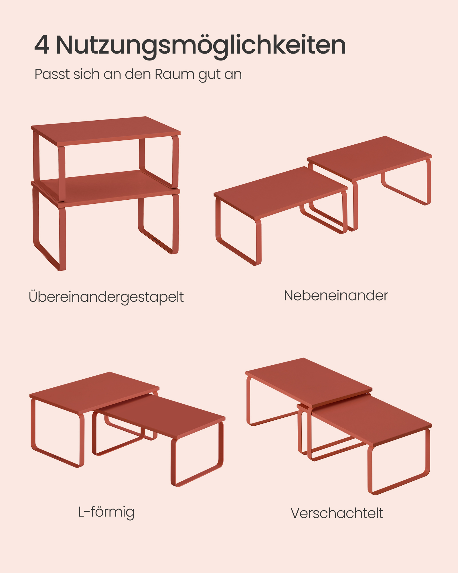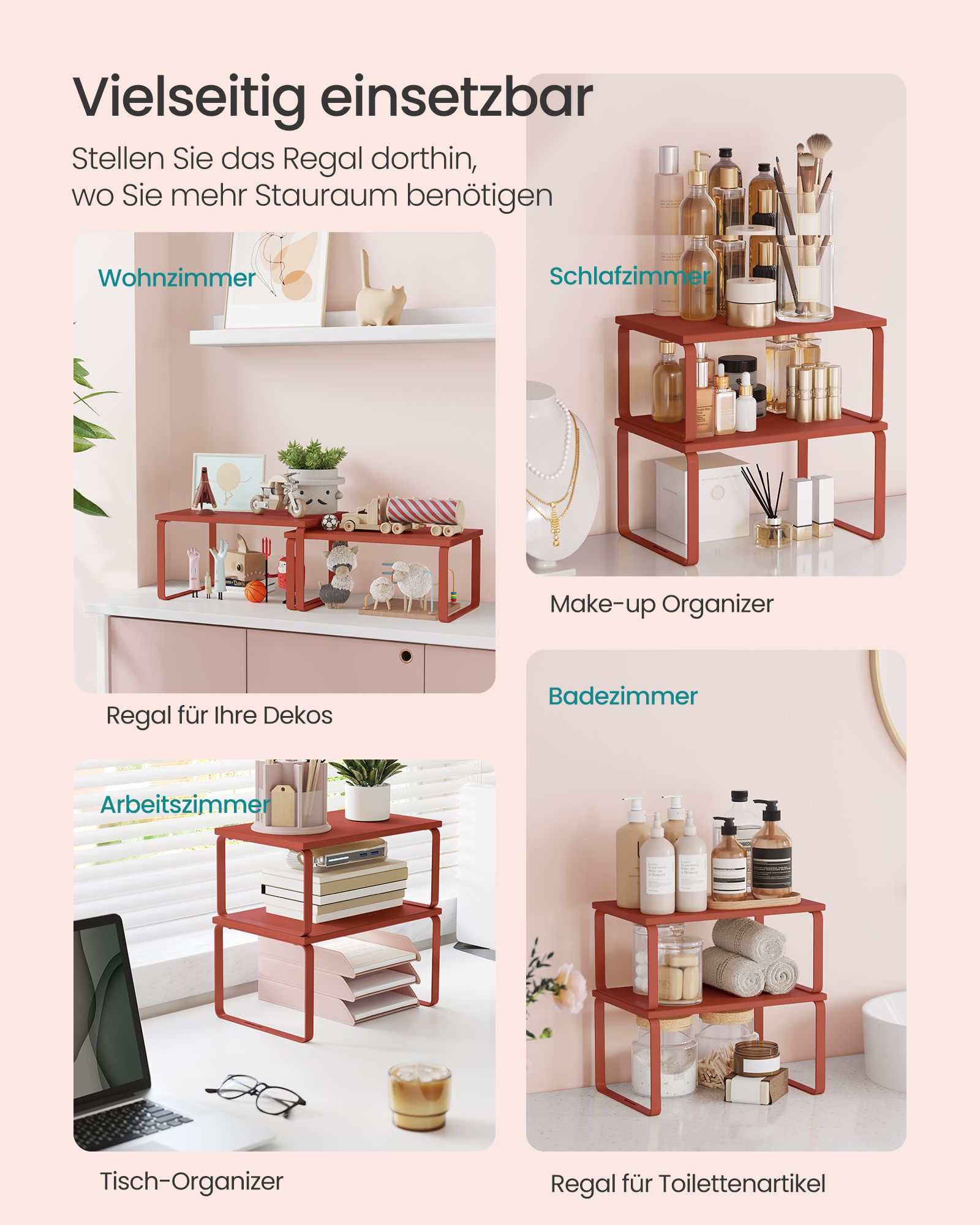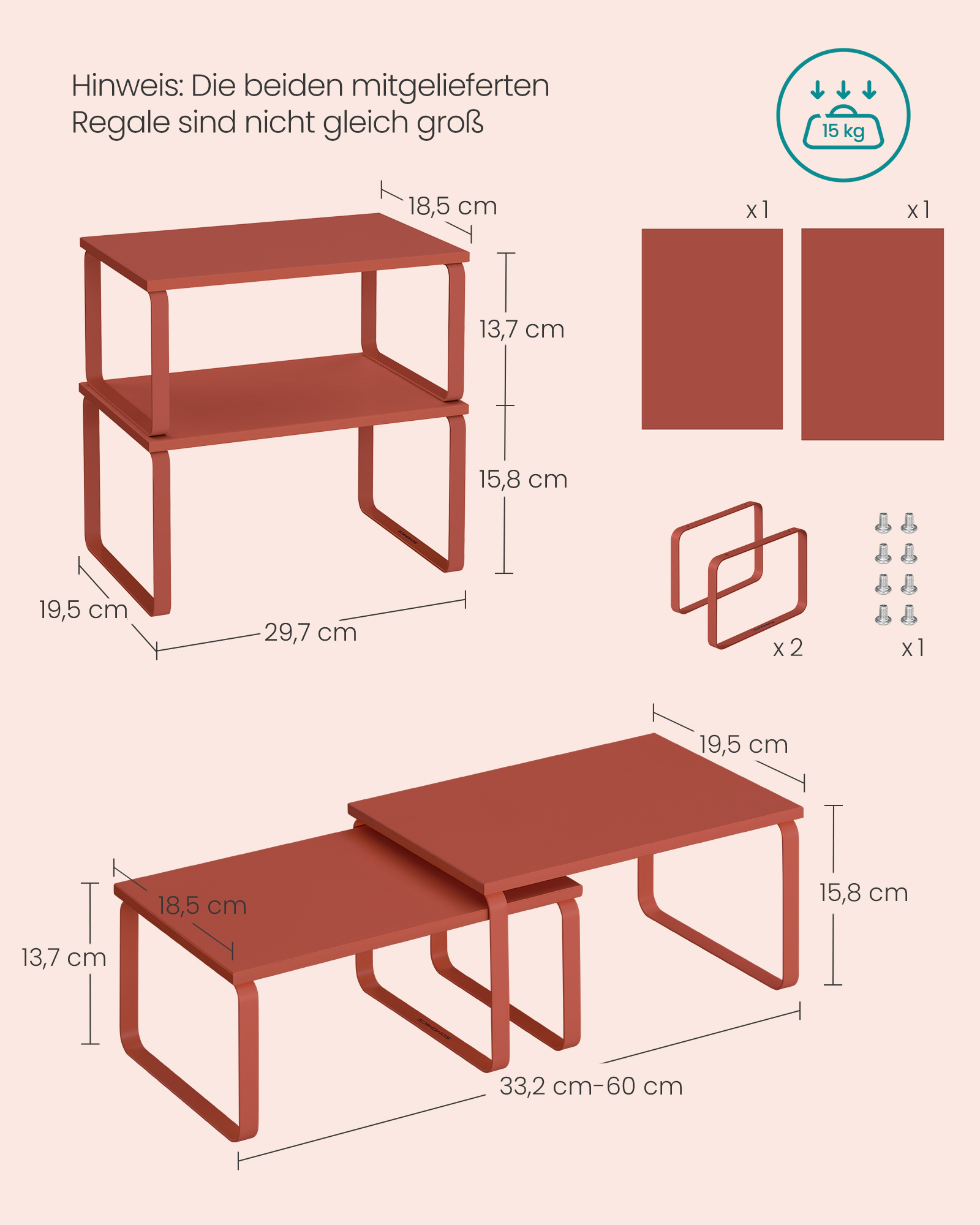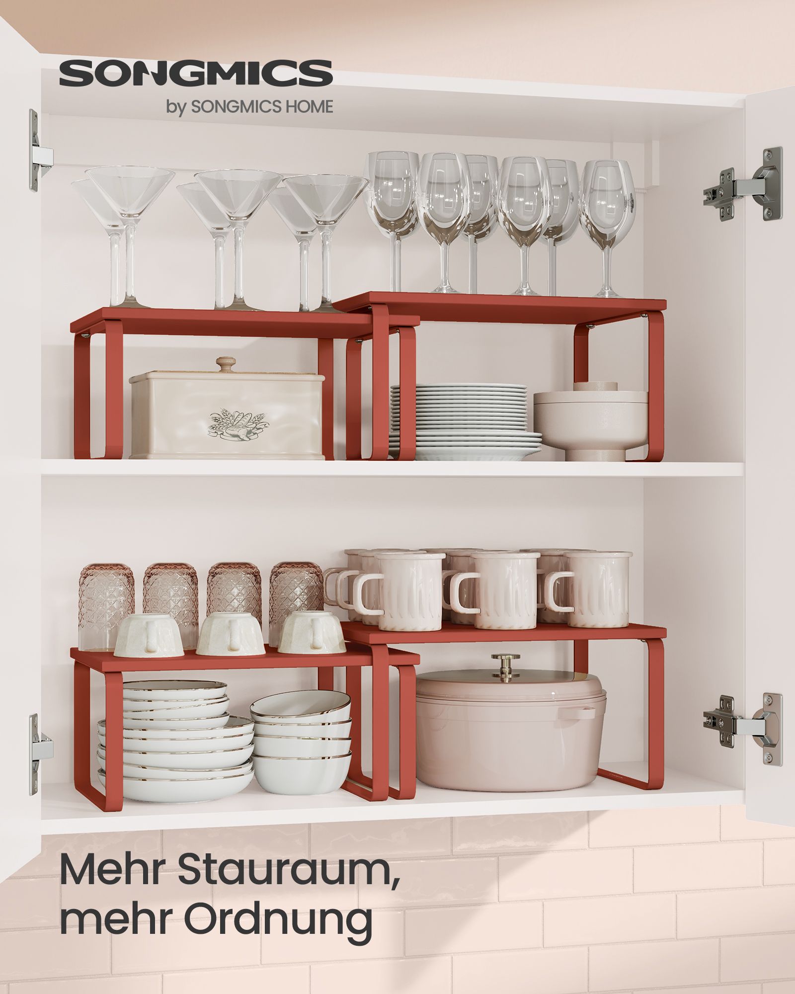SONGMICS krydderihylde, 2-delt s?t k?kkenorganizer, k?kkenhylde, skabsorganizer til k?kken, udvidelig, lille hylde, stabelbar, metal og tr?materiale, mandarinr?d KCS002Y02