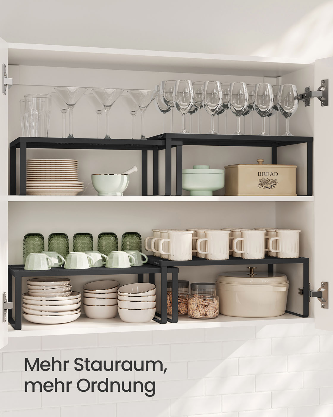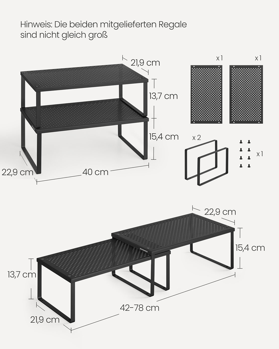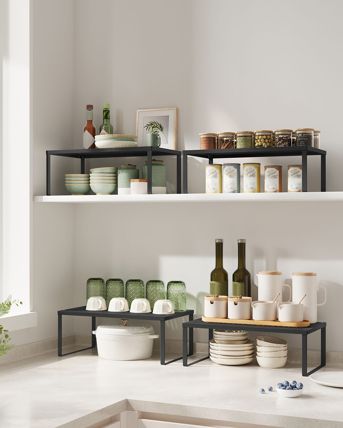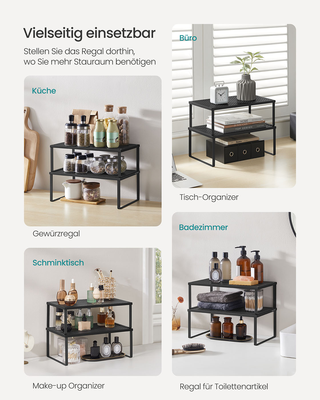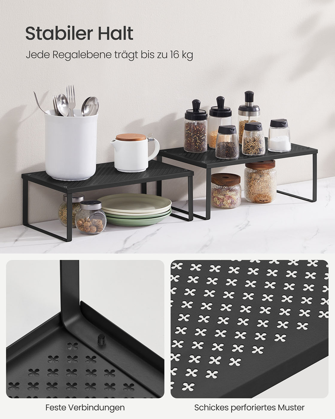 SONGMICS krydderihylde, 2-pak, k?kkenhylde, k?kkenorganizer, k?kken, krydderiholder, udvidelig, stabelbar, lille hylde, metal, bl?ksort KCS401B01
