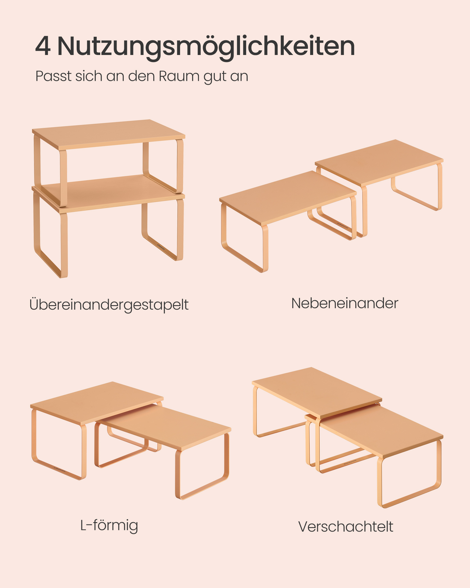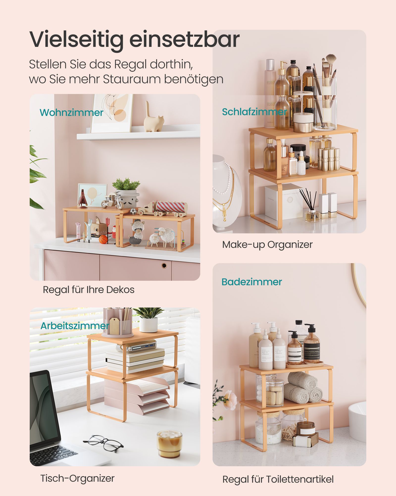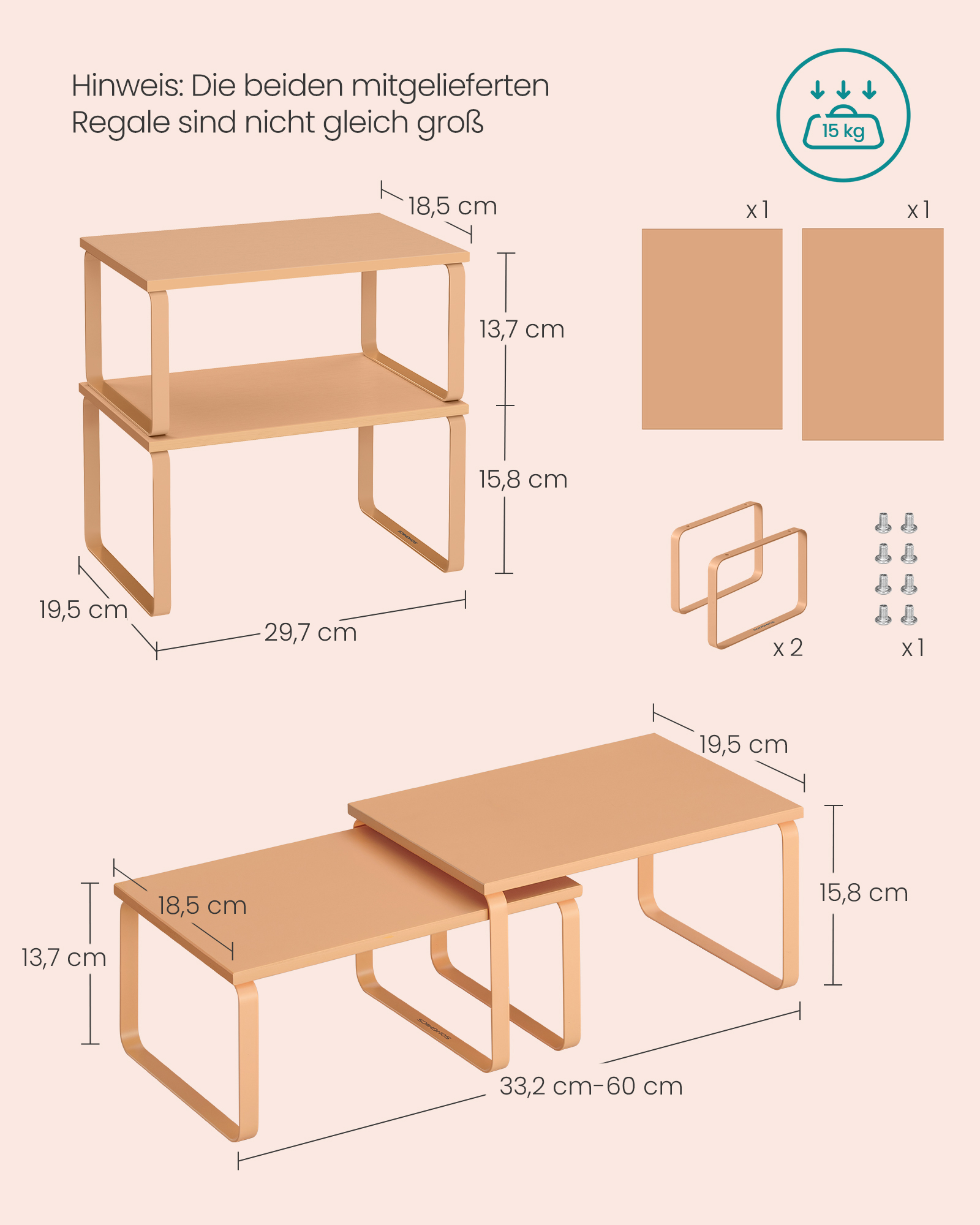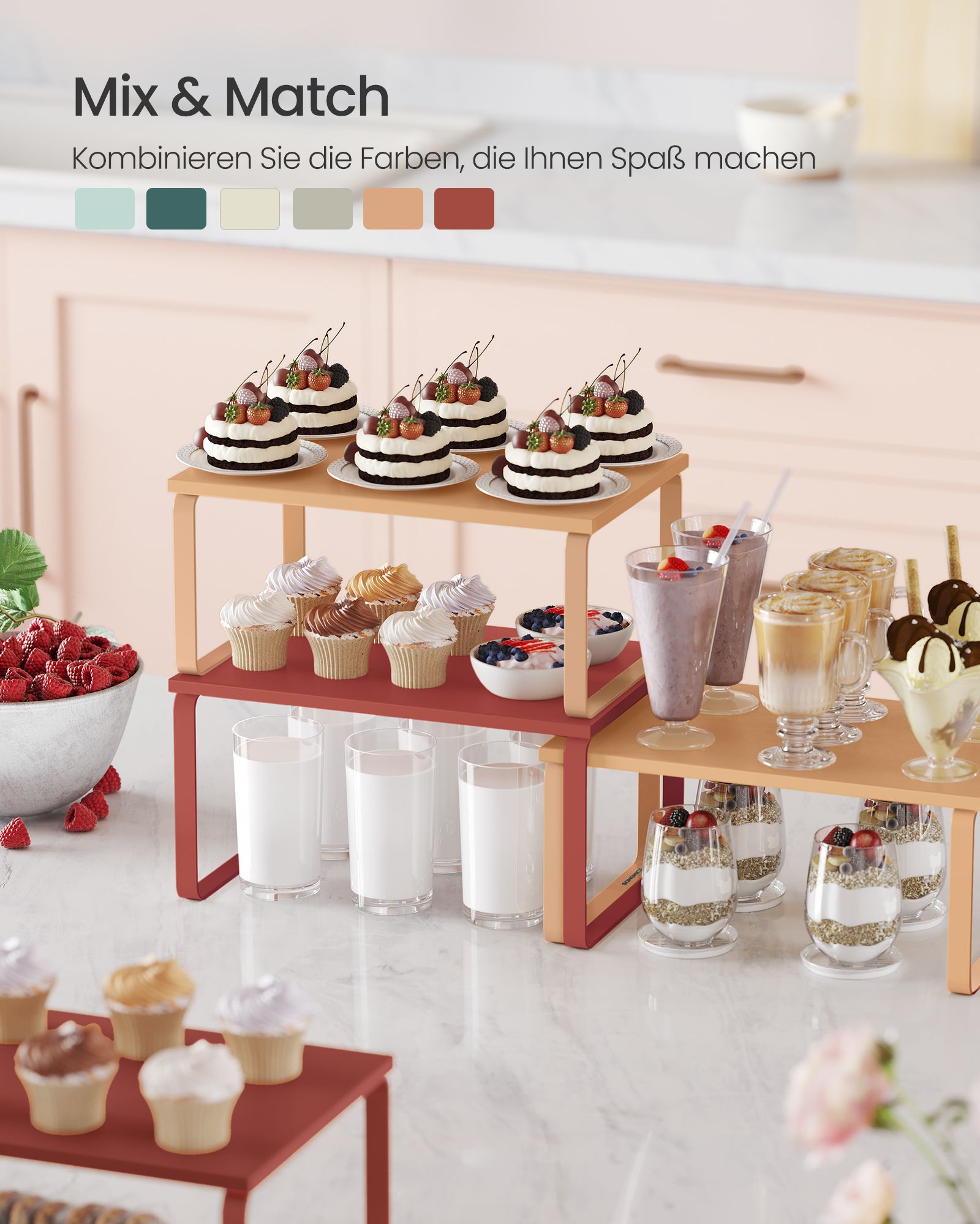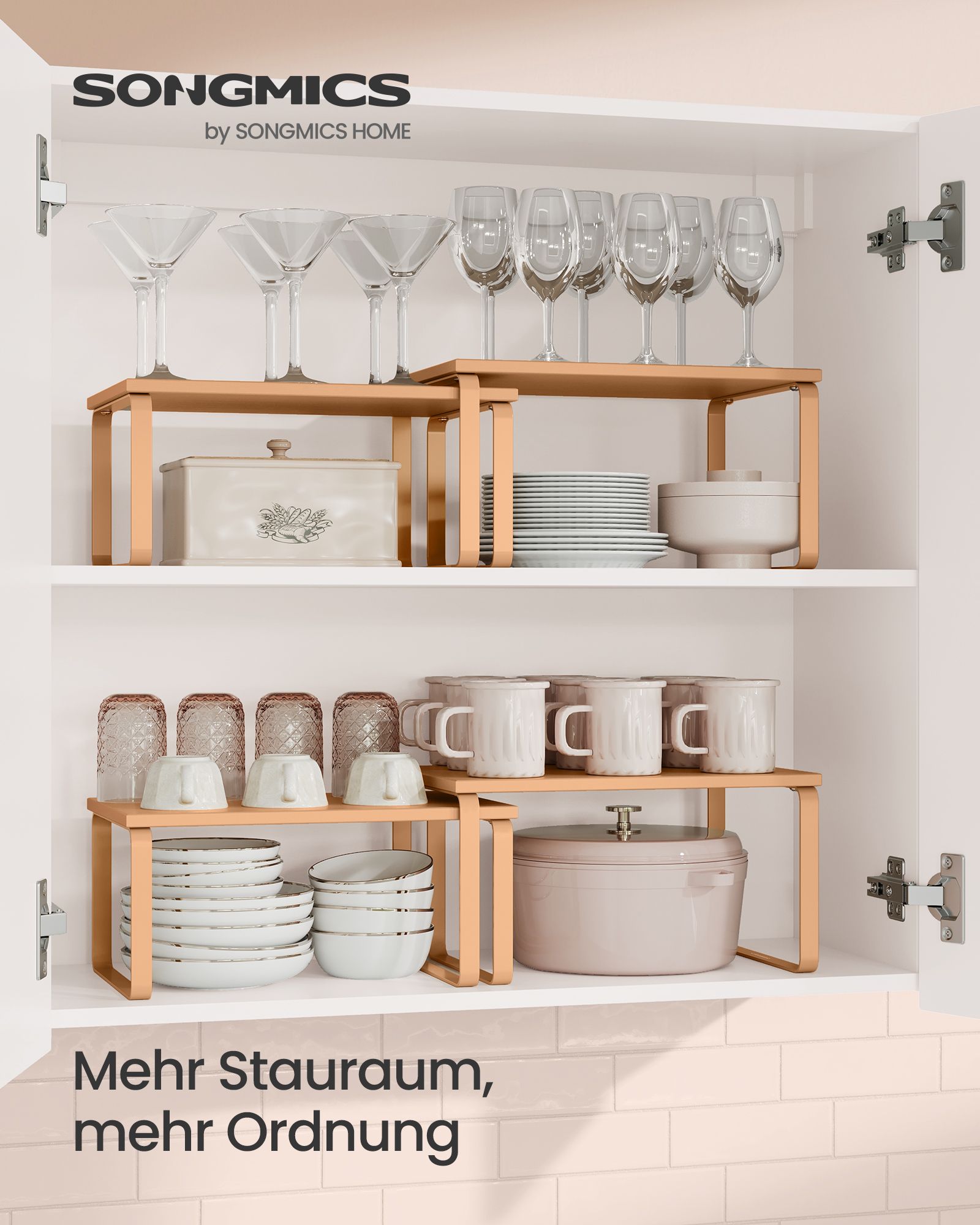 SONGMICS krydderihylde, 2-delt s?t k?kkenorganizer, k?kkenhylde, skabsorganizer til k?kken, udvidelig, lille hylde, stabelbar, metal og tr?materiale, mandarinr?d KCS002Y02