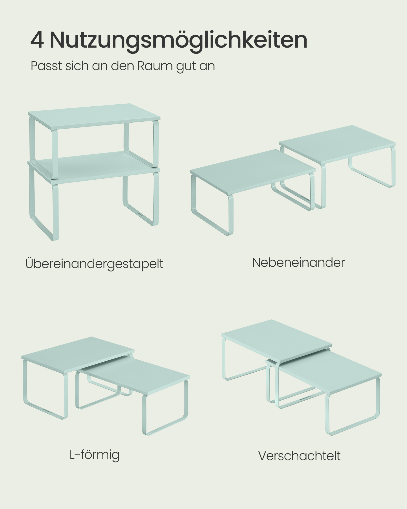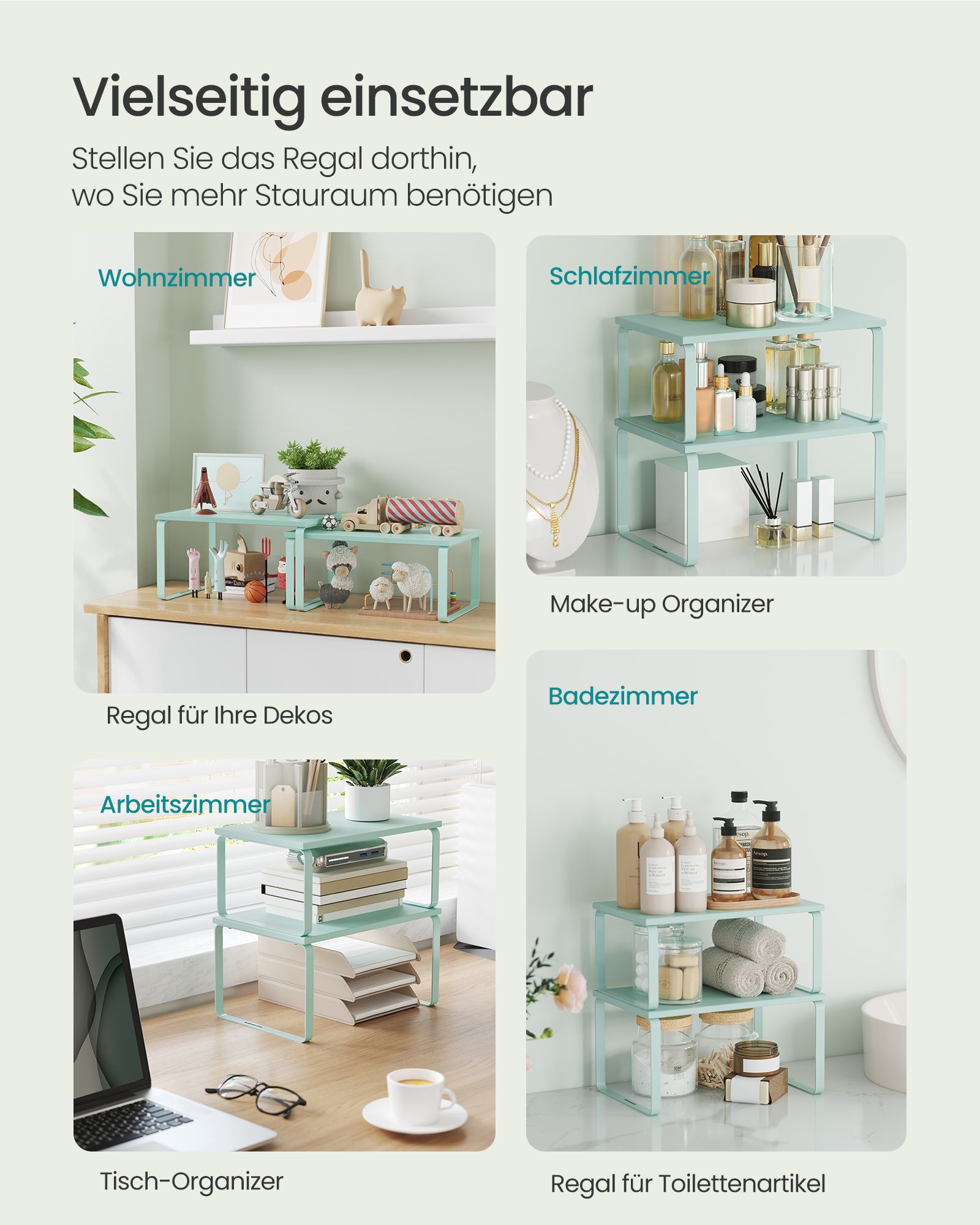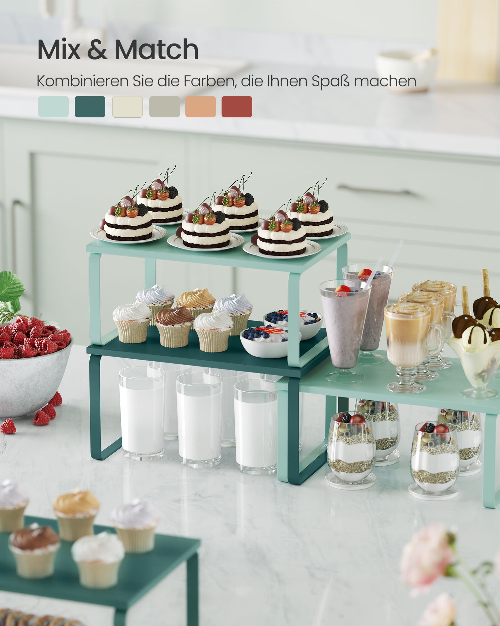 SONGMICS krydderihylde, 2-delt s?t k?kkenorganizer, k?kkenhylde, skabsorganizer til k?kken, udvidelig, lille hylde, stabelbar, metal og tr?materiale, mandarinr?d KCS002Y02