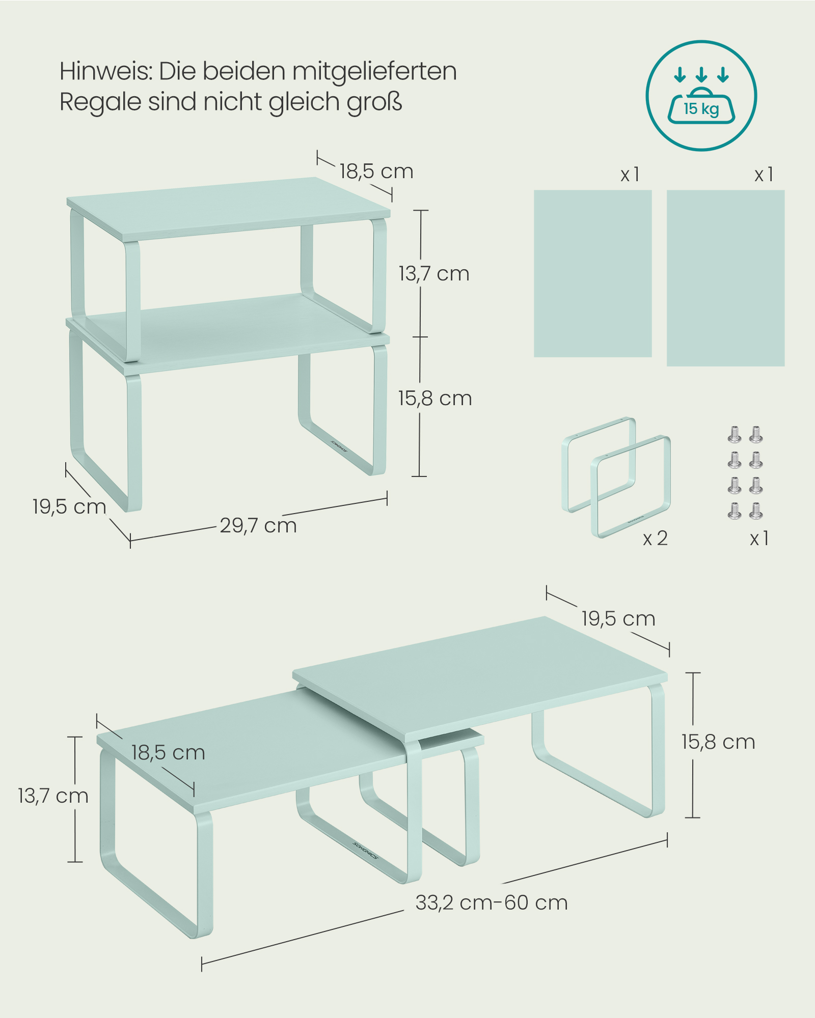 St?rrelse p? den lille hylde: 18,5 x 29,7 x 13,7 cm (D x B x H)