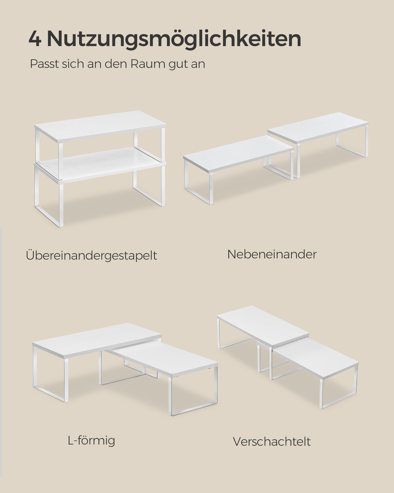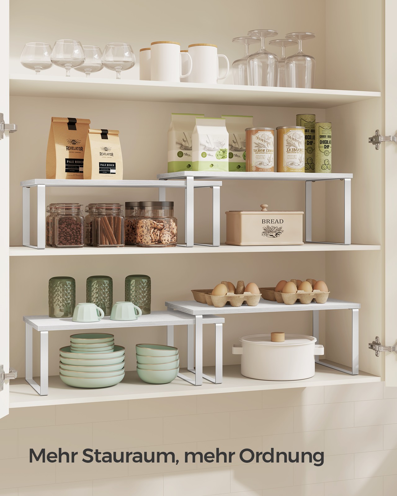 SONGMICS krydderihylde, 2-pak, k?kkenhylde, k?kkenorganizer, udvidelig, krydderiholder, stabelbar, af metal og bambus, hvid-naturfarvet KCS02NW